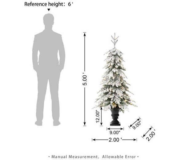Glitzhome 5FT Pre-Lit Flocked Artificial Christmas Porch Tree