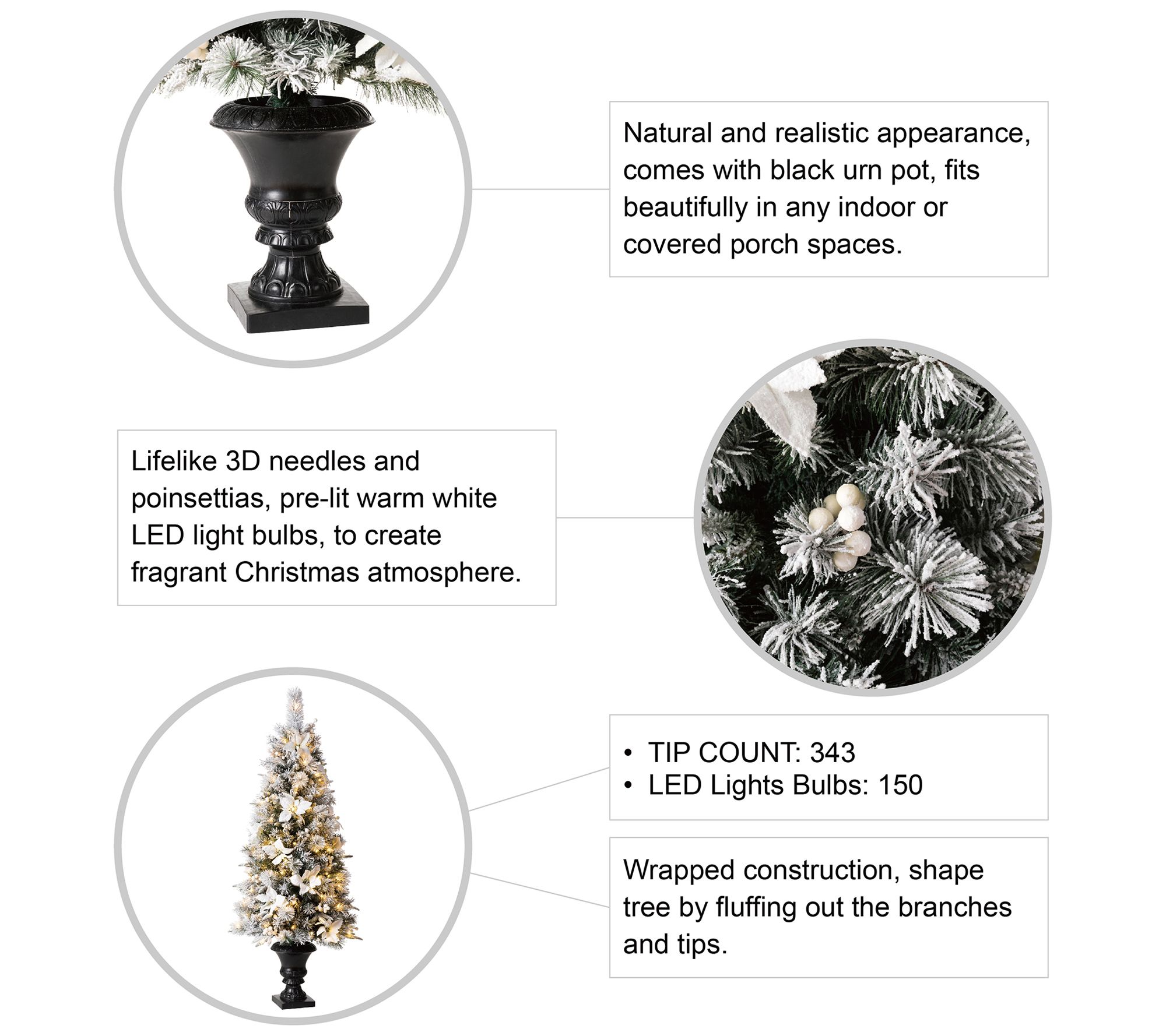 Tip count: 343, Poinsettia: 18, Berries: 18 Cluster, 12pcs/Cluster
