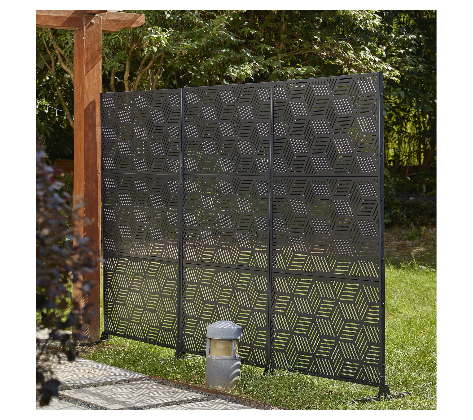 Transform your space into a private sanctuary with this galvanized steel screen panel. Its modern geometric pattern and matte finish add a contemporary and artistic touch to any indoor or outdoor setting, making it a stylish solution for adding privacy or concealing less appealing sights. From Glitzhome.