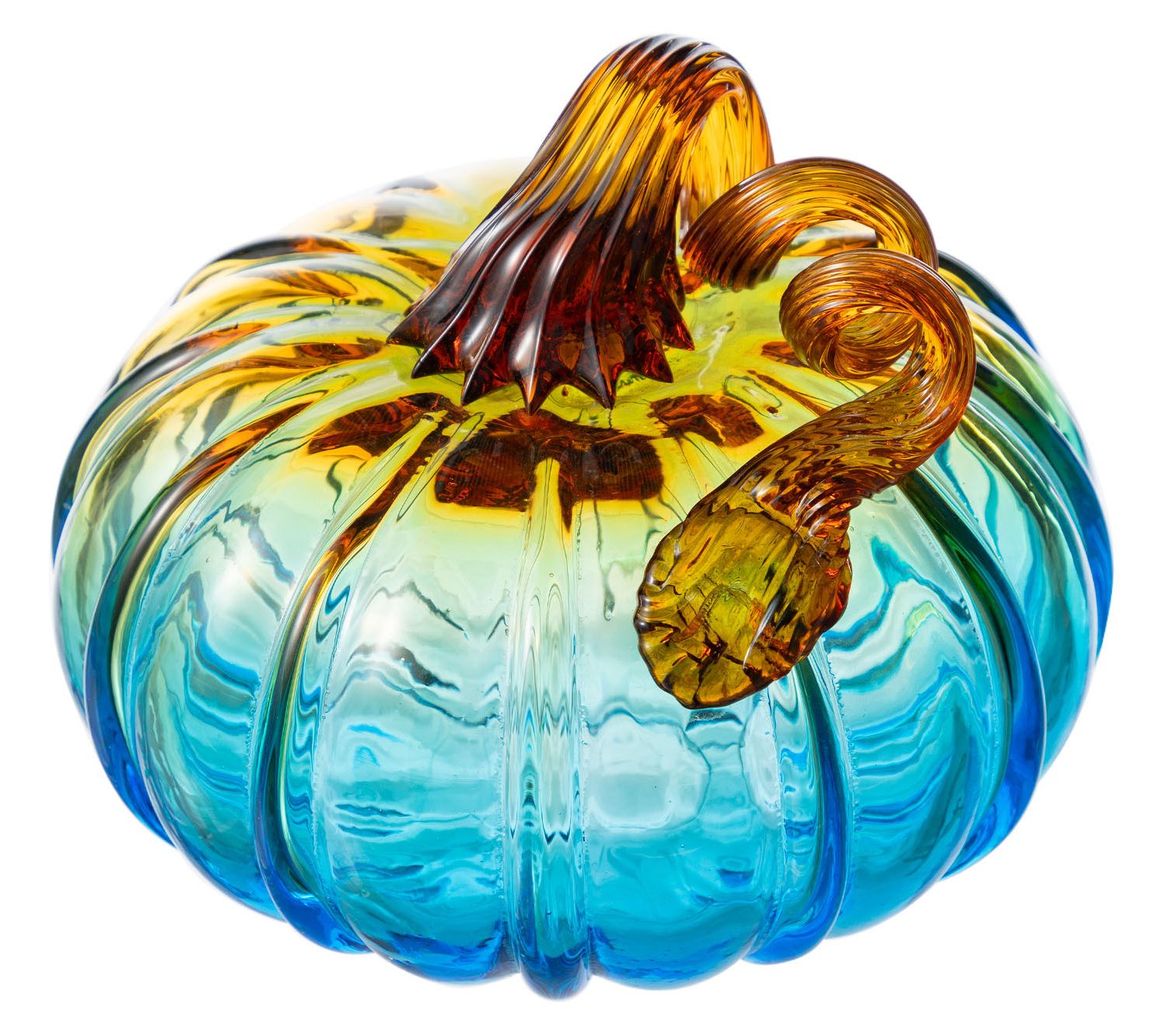 Create an inviting autumn atmosphere in your home by placing this gradient glass pumpkin on a coffee table or mantel. Its turquoise tones shift beautifully from deep teal to a lighter shade, catching the light and enhancing your seasonal gathering or quiet evening. Try grouping it with candles or other harvest decor for a festive display. From Glitzhome.