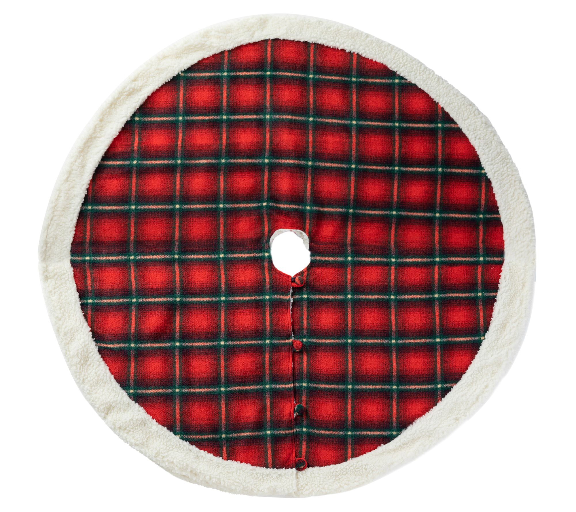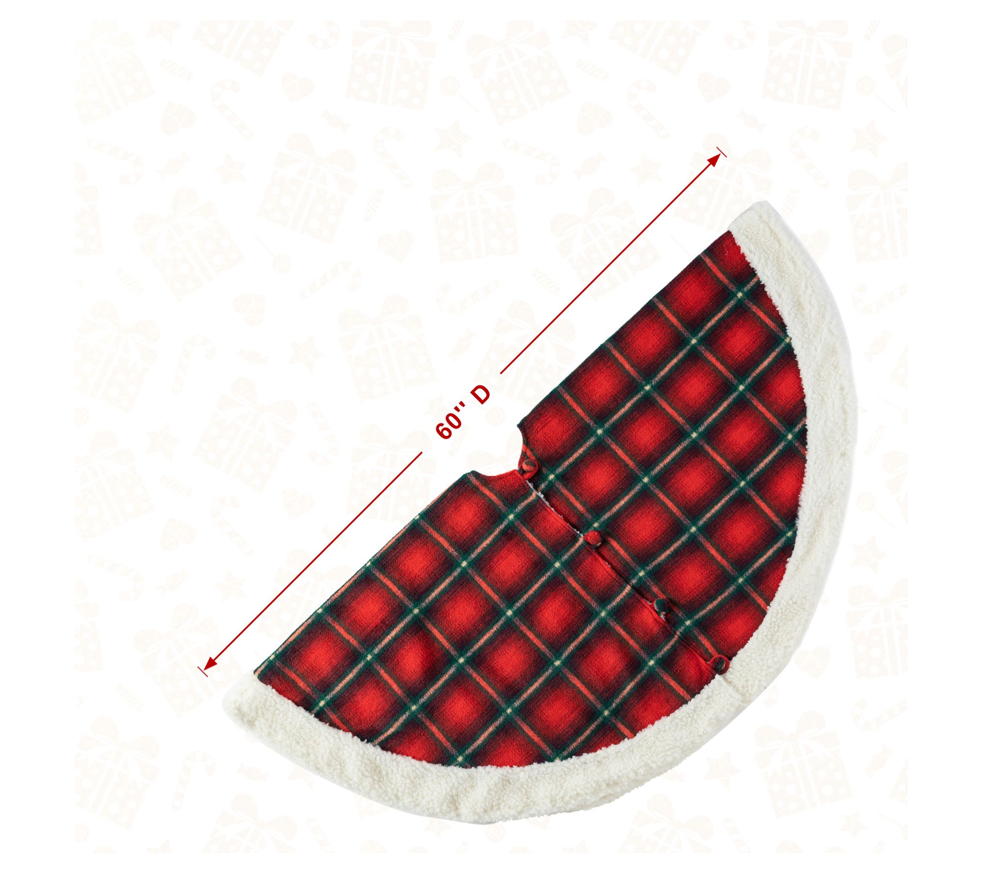 Soften up your seasonal display with this reversible Christmas tree skirt. Designed to catch tree debris and create a cozy base for your presents, the red-and-black pattern features soft sherpa material on the front and warm flannel on the flip side. From Glitzhome.