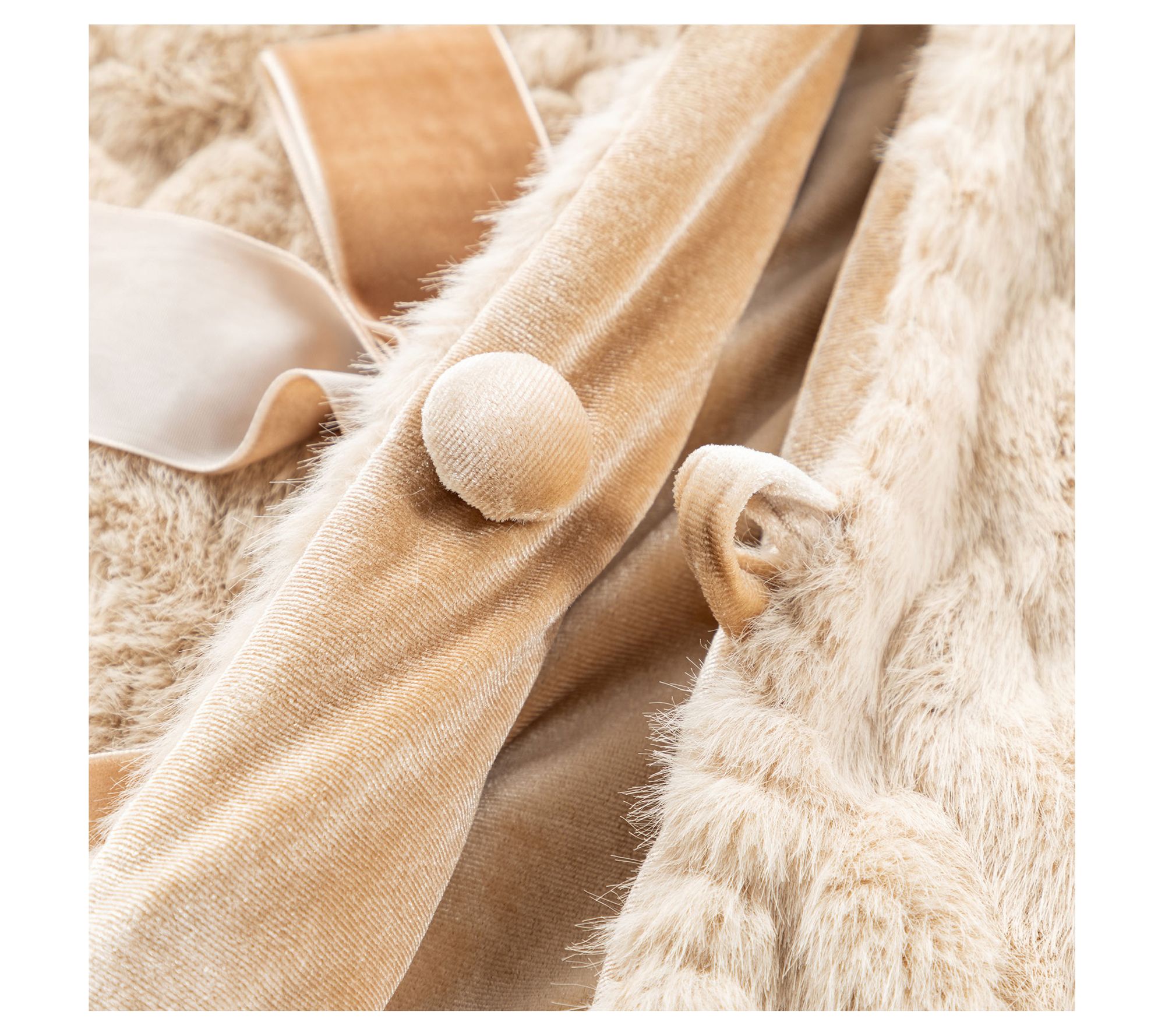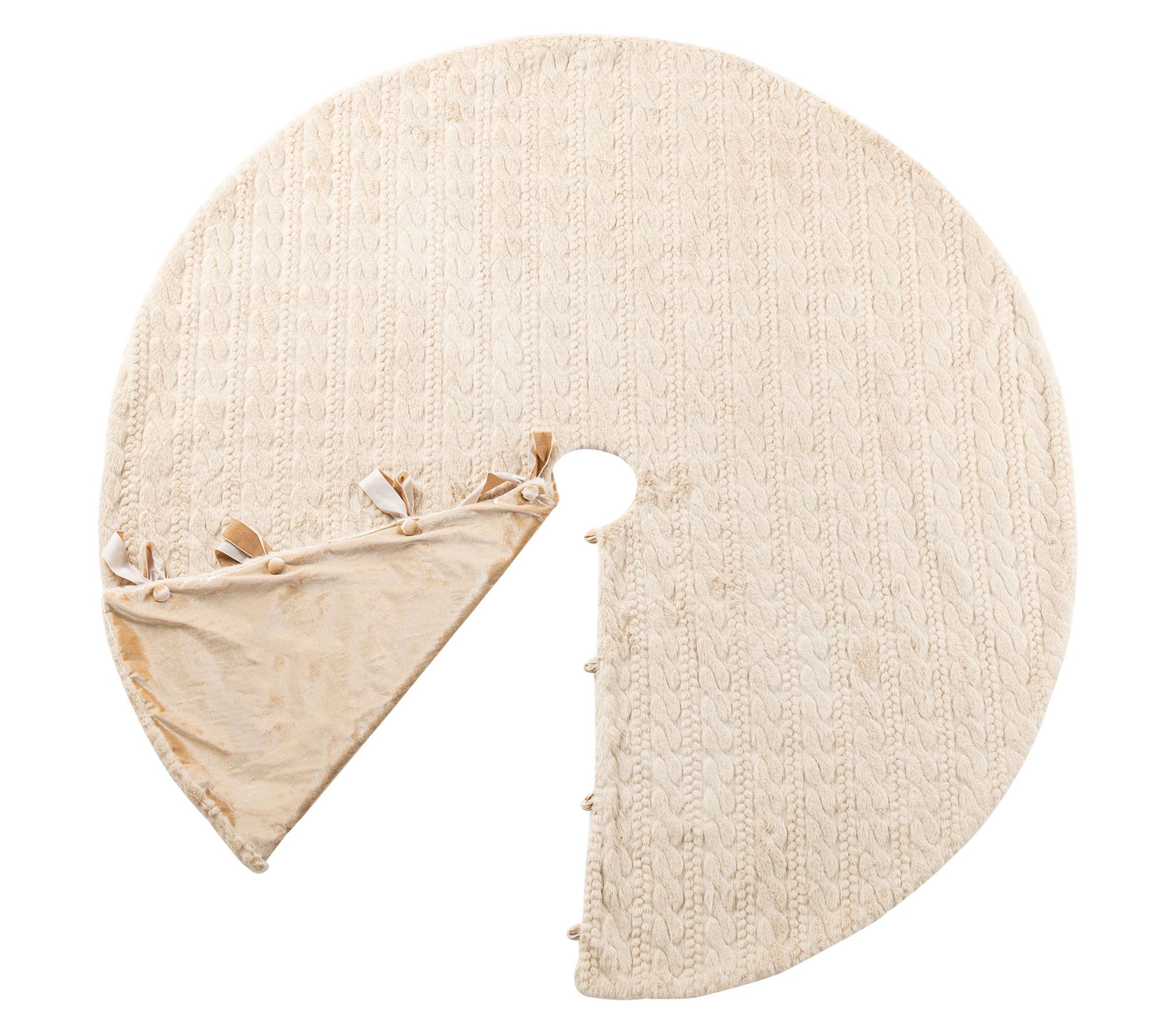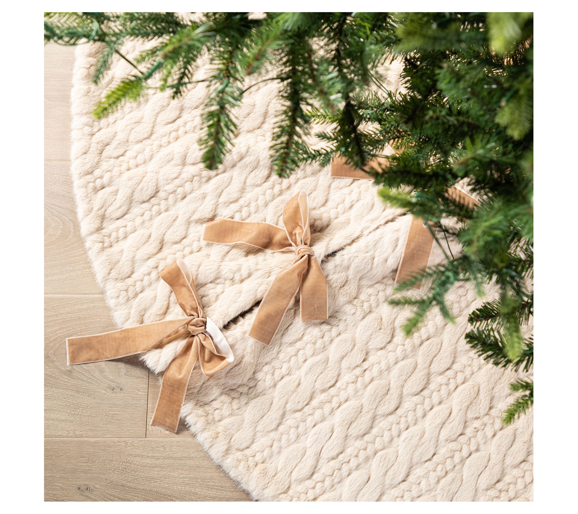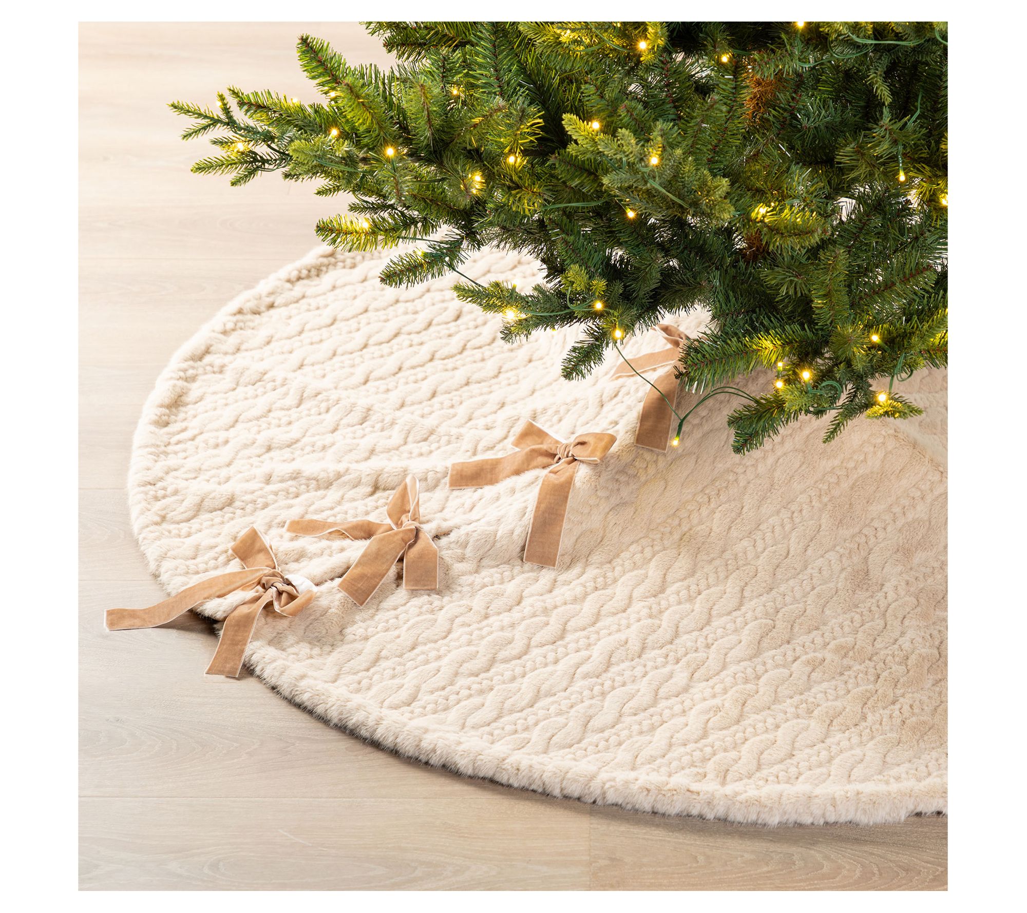 Dress up your holiday centerpiece with this deluxe reversible faux fur Christmas tree skirt, featuring a plush twisted faux marten fur on one side and soft Korean fleece on the other -- both in a cozy milk coffee color. Elegant ribbons and lace-up details lend a graceful accent, making your gifts and decorations stand out all season long. From Glitzhome.