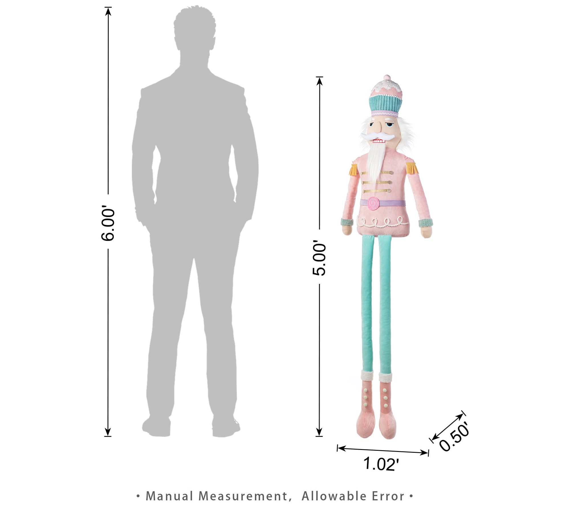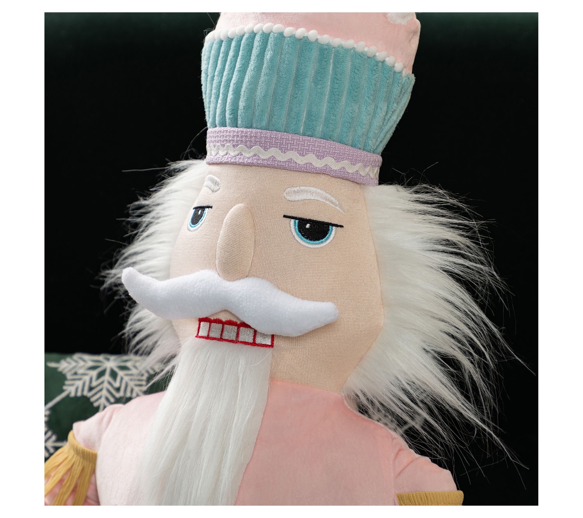 Create a festive focal point in your home with this impressive Christmas fabric nutcracker. Standing tall in its detailed uniform, complete with a pink hat, golden epaulettes, and playful long dangle legs, it's sure to become the star of your holiday display. This whimsical soldier brings a touch of nostalgia and charm to any space, inviting guests to relive childhood memories or embark on new traditions. From Glitzhome.