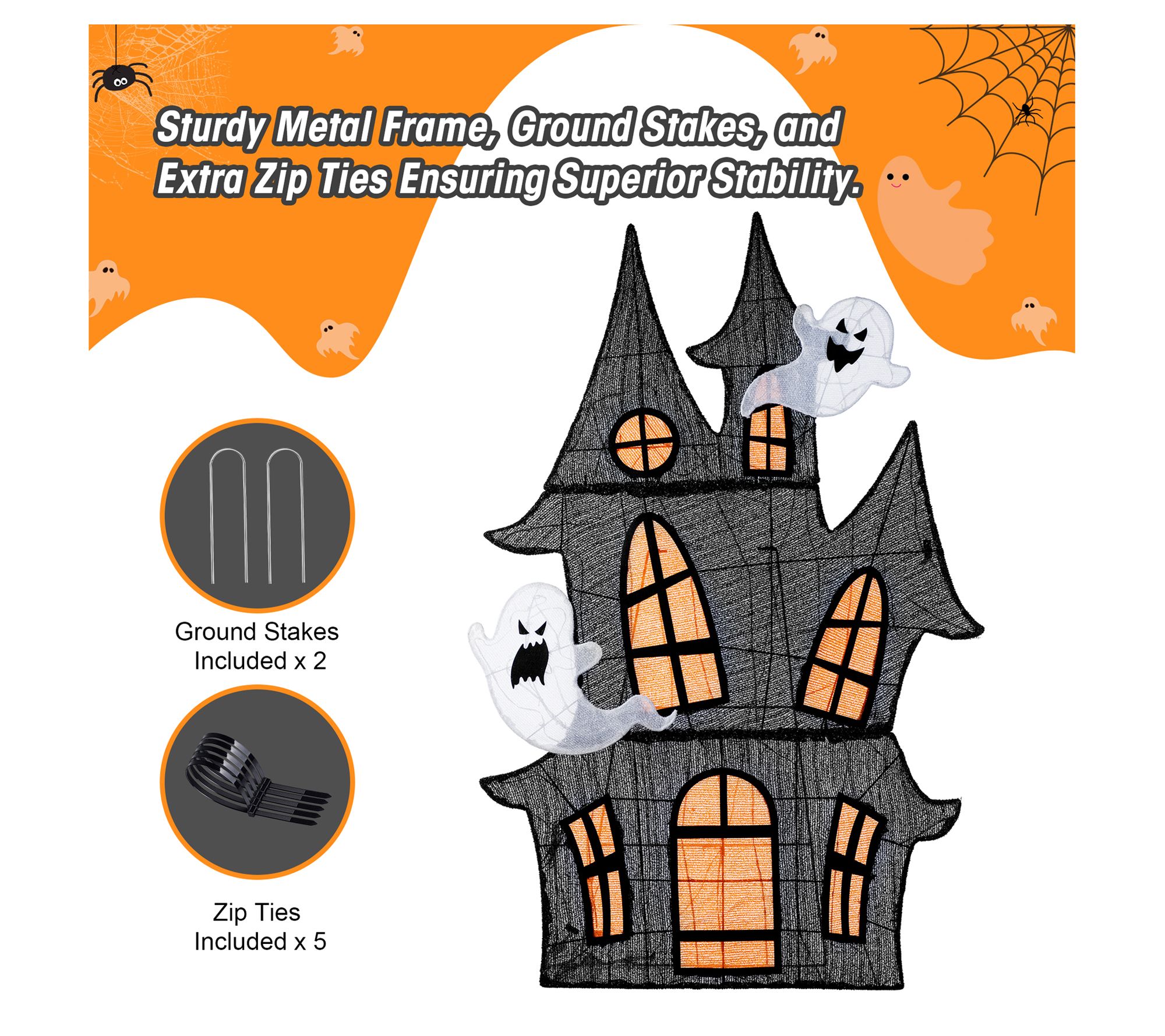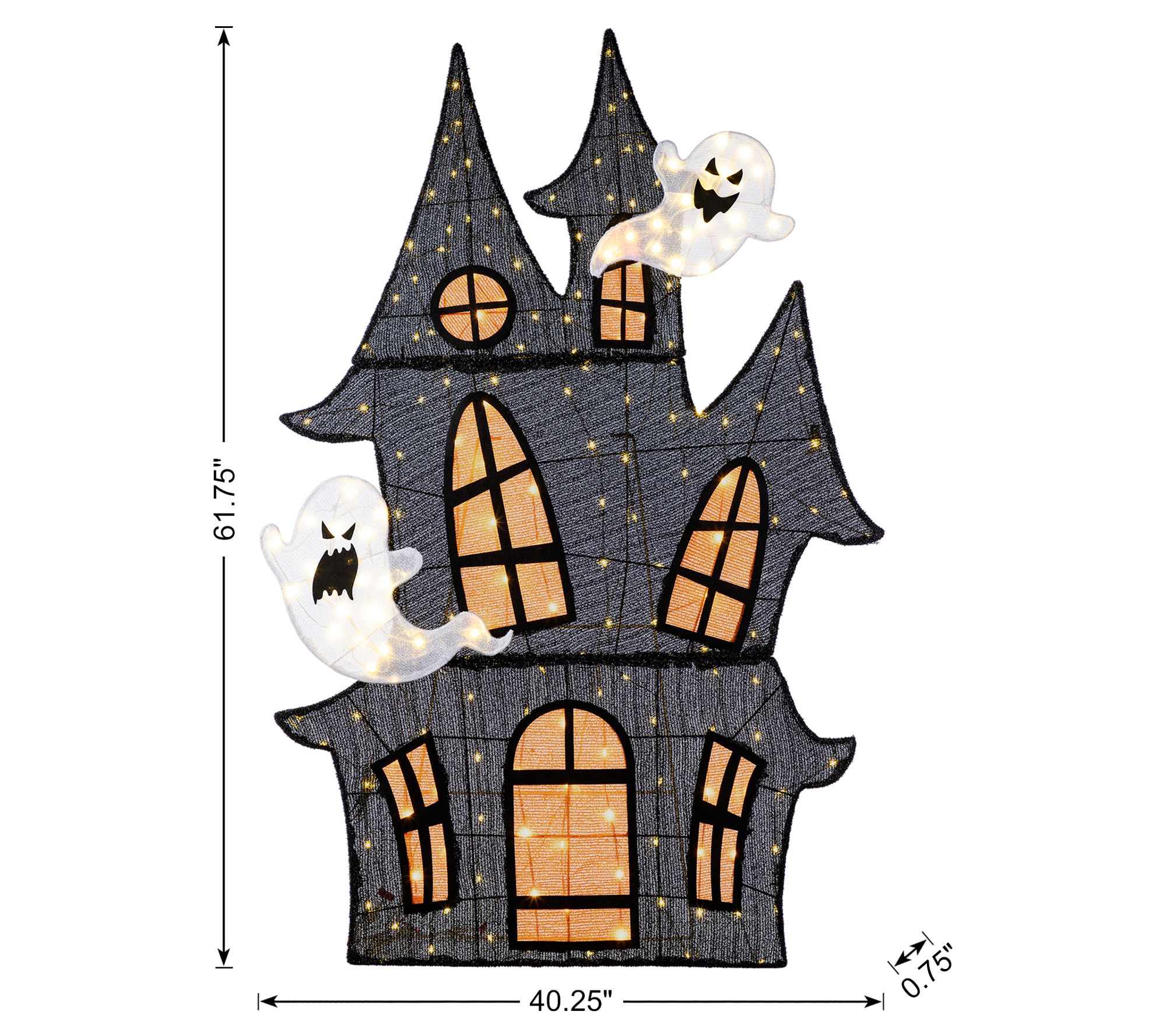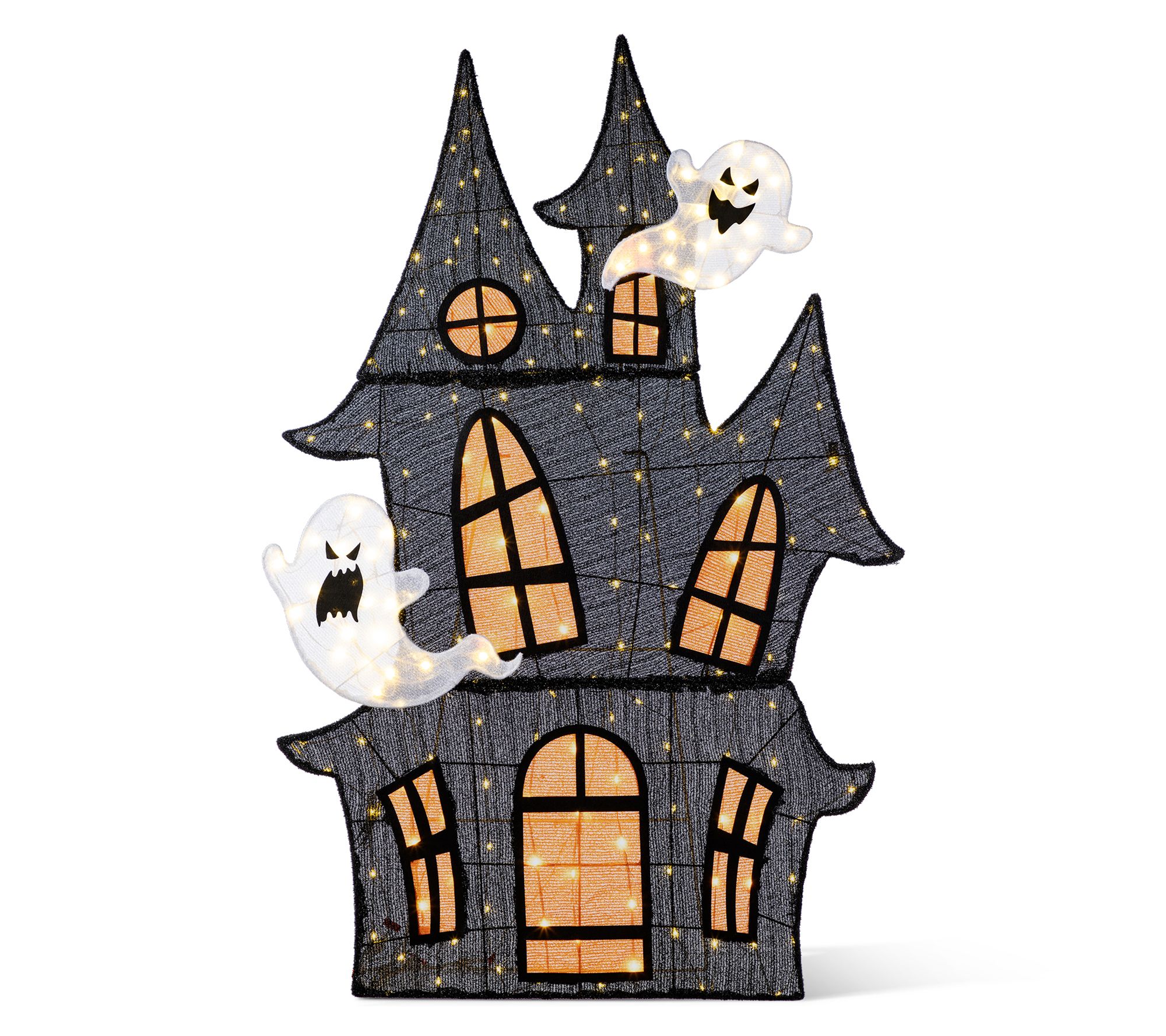 Your front yard sets the scene as dusk falls, tempting trick-or-treaters with a haunted house that shimmers in soft, eerie light. Three-dimensional spires and playful ghosts add character, while warm white LEDs create a cozy yet mysterious glow that enchants every passerby. Let your garden or entryway turn into a showstopper this Halloween. From Glitzhome.