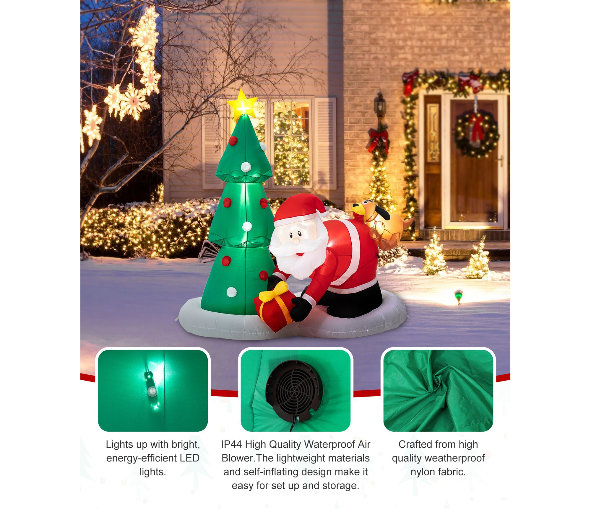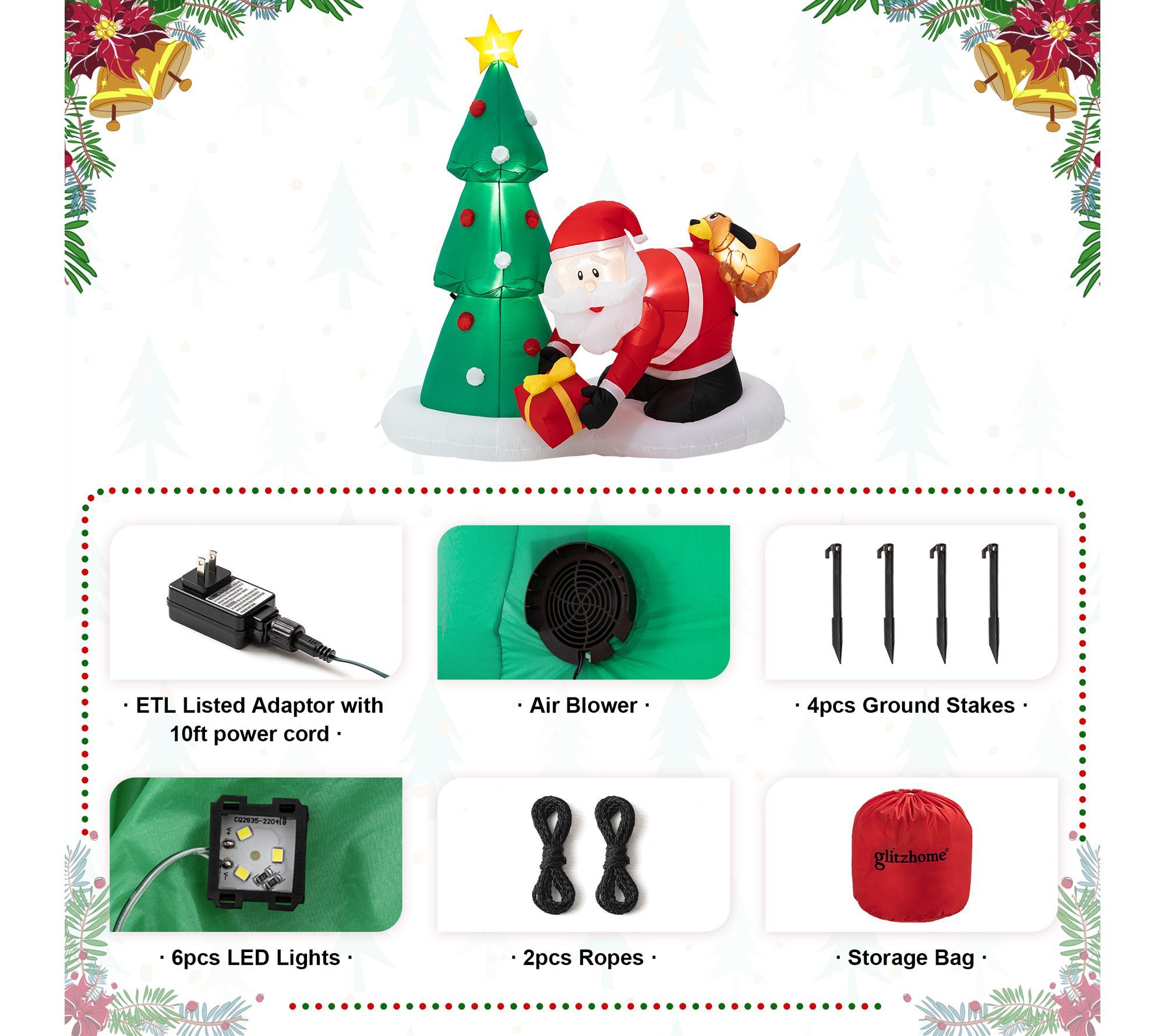 Glitzhome 6.5FT Lighted Dog bites Santa Inflatable Decor