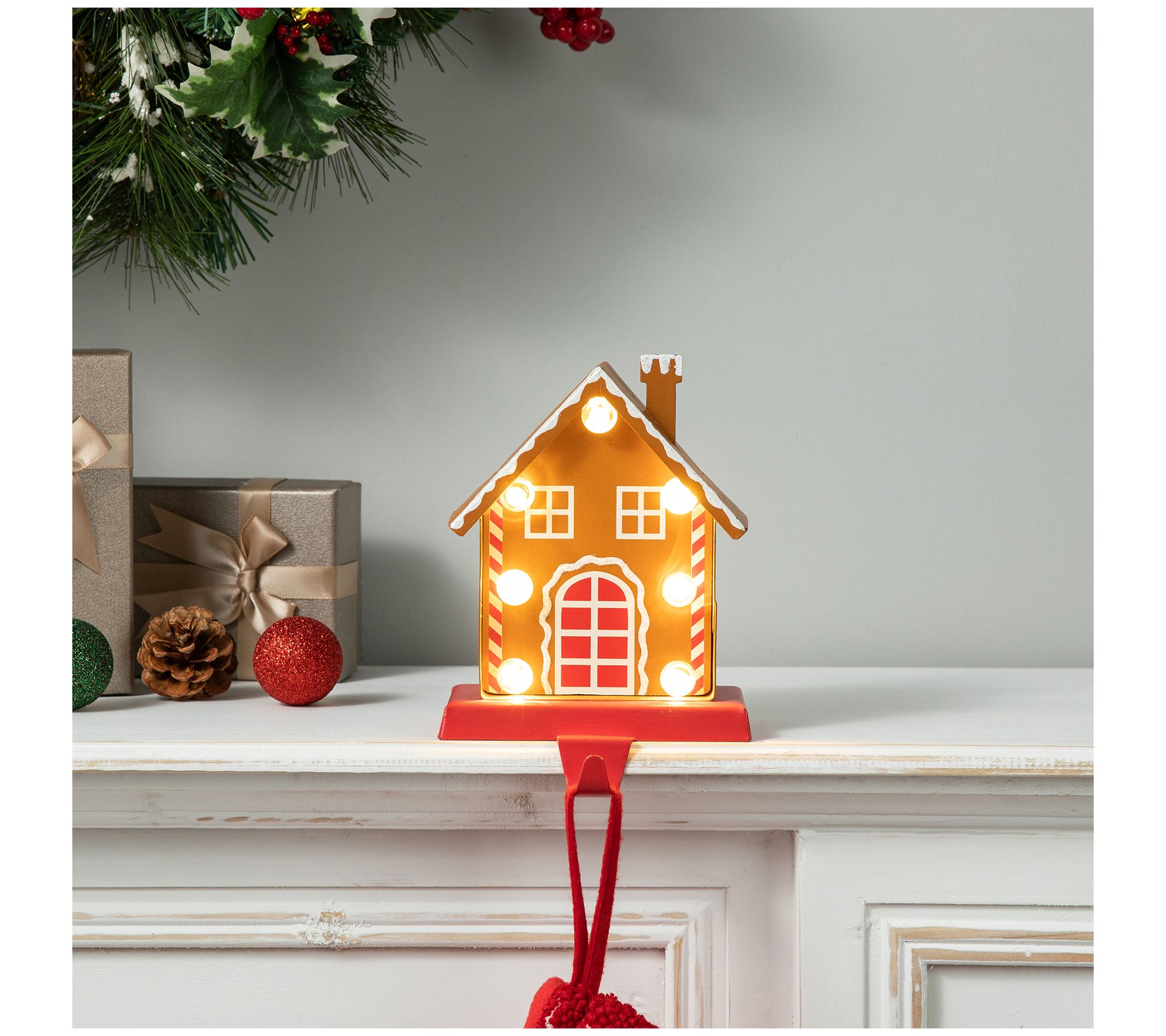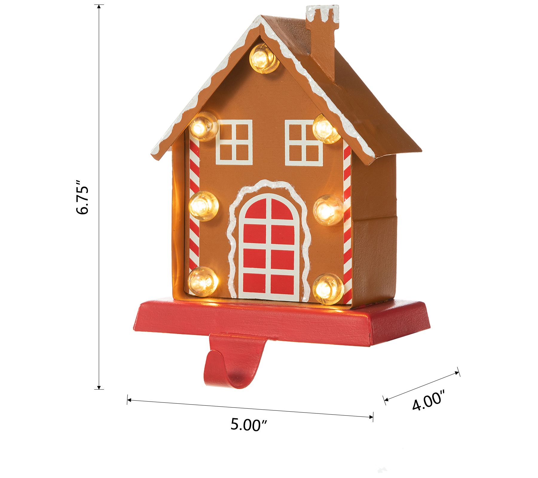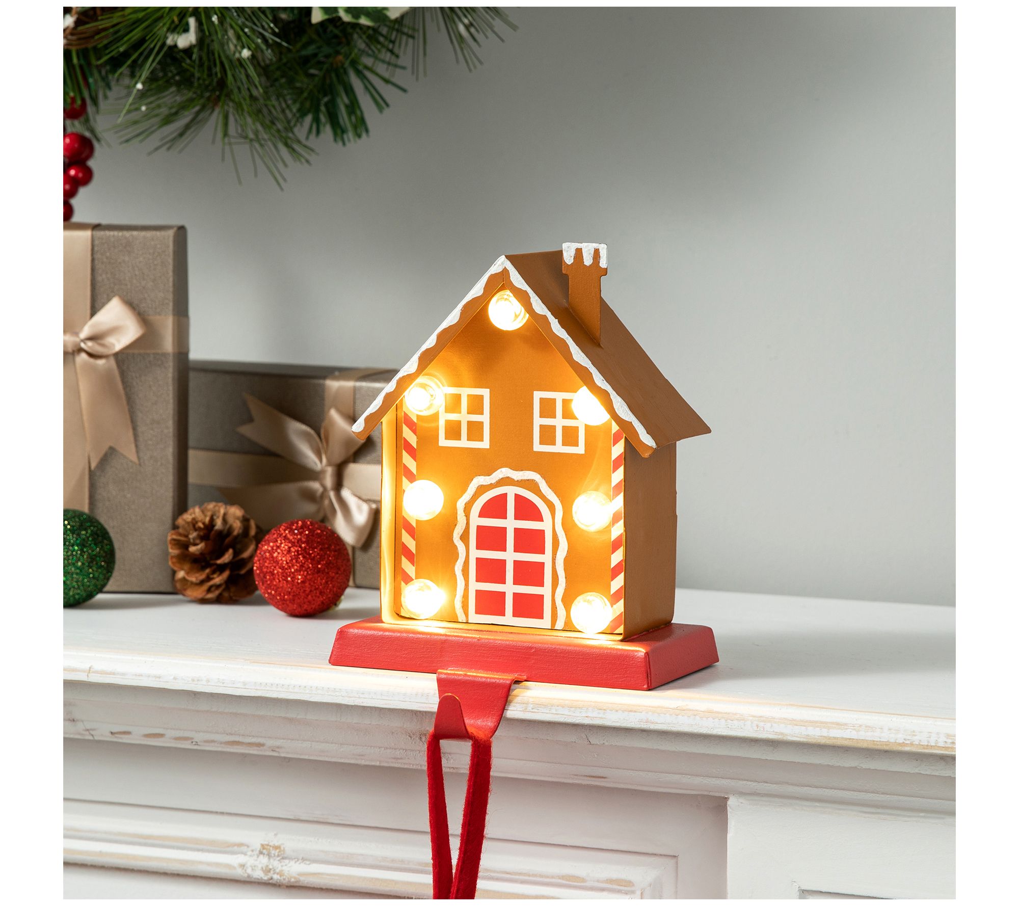 Glitzhome 6.75"H LED Gingerbread House Xmas Stocking Holder