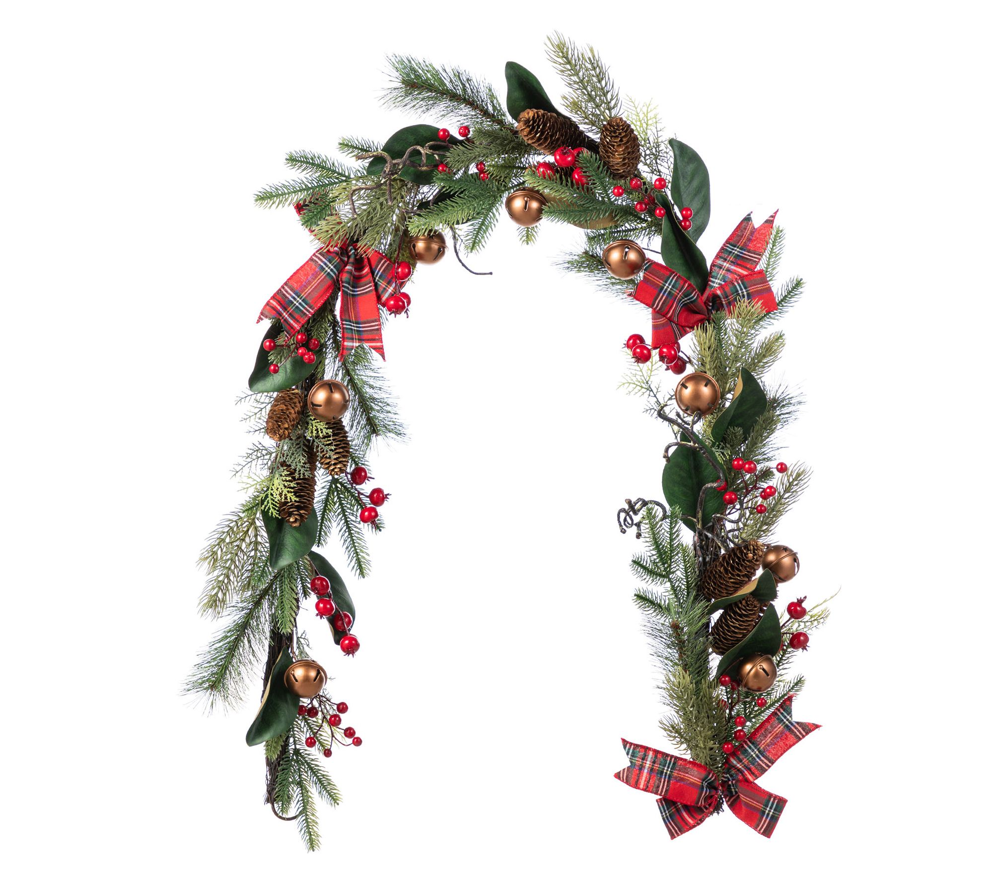 Glitzhome 6FT Christmas Bell, Pinecone & BerryBow Garland