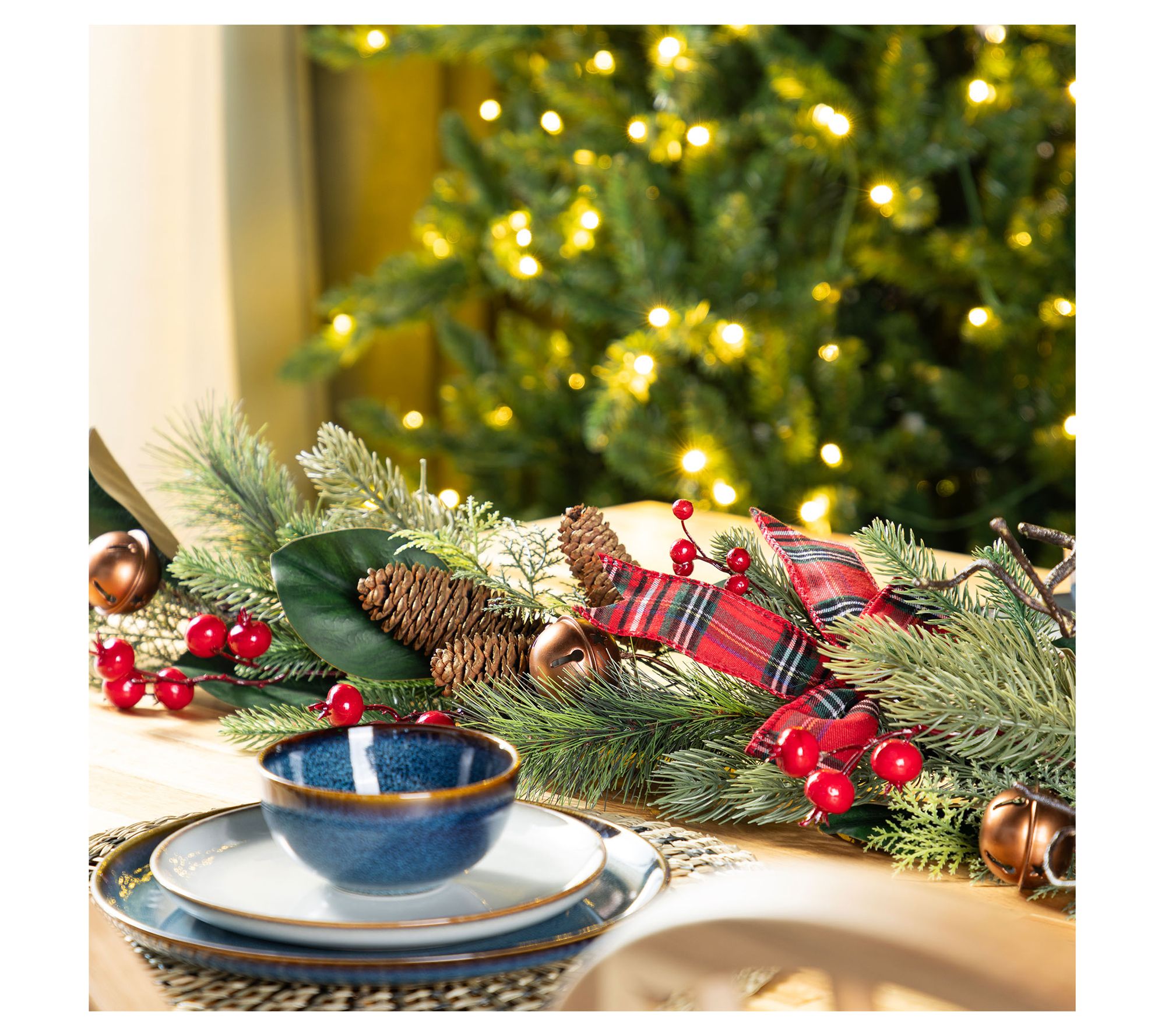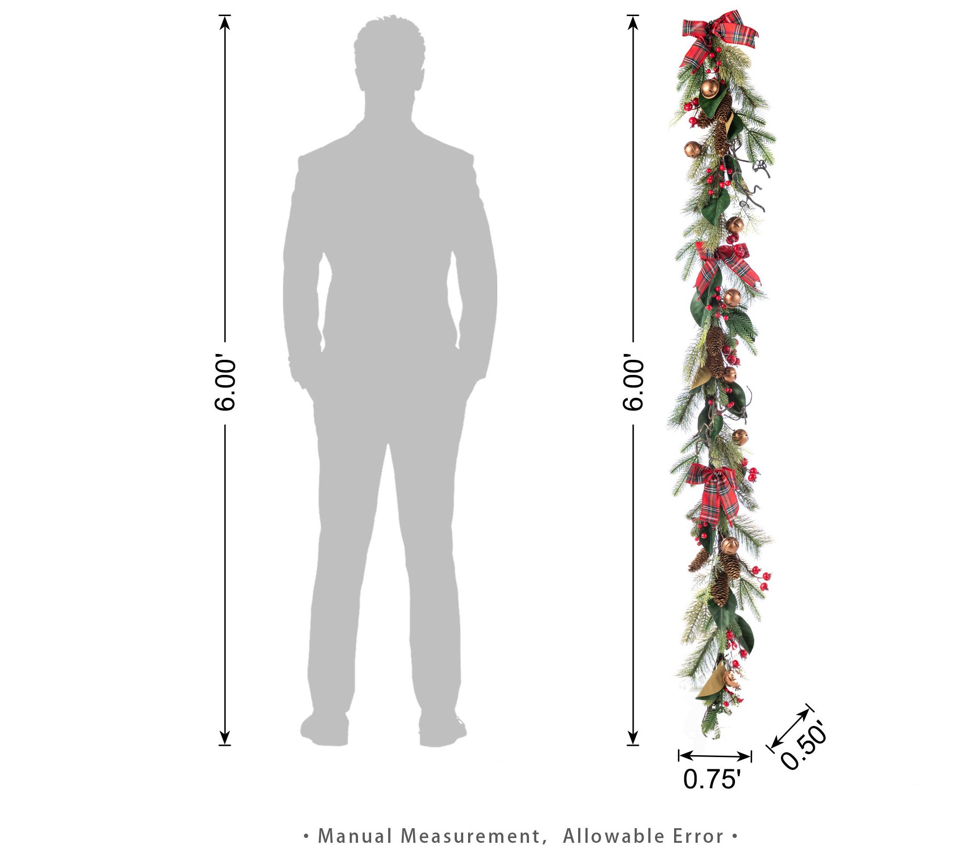 Holiday celebrations feel even more magical with this Christmas garland draped along your mantle, banister, or entryway. Lush greenery, vibrant red bows, copper-colored bells, and clusters of pinecones and berries come together for a cheerful display that instantly brightens any indoor space. From Glitzhome.