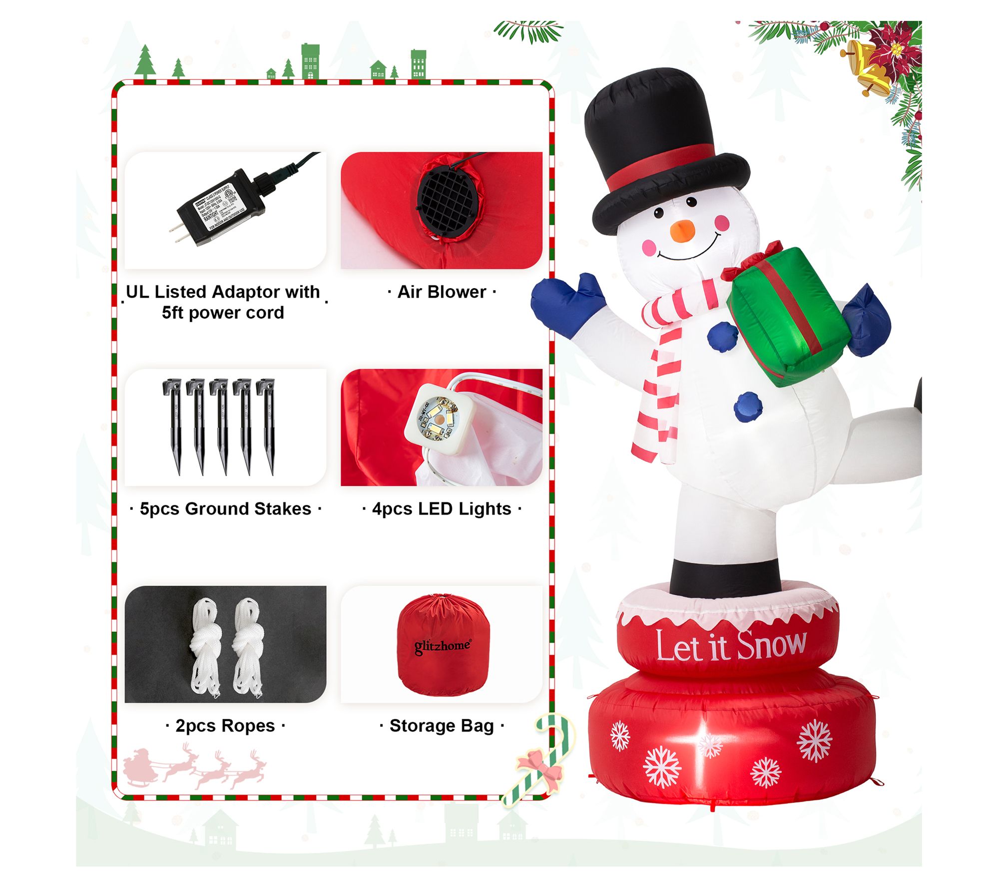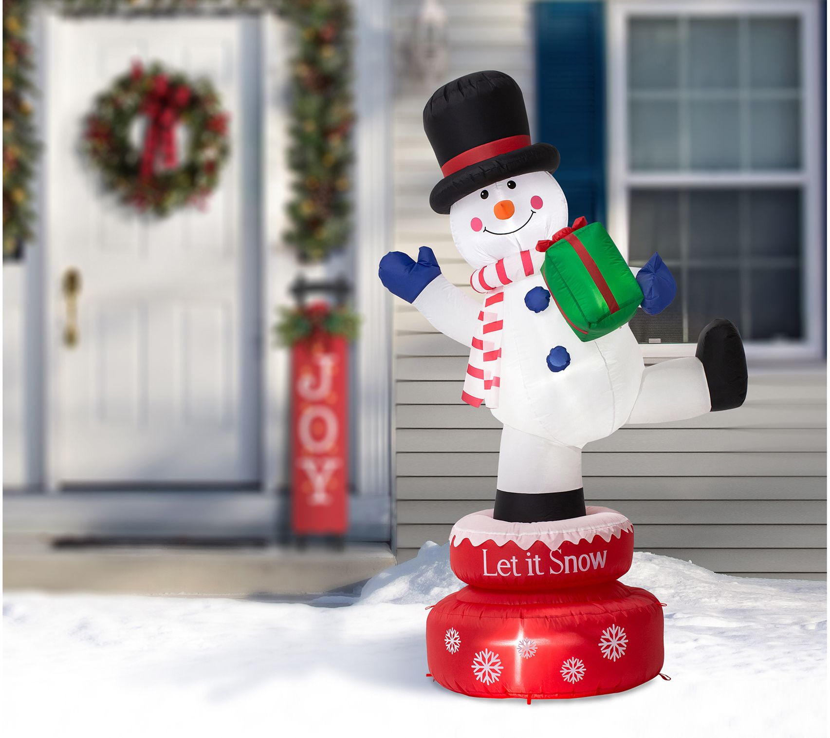 Bring a fresh spin to your holiday display with this cheerful snowman inflatable, featuring a fun rotating design and LED lights that create a warm, welcoming glow. From Glitzhome.