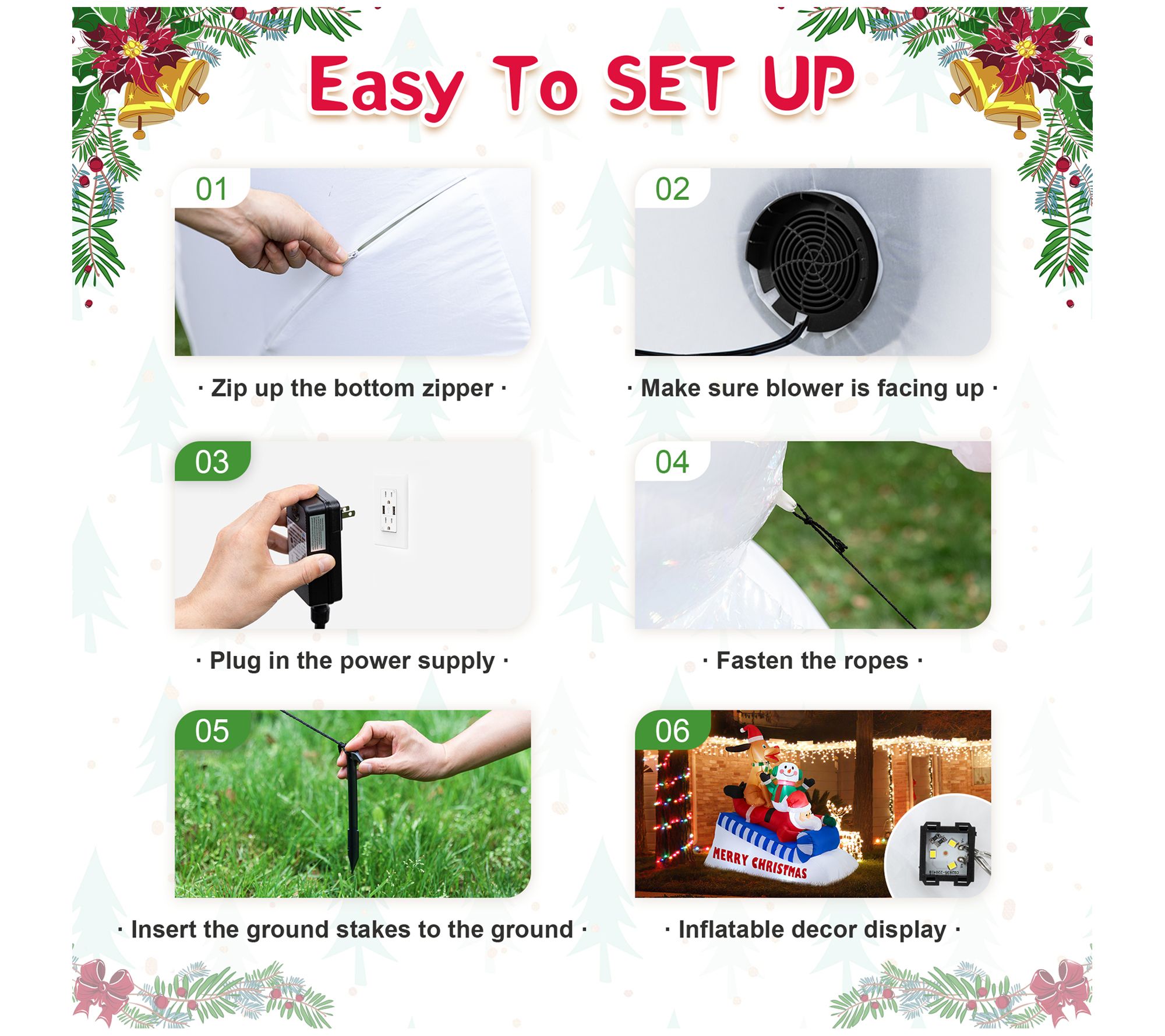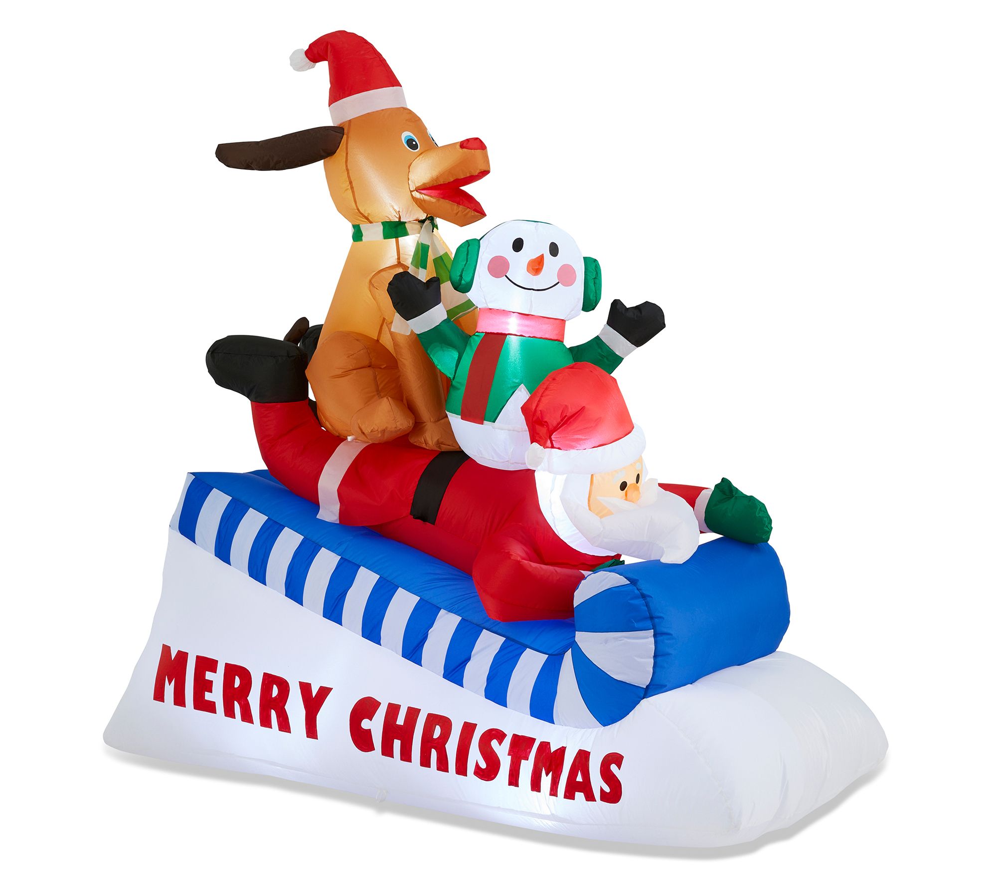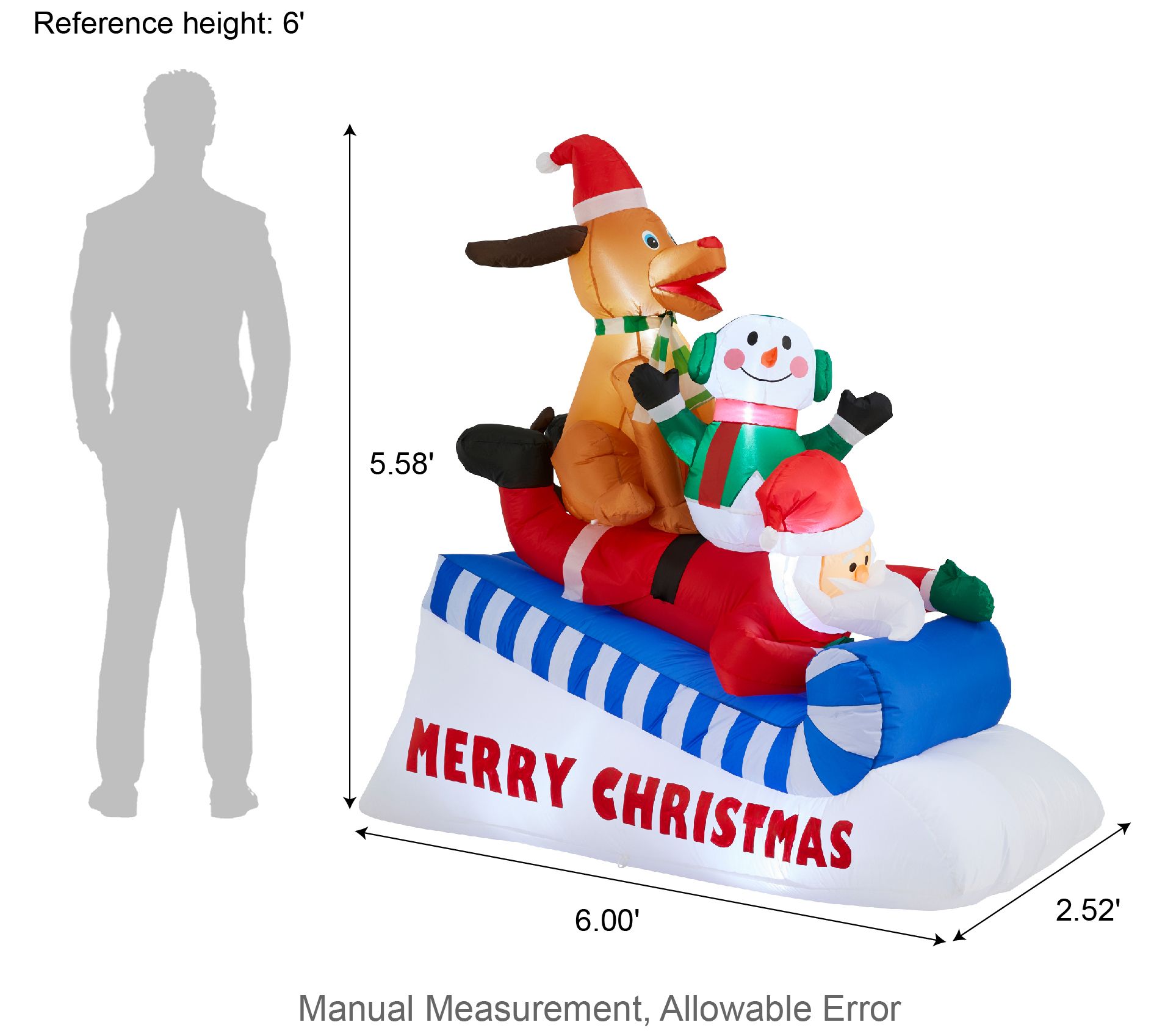 Transform your yard into a winter wonderland with this charming ensemble featuring Santa, a snowman, and a dog skiing merrily amidst twinkling lights. Standing 6 feet tall, this inflatable decoration brings plenty of holiday fun, adding a whimsical touch to your outdoor setup. Simple to set up, this jolly trio promises to spread joy all season long. From Glitzhome.