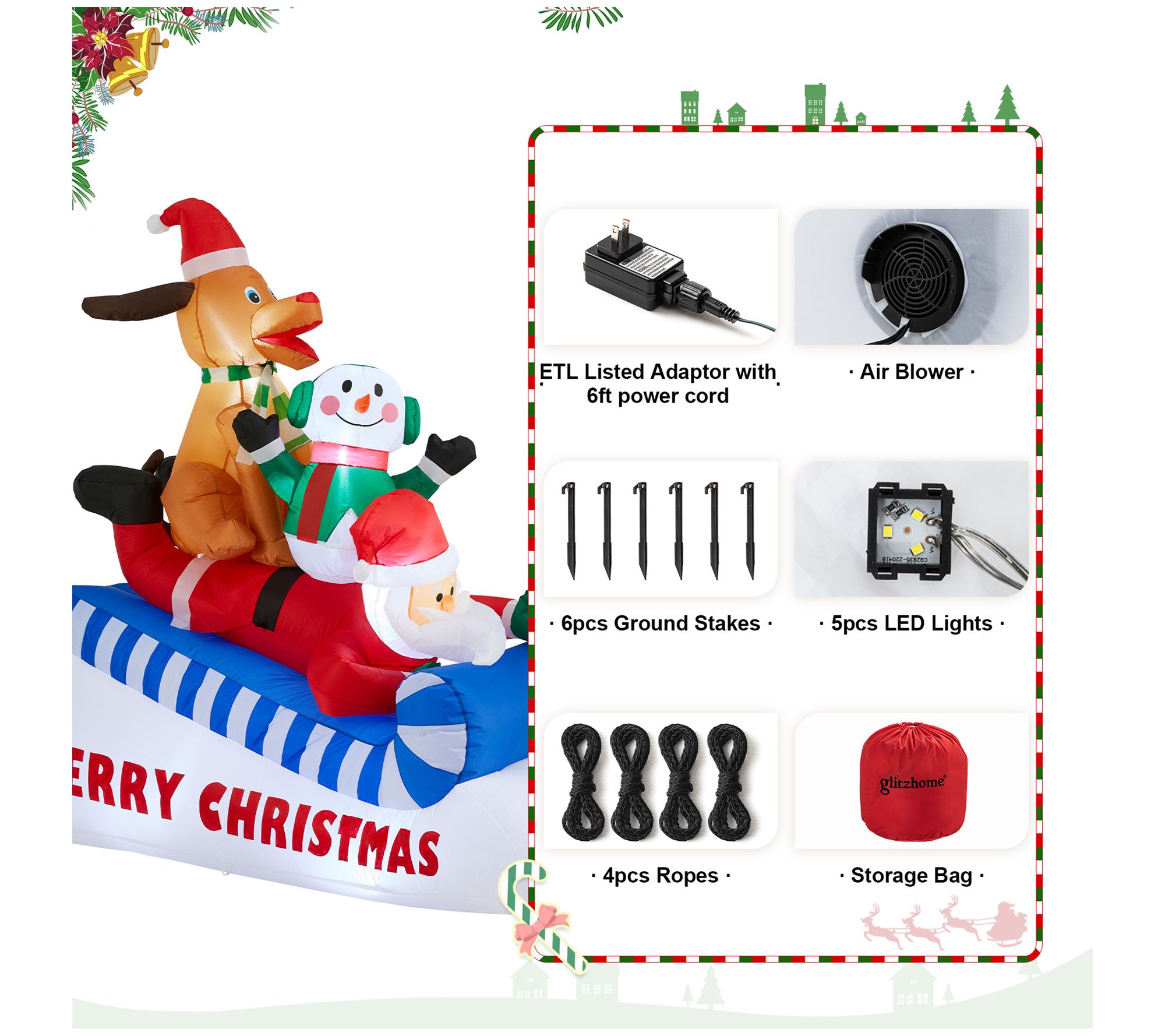 Glitzhome 6ft Lighted Inflatable Skiing Santa Snowman and Dog