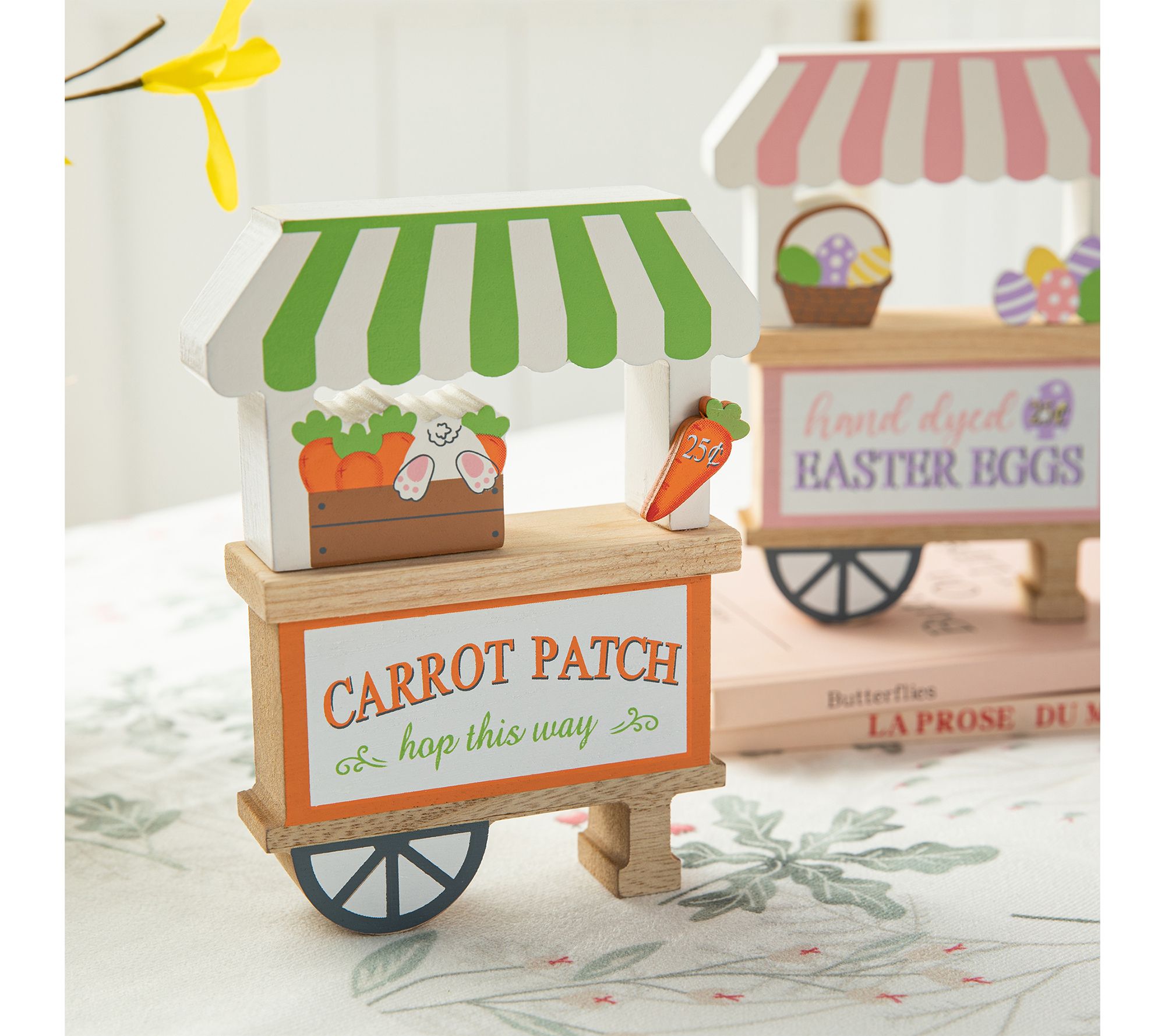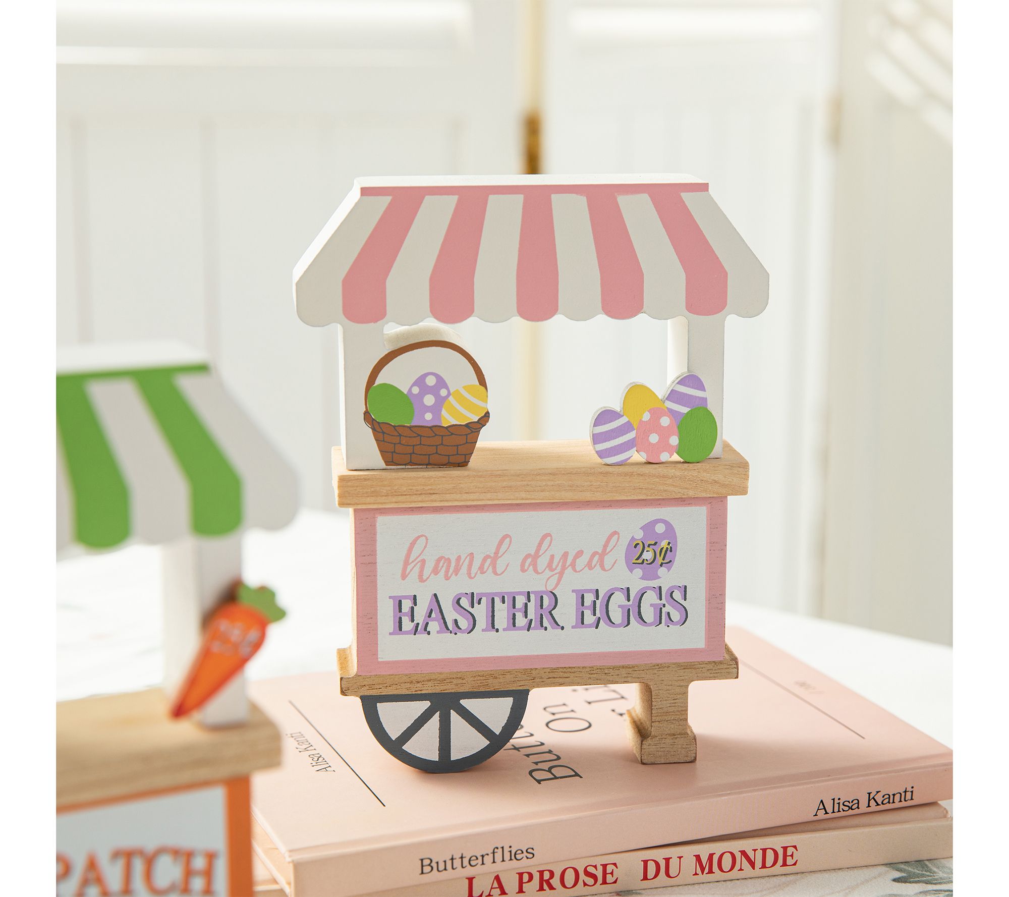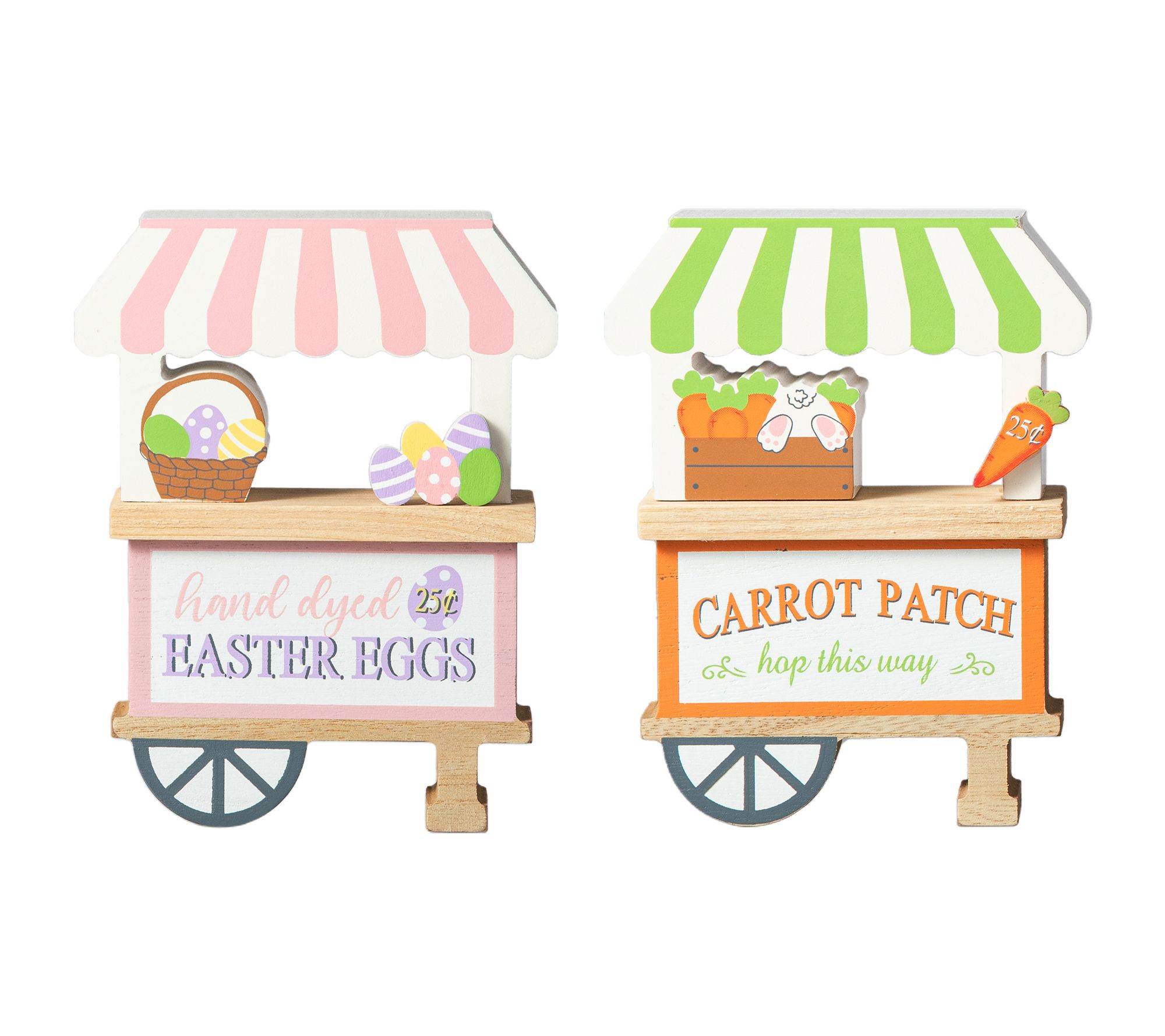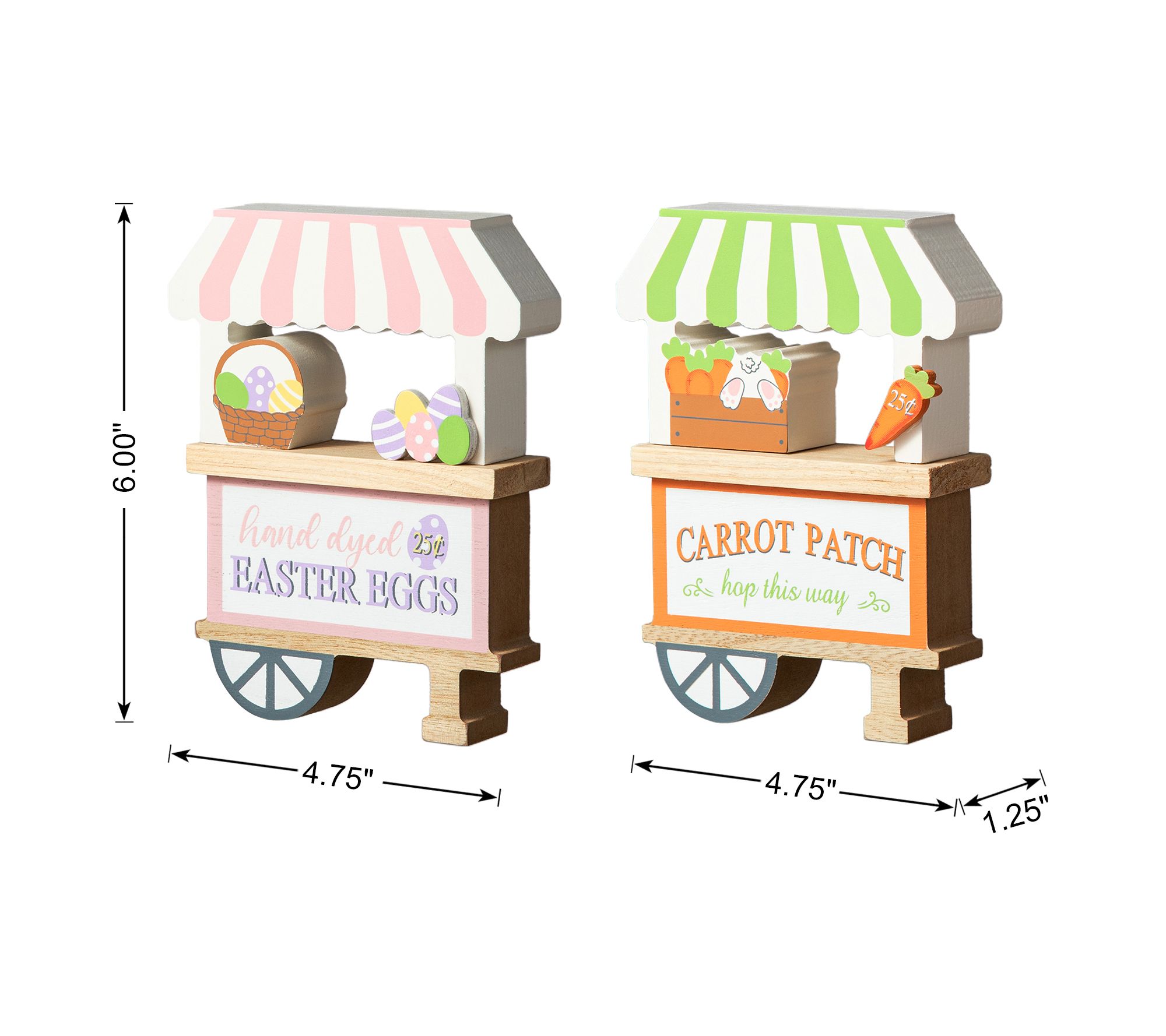 Glitzhome 6"H Easter Wooden Huckster Booth Tables Decor S/2
