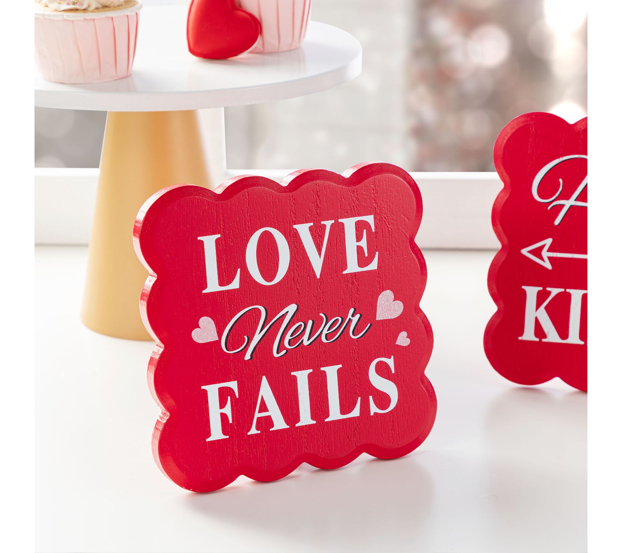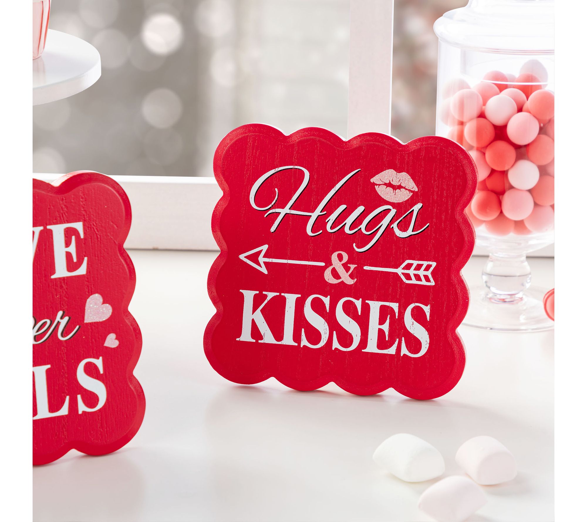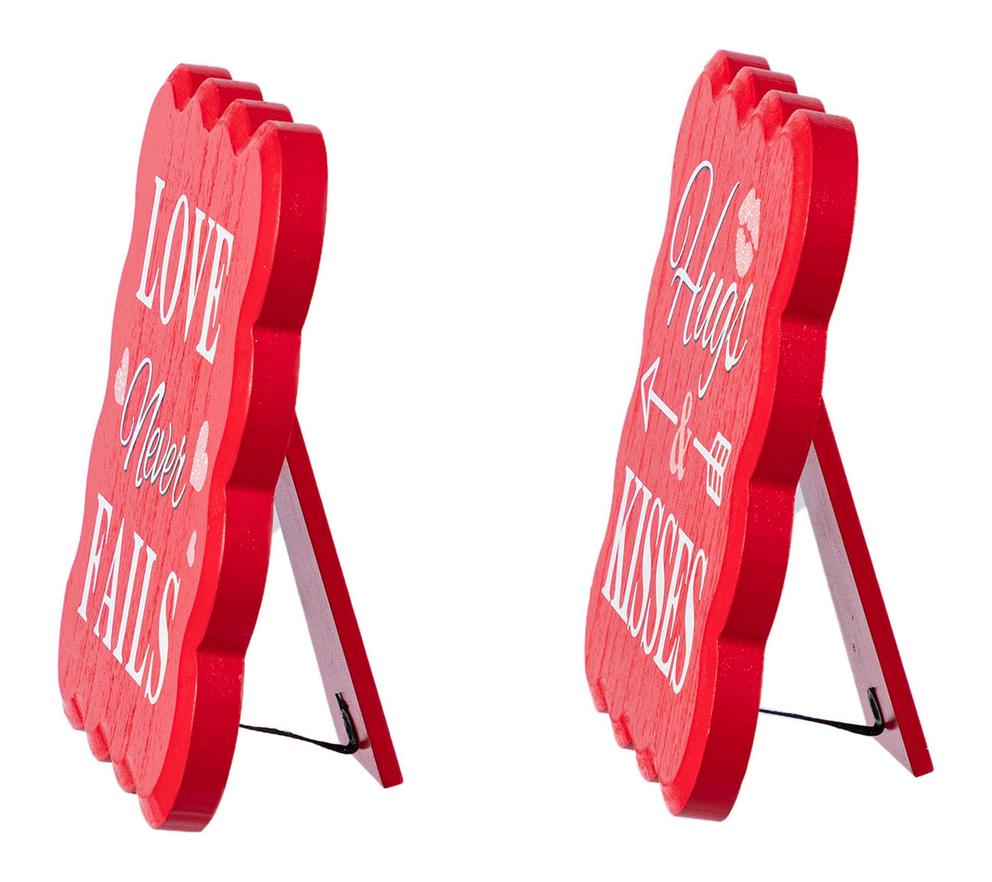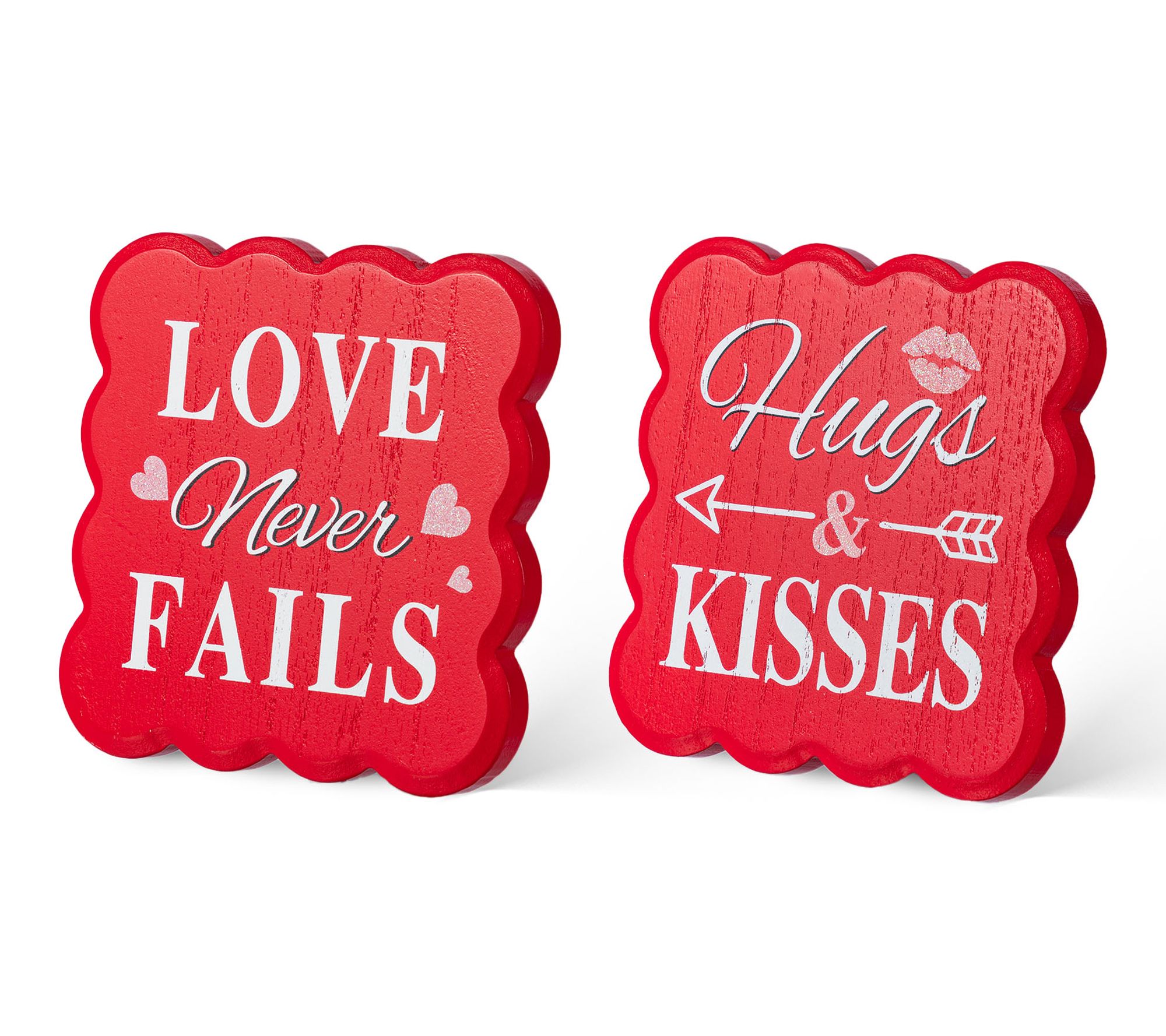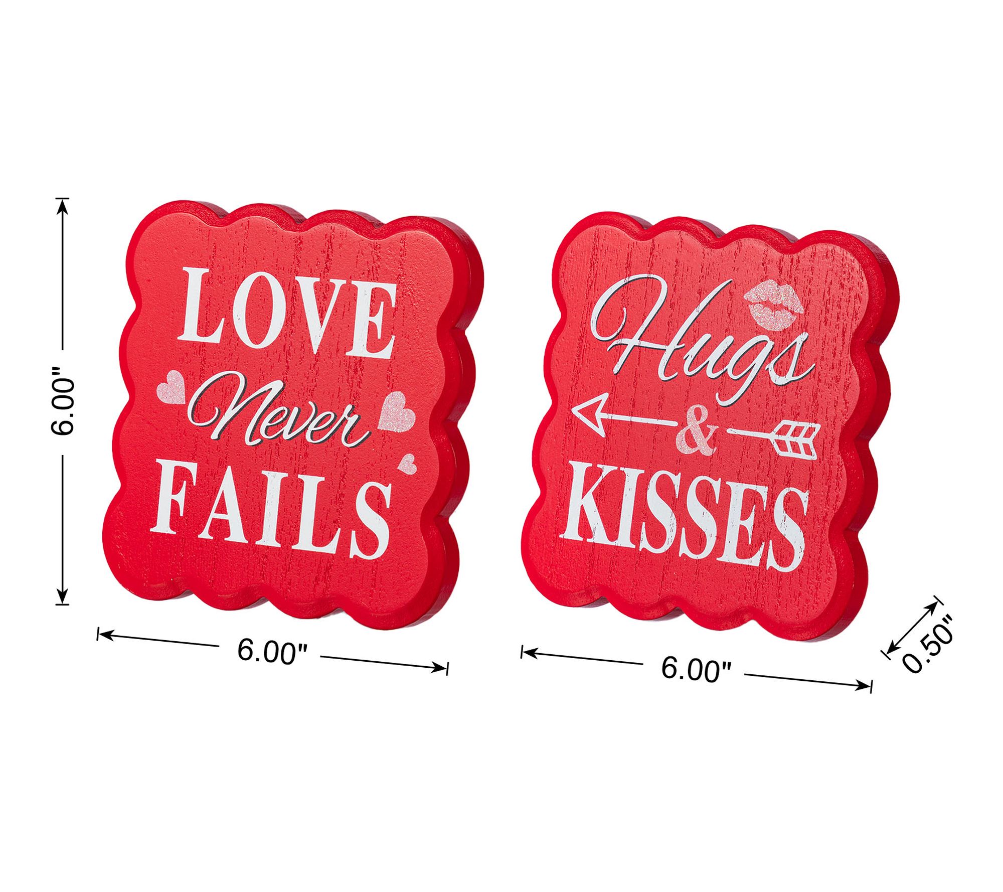 Sprinkle a hint of romance around your home with this set of two wooden Valentine's Day decorations, each featuring a heartfelt phrase and scalloped edges. Whether displayed on your table, mantel, or shelf, these delightful accents fill your space with warmth and loving charm for the season. From Glitzhome.