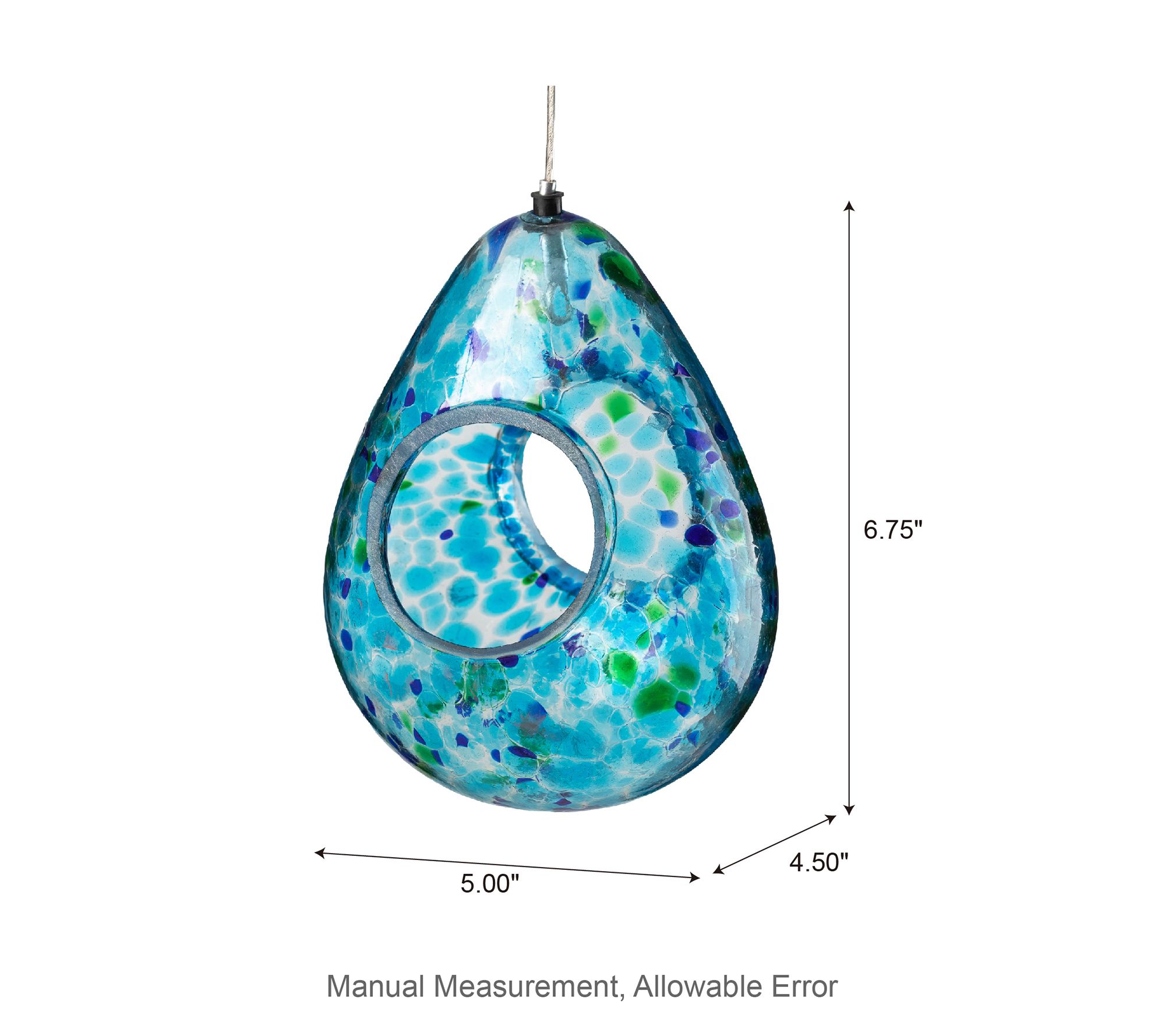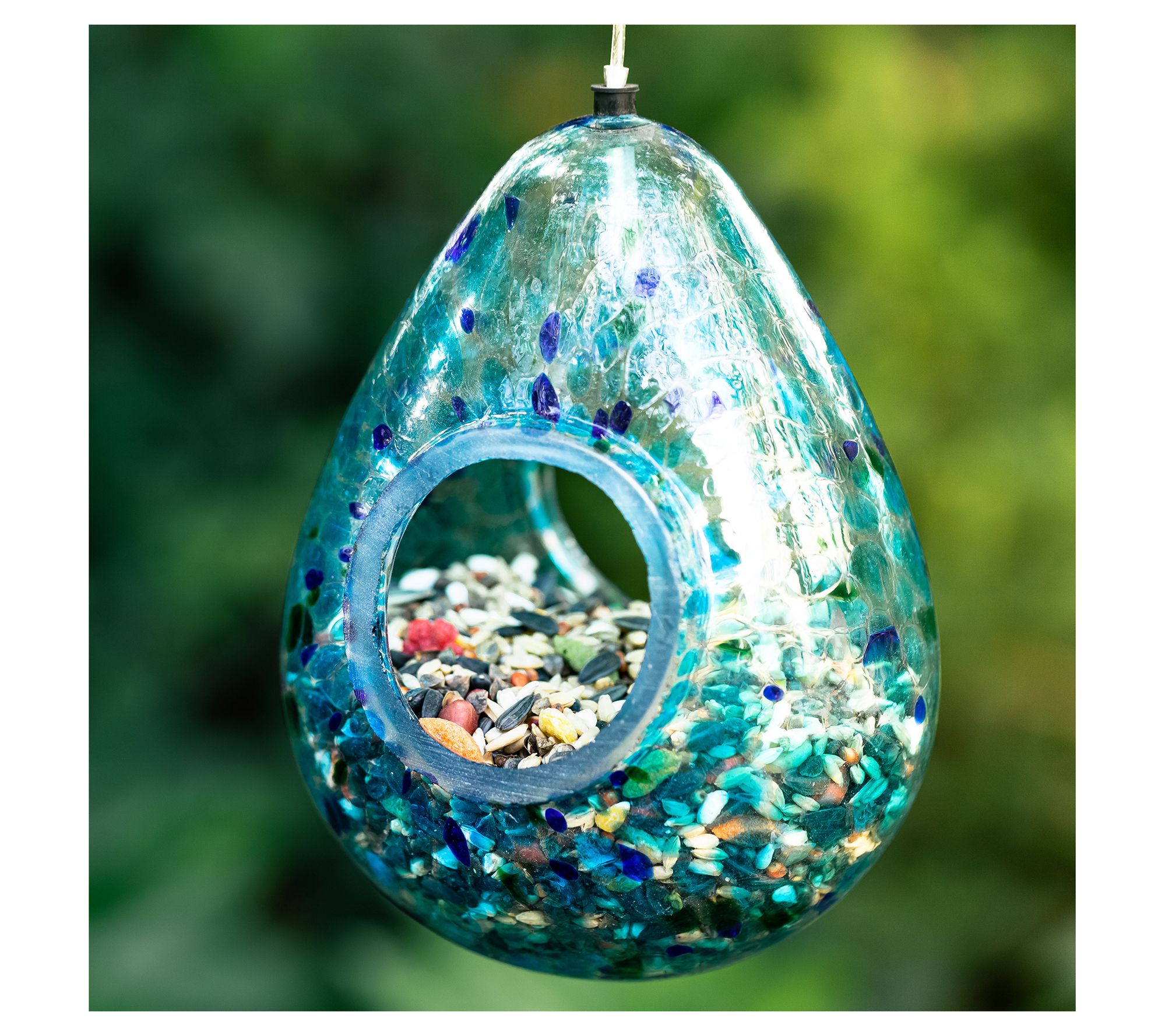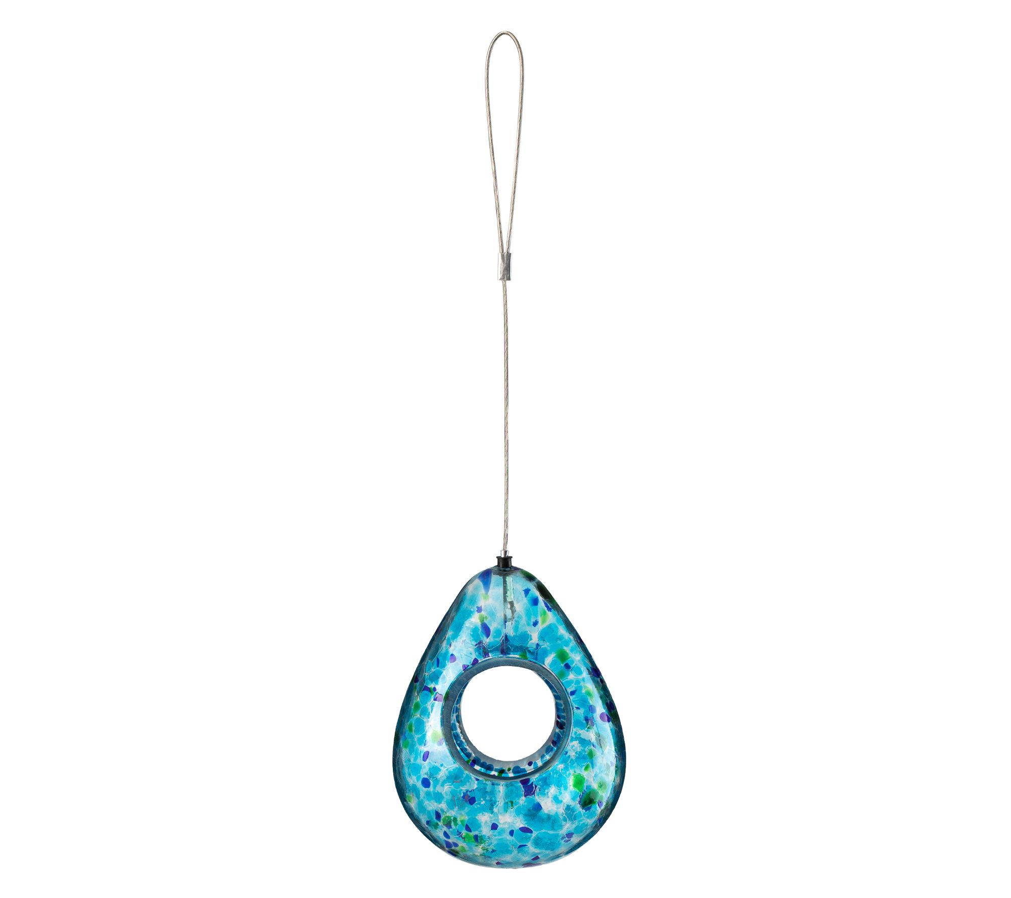 Glitzhome 7'' Artisan Glass Water Drop HangingBirdfeeder