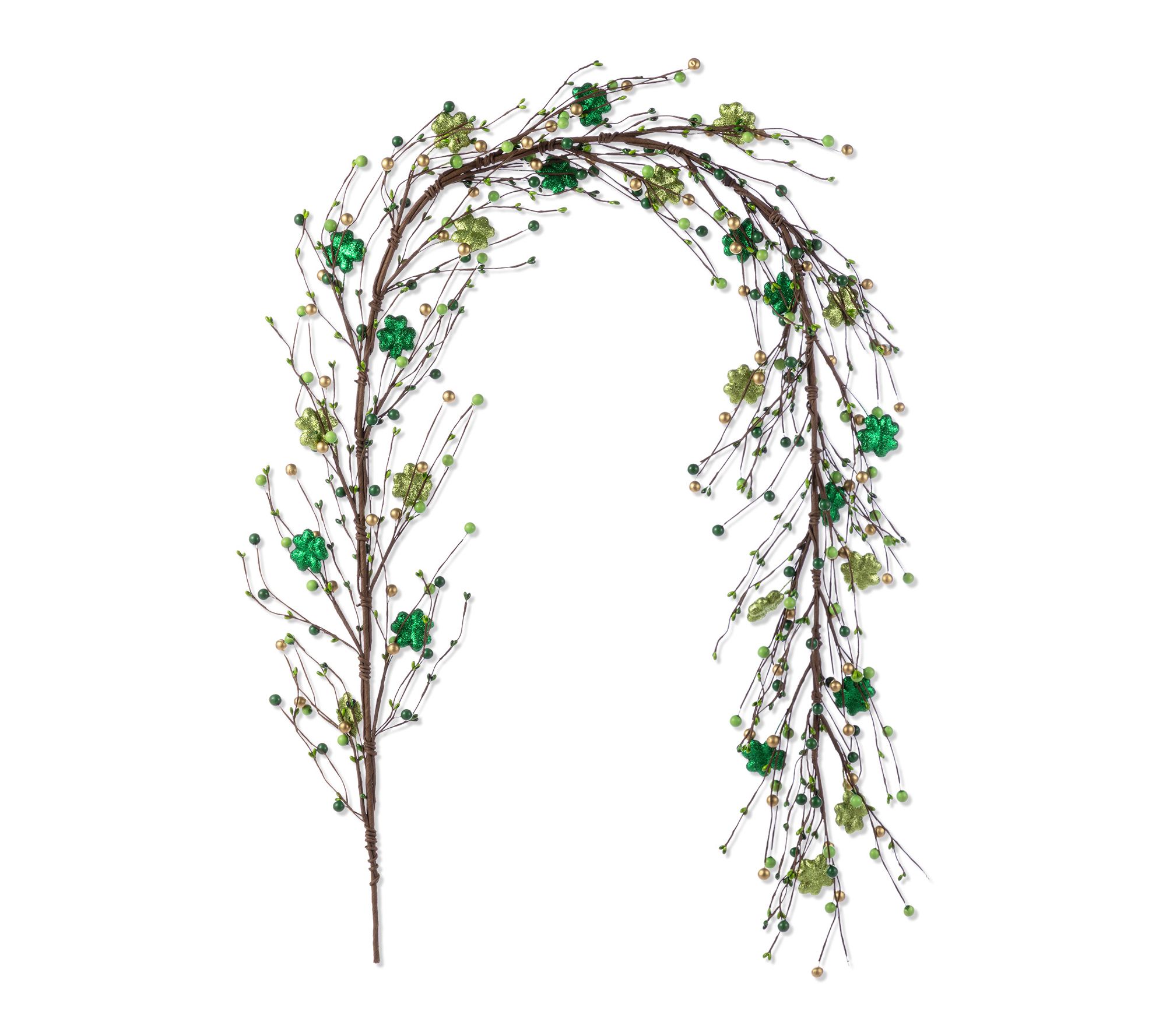 • Lifelike shamrocks, goldtone beads, and green berry accents on twisted branches