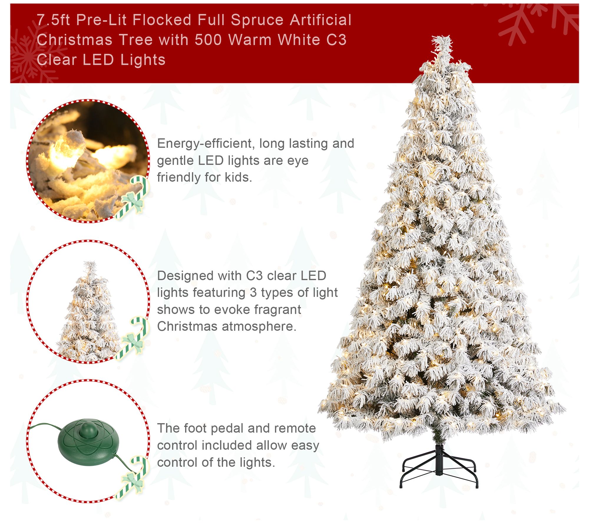 Glitzhome 7.5' LED Pre-Lit Flocked Spruce FauxChristmas Tree