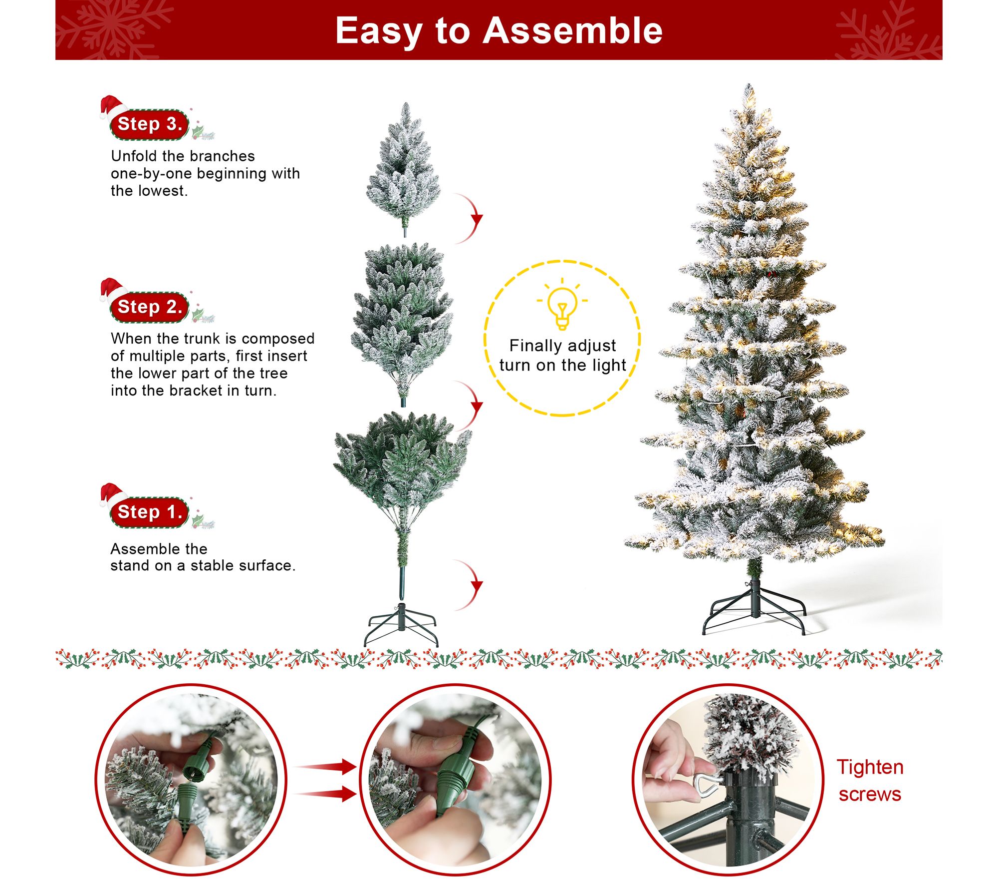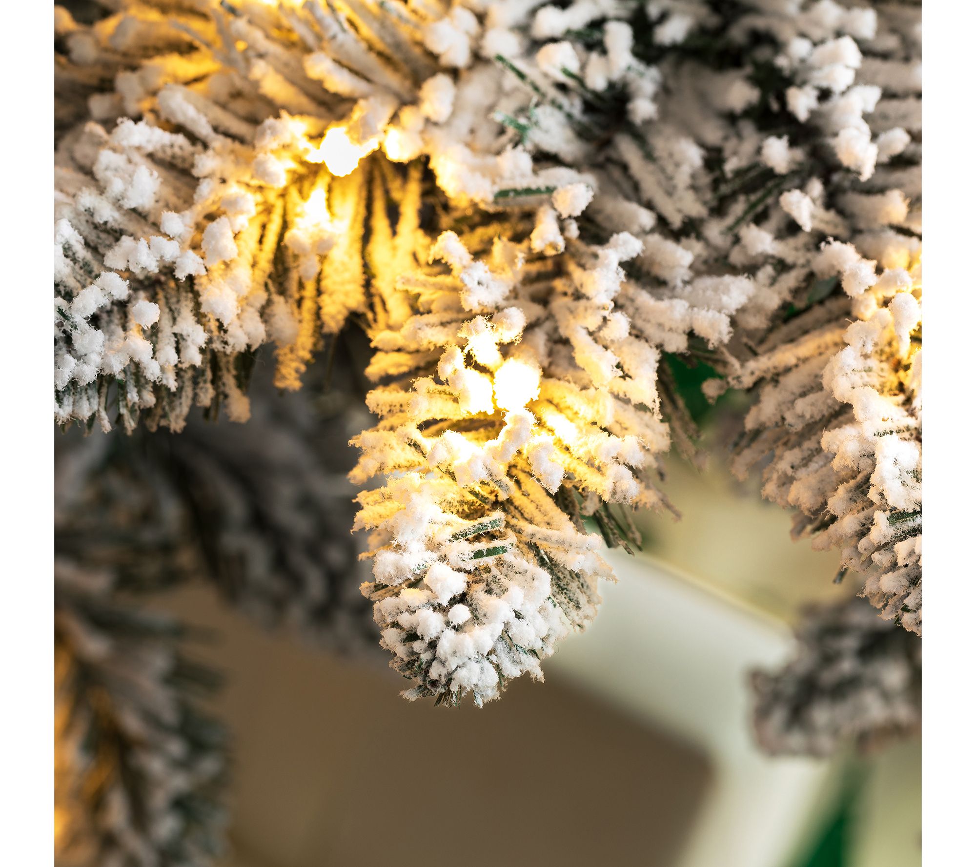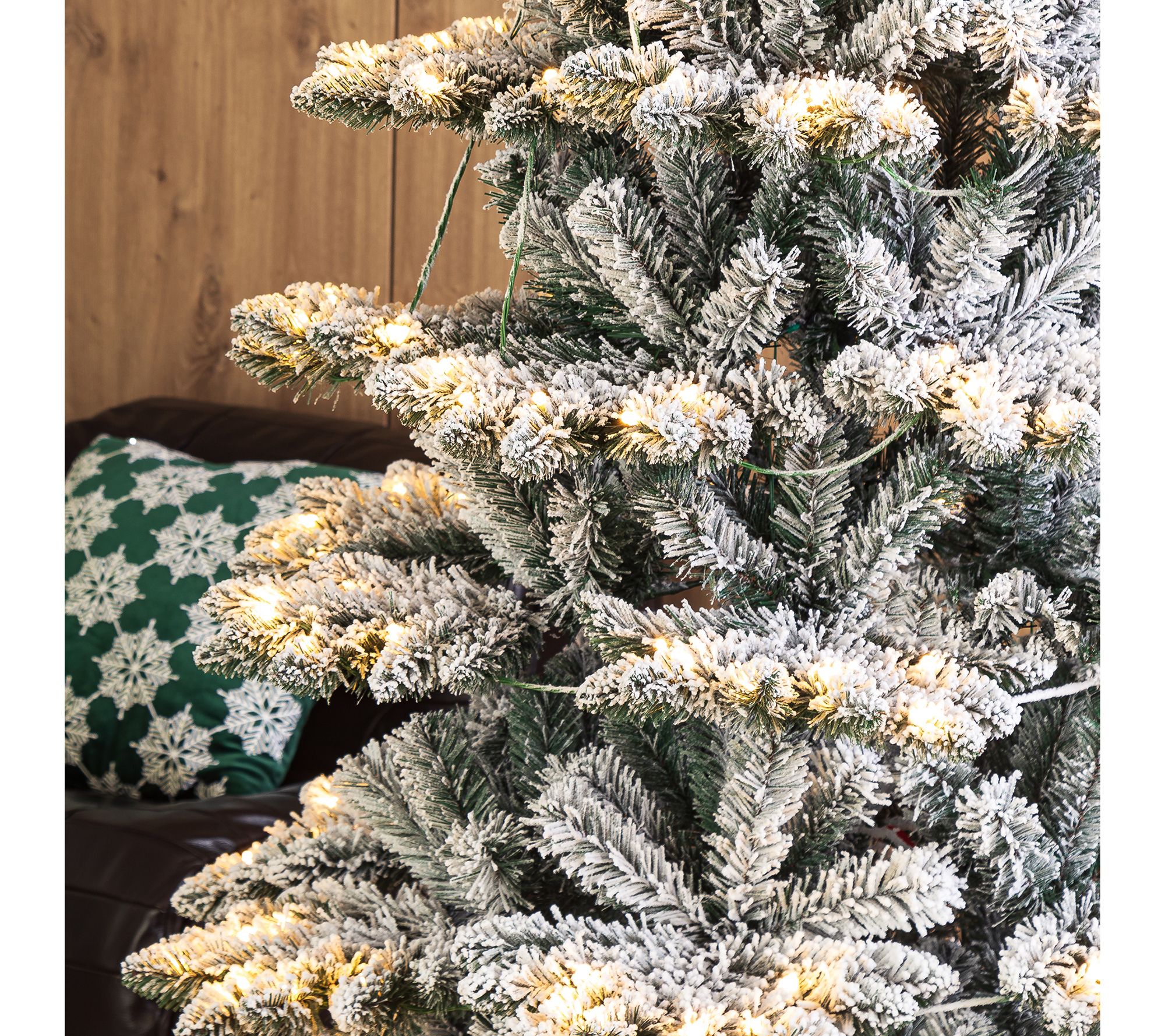 • Prelit faux flocked Spruce tree