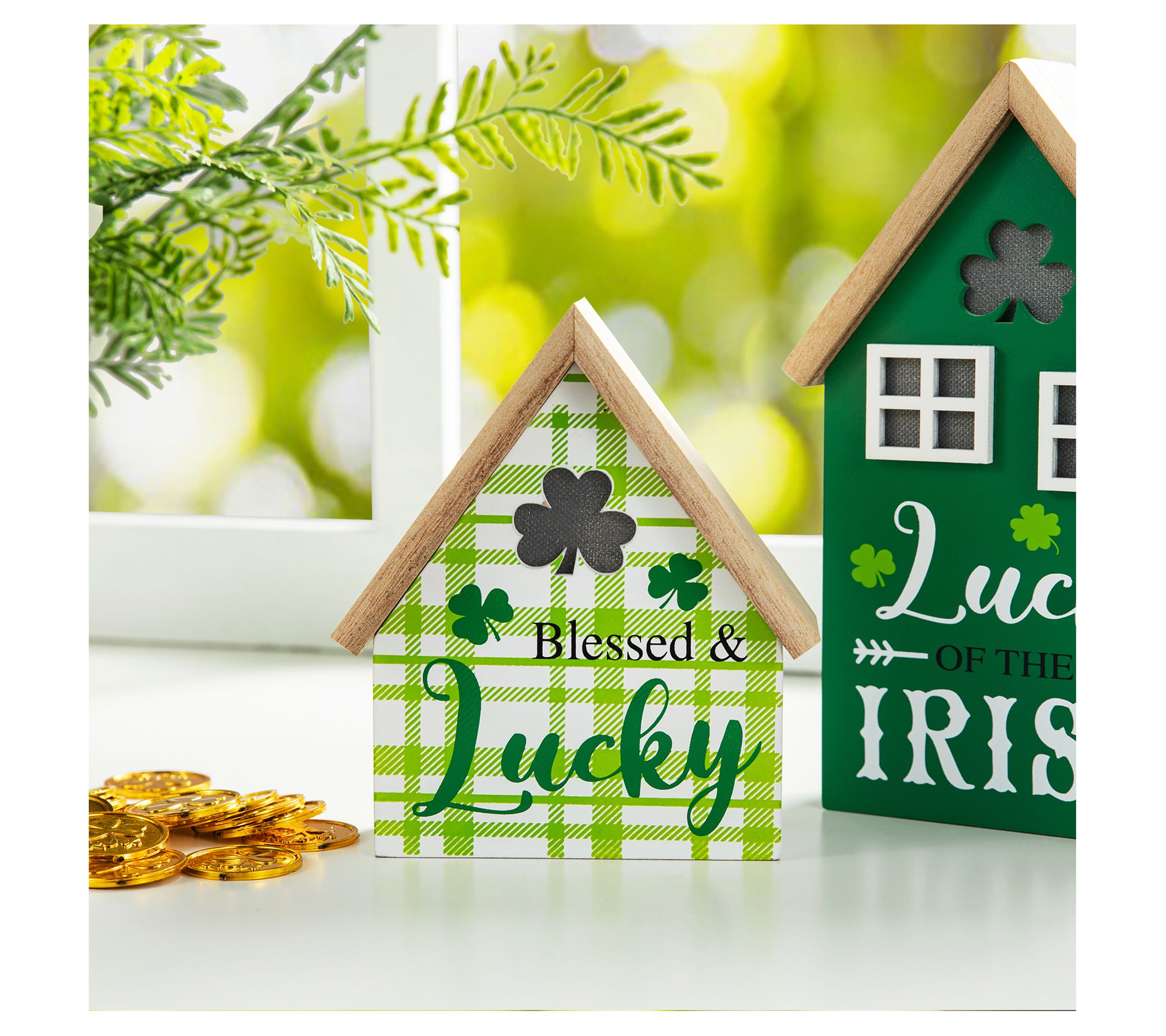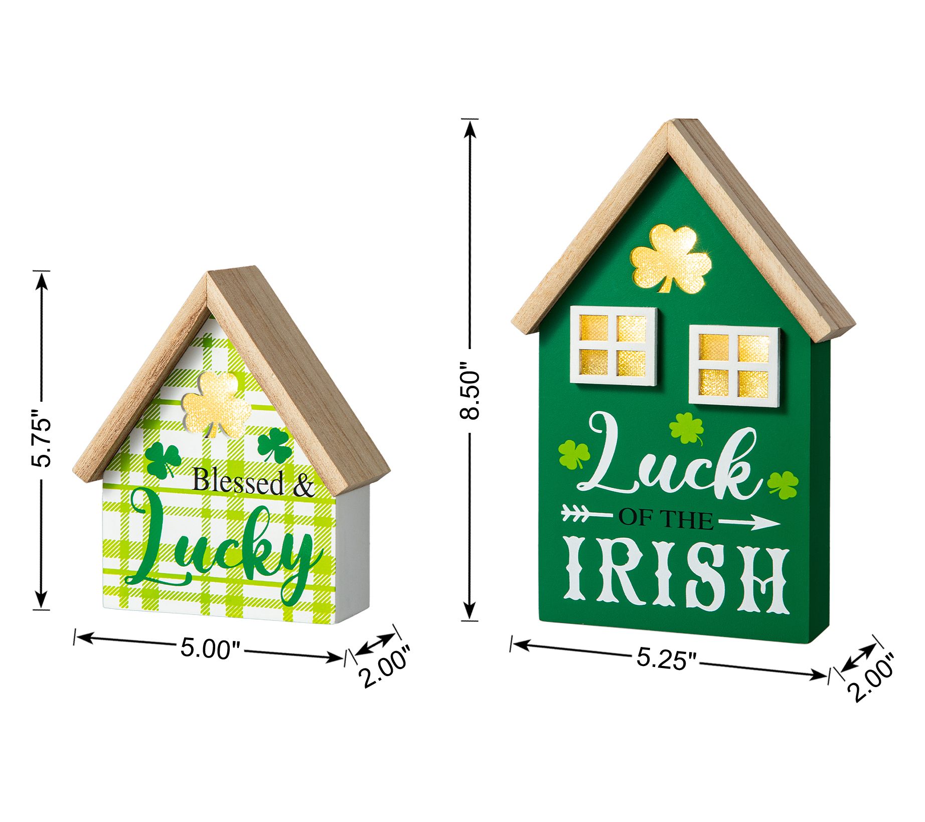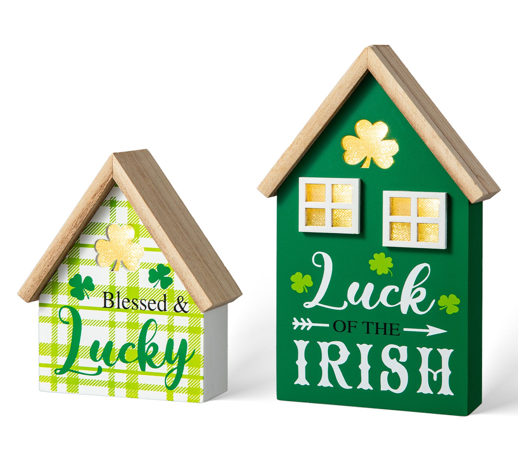 Glitzhome 8.5"H Lighted St.Patrick's Table Decor Houses S/2
