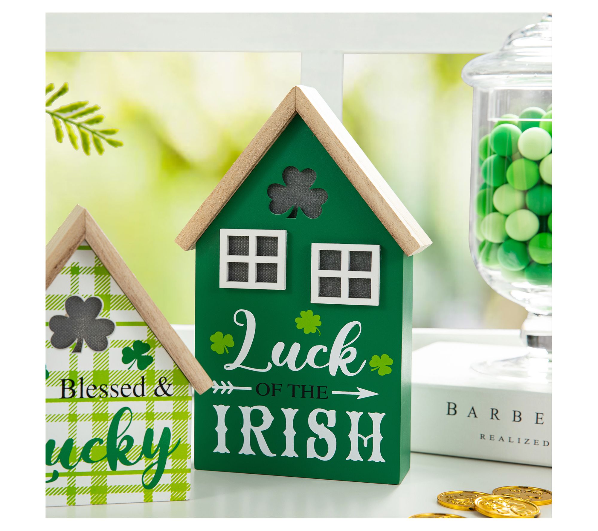 Light up your home with the charming spirit of St. Patrick's Day using these delightful table decor houses. Adorned in festive green and white, these lighted houses bring a touch of good fortune and blessings to your holiday setting. From Glitzhome.
