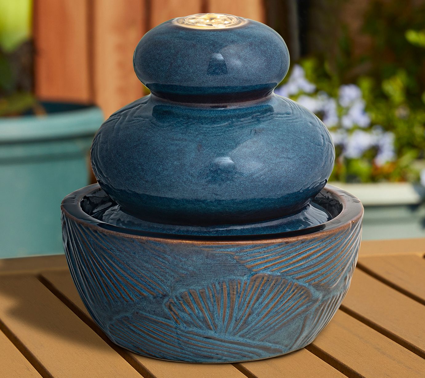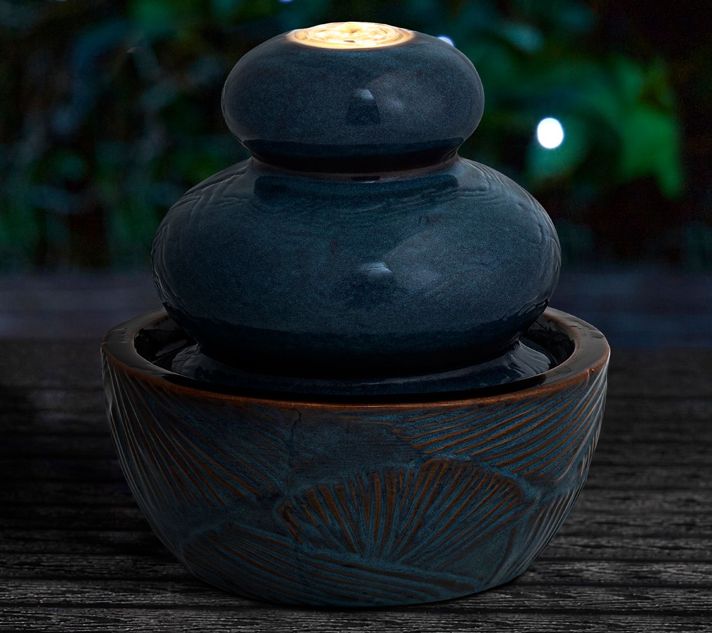 Glitzhome 9'' LED Lit Leaf Textured Ceramic Tabletop Fountain