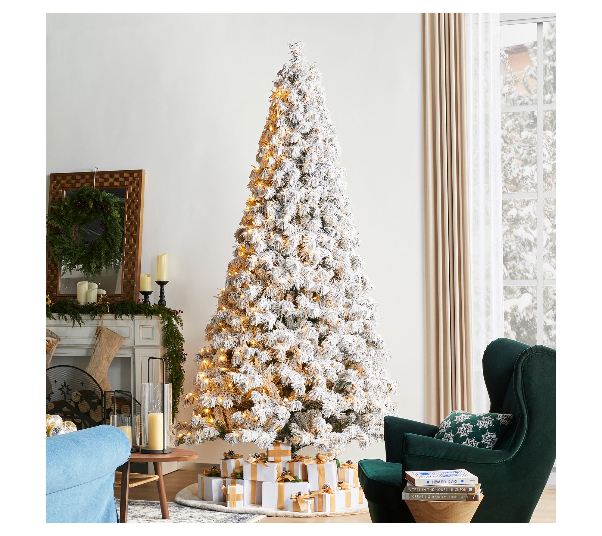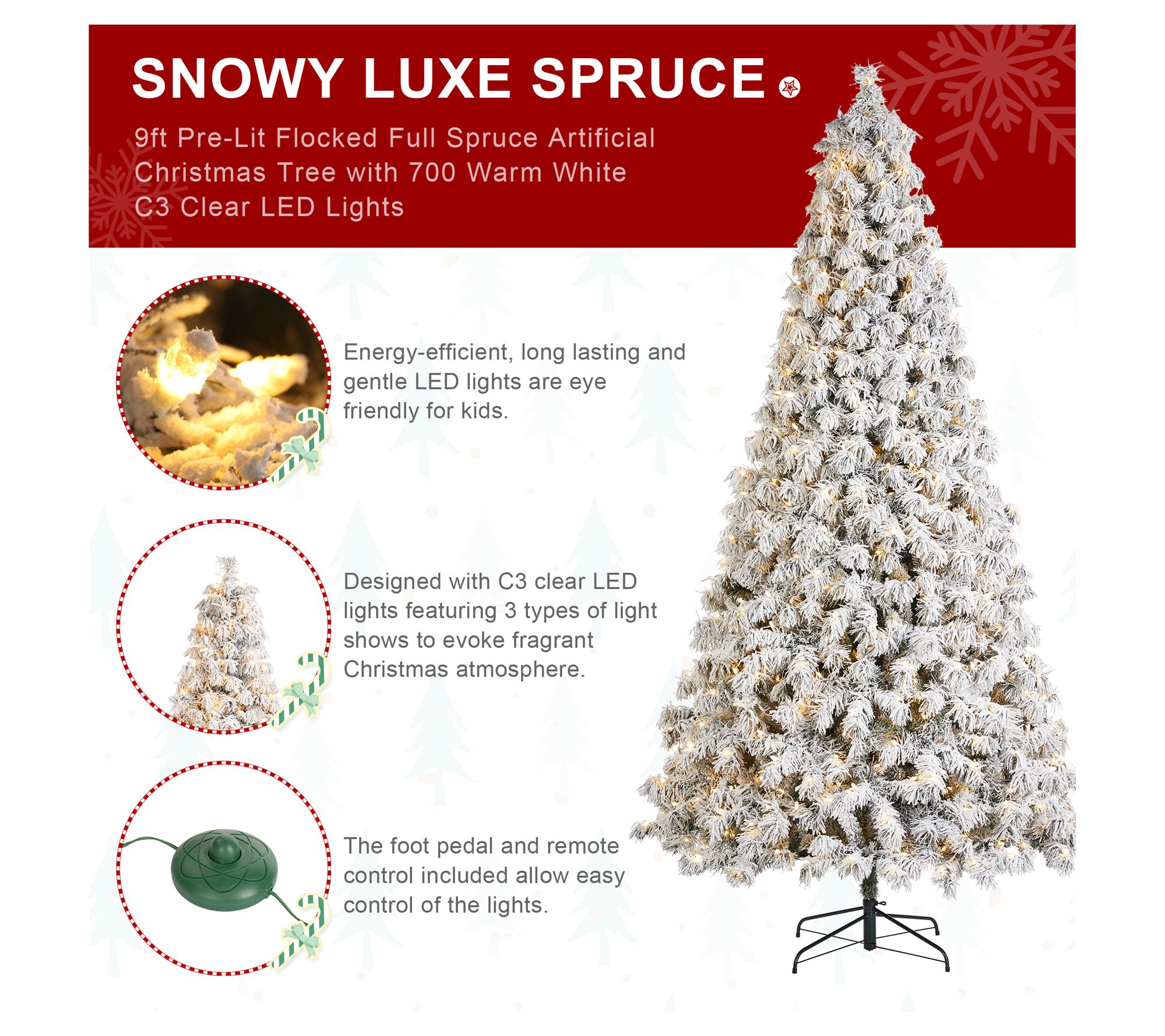 Glitzhome 9' LED Pre-Lit Flocked Spruce Faux Christmas Tree
