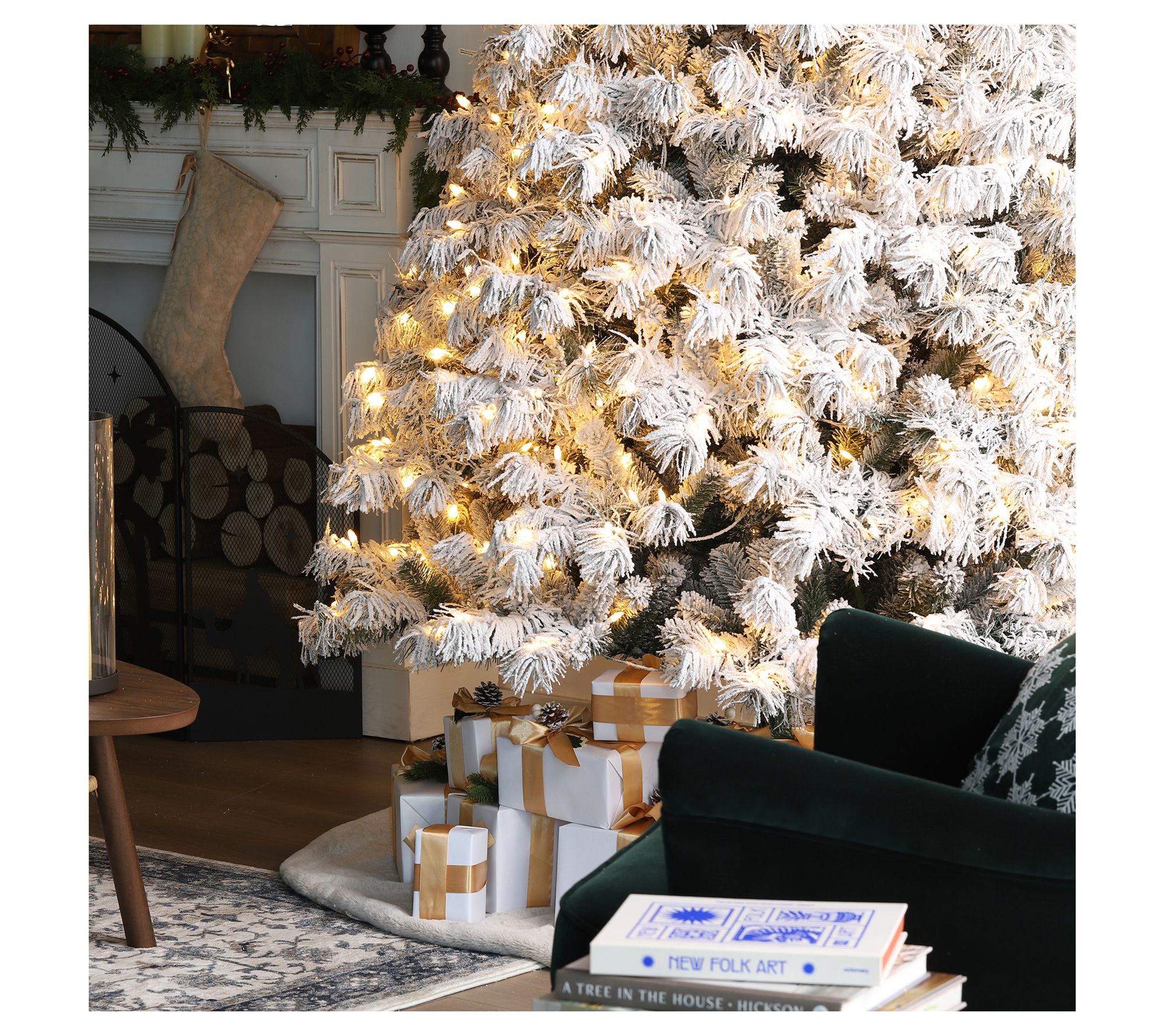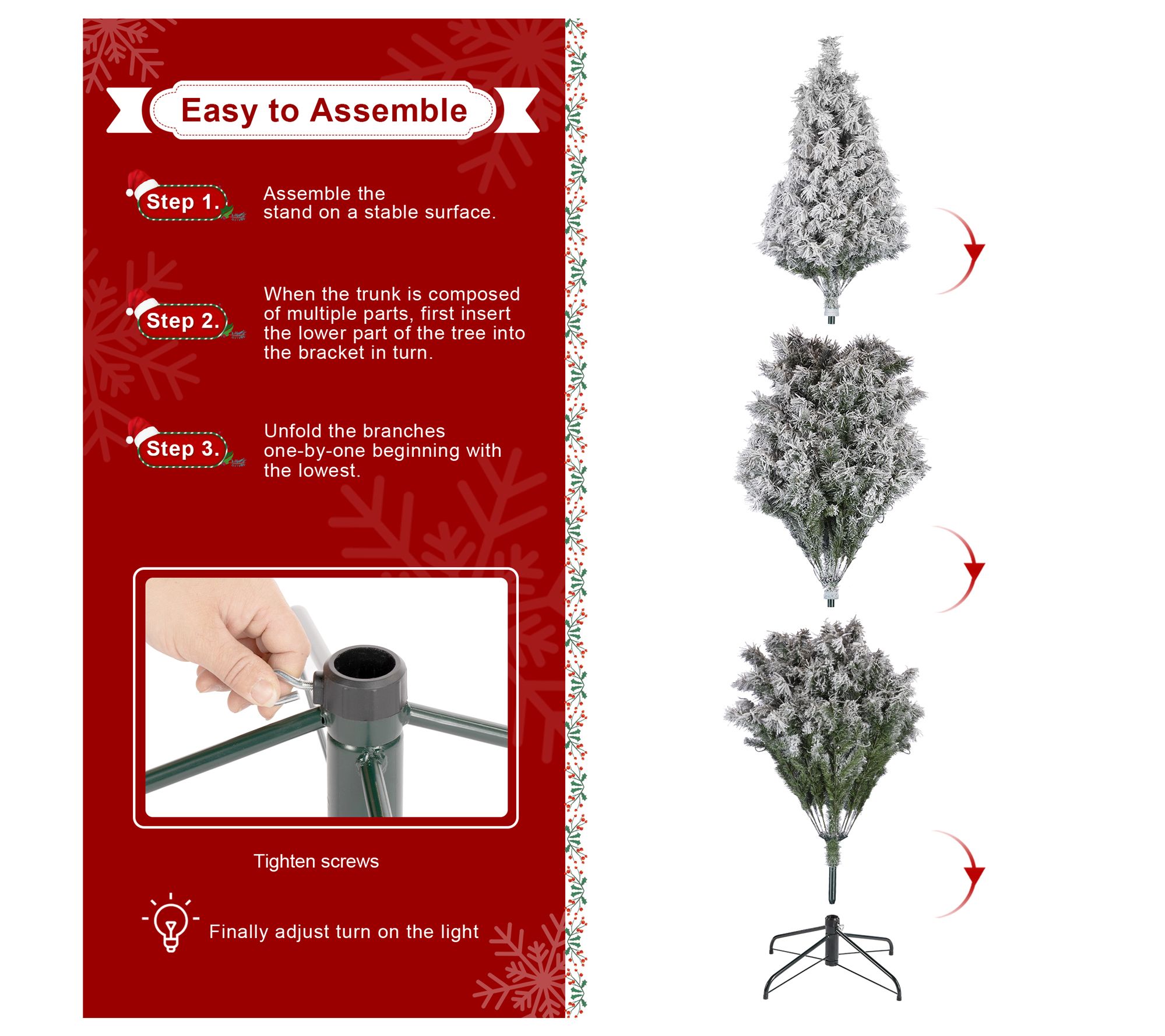 Transform your holiday home into a winter wonderland with this elegant spruce tree, pre-lit with warm white LED lights that twinkle like freshly fallen snow. Its flocked branches mimic nature's own frosty touch, making it a charming centerpiece for your festive celebrations. Designed for easy setup, this realistic tree invites a seamless blend of cozy decor and holiday spirit. Fluff out its branches, plug it in, and revel in effortless holiday magic. From Glitzhome.
