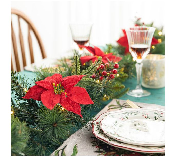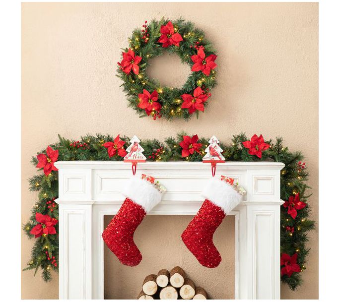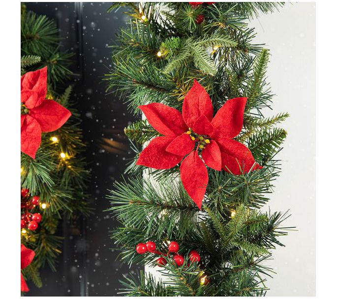 Light up your decor with the bright red poinsettias of these pre-lit garlands ready to decorate your mantelpiece or banister at holiday time. From Glitzhome.
