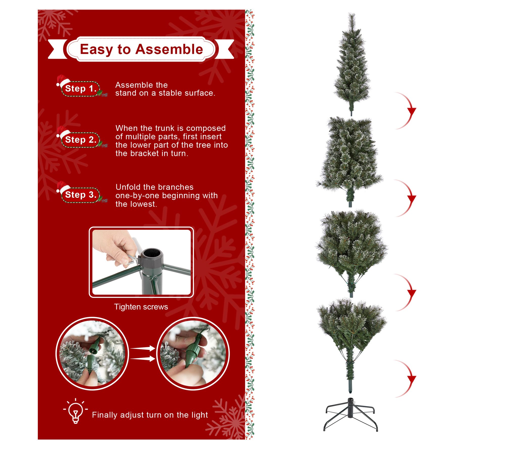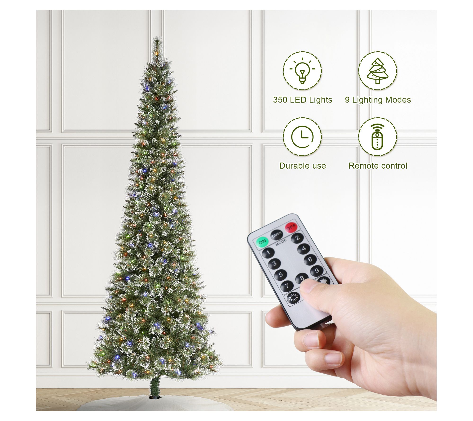 Transform your holiday decor with this stunning pencil Christmas tree that perfectly blends into both cozy nooks and expansive rooms. The frosted tips add a touch of wintry charm, while its warm glow invites festive warmth into your space. Setting up is a breeze with a sturdy metal stand ensuring the tree remains upright all season long. Control its dazzling light modes with ease, creating a magical ambiance that lights up your celebrations with joy and wonder. From Glitzhome.