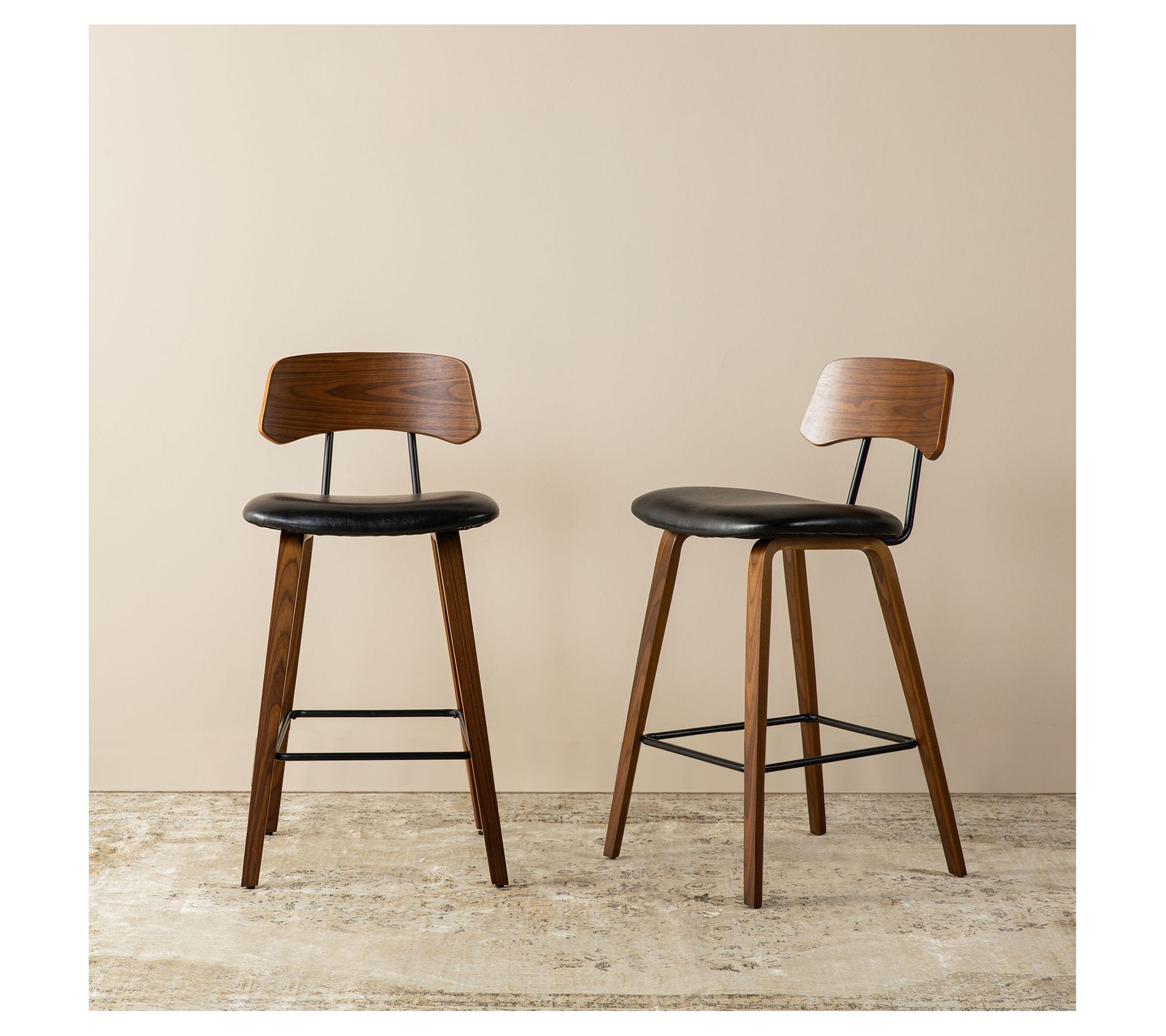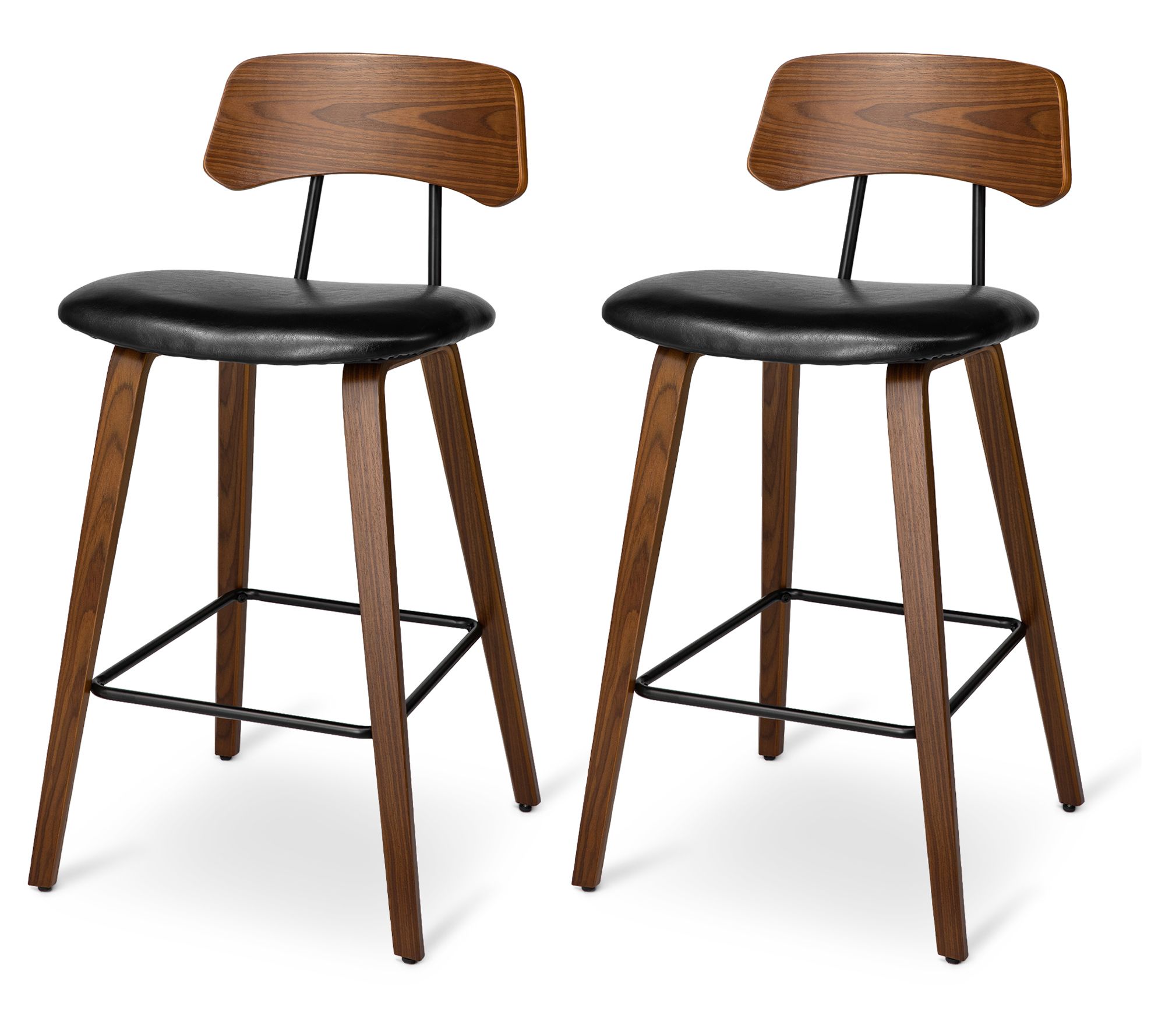 Elevate your kitchen or home bar with Glitzhome Bar Stools. These mid-century modern wooden stools, with walnut bentwood frames and PU leather seats, merge contemporary style with comfort. Enjoy the ergonomically designed curved backrest and padded seat for hours of relaxed sitting. From Glitzhome.