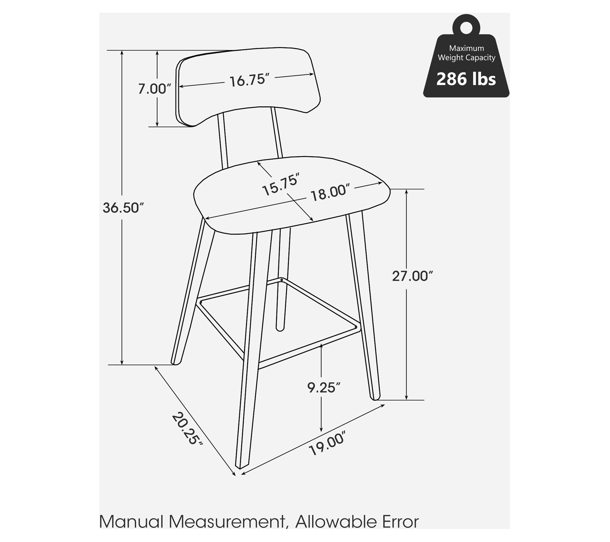 • Measures approximately 19"L x 20.25"W x 36.5"H; supports up to 286 lbs