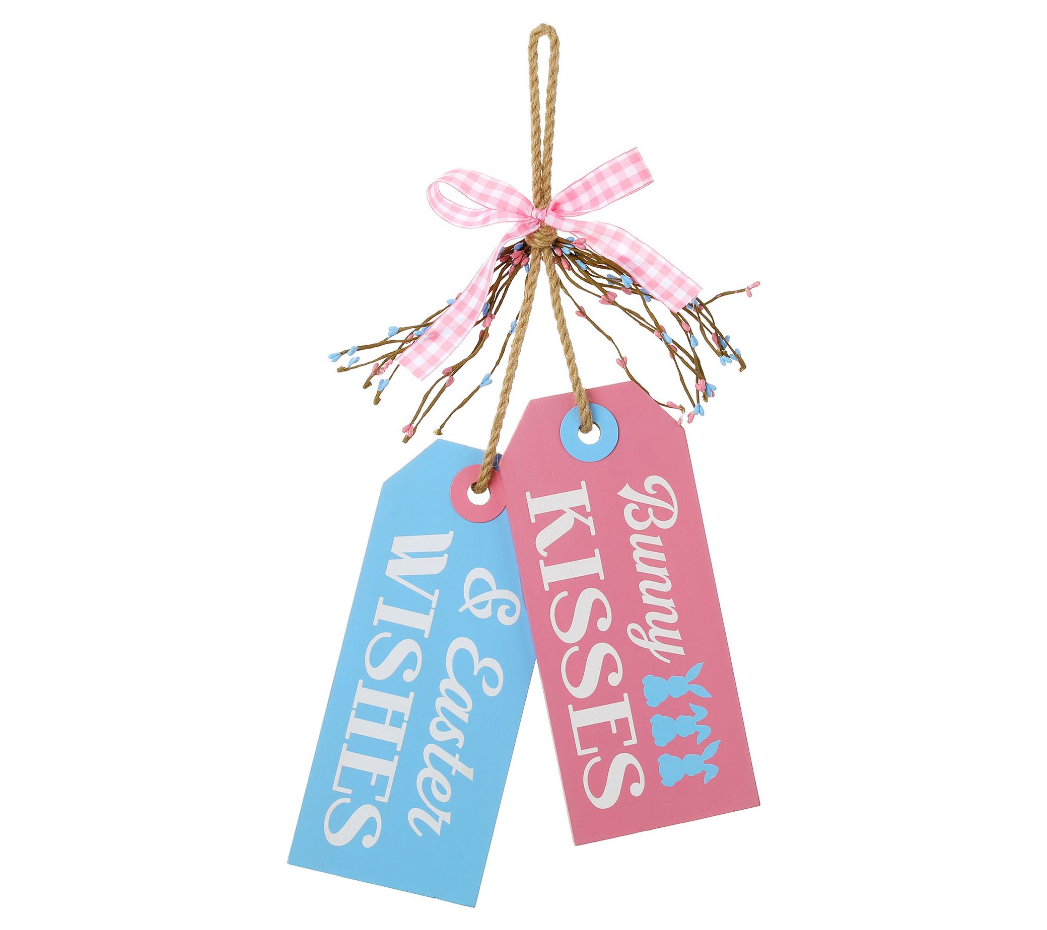 Adorn your doorknobs with bunny kisses and Easter wishes when you hang this sweet decoration, showcasing pretty pastel tags with a plaid bow. From Glitzhome.