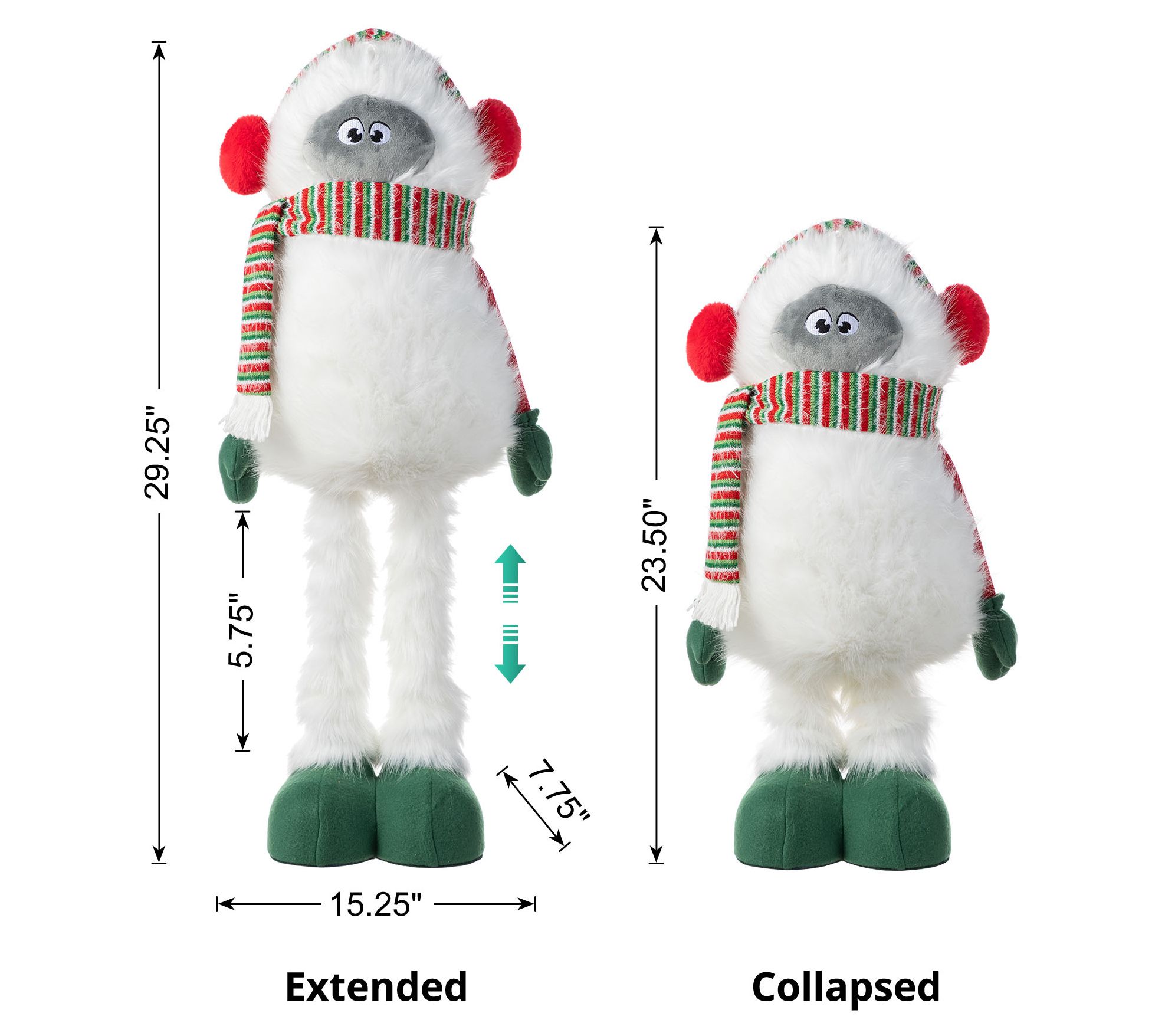 This playful Christmas Fabric Yeti brings a whimsical touch to your seasonal displays, delighting guests with its friendly face, soft white body, and colorful striped scarf. Adjustable telescoping legs let you customize its height, so it fits seamlessly on a mantel, next to the tree, or in your favorite festive vignette. From Glitzhome.