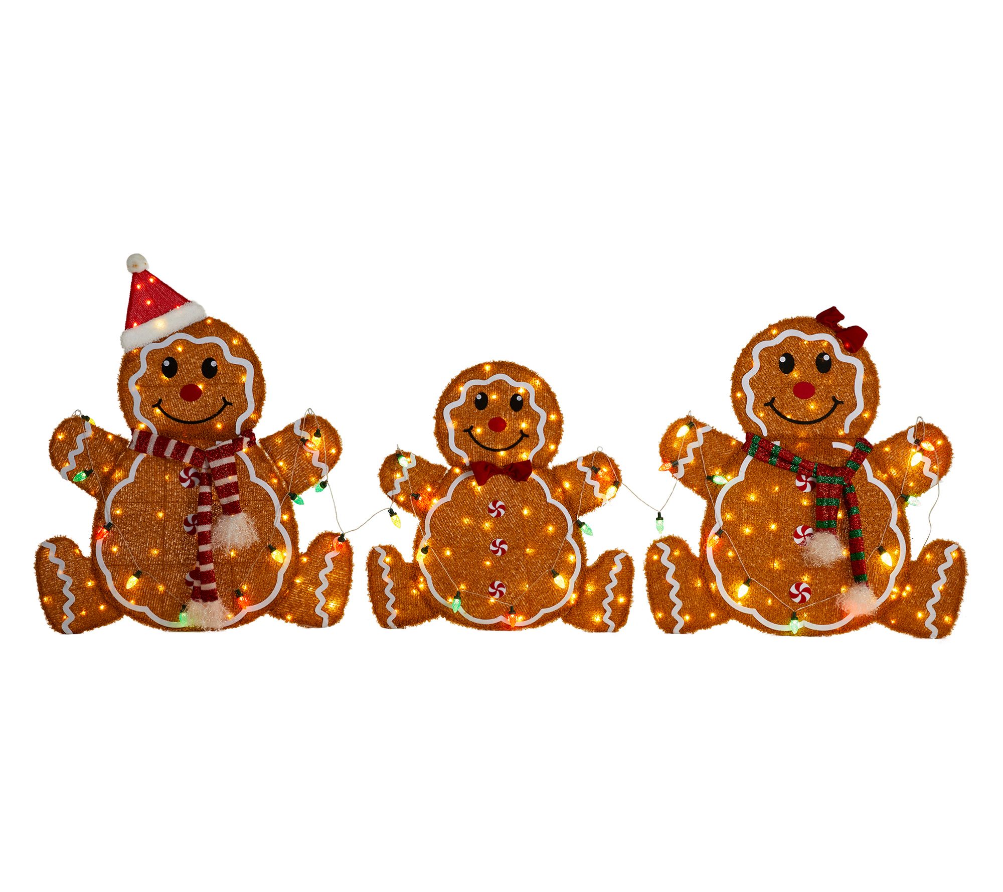 Create a festive wonderland right in your own outdoor space with this charming gingerbread family display. Each member is illuminated by warm white LED lights, helping to spread holiday cheer from your lawn or porch. These delightful decorations capture the spirit of the season with their holiday attire and strawberry lights, making them a joyous addition to your winter landscape. Effortless to set up and store, they ensure your home glows with merry magic. From Glitzhome.