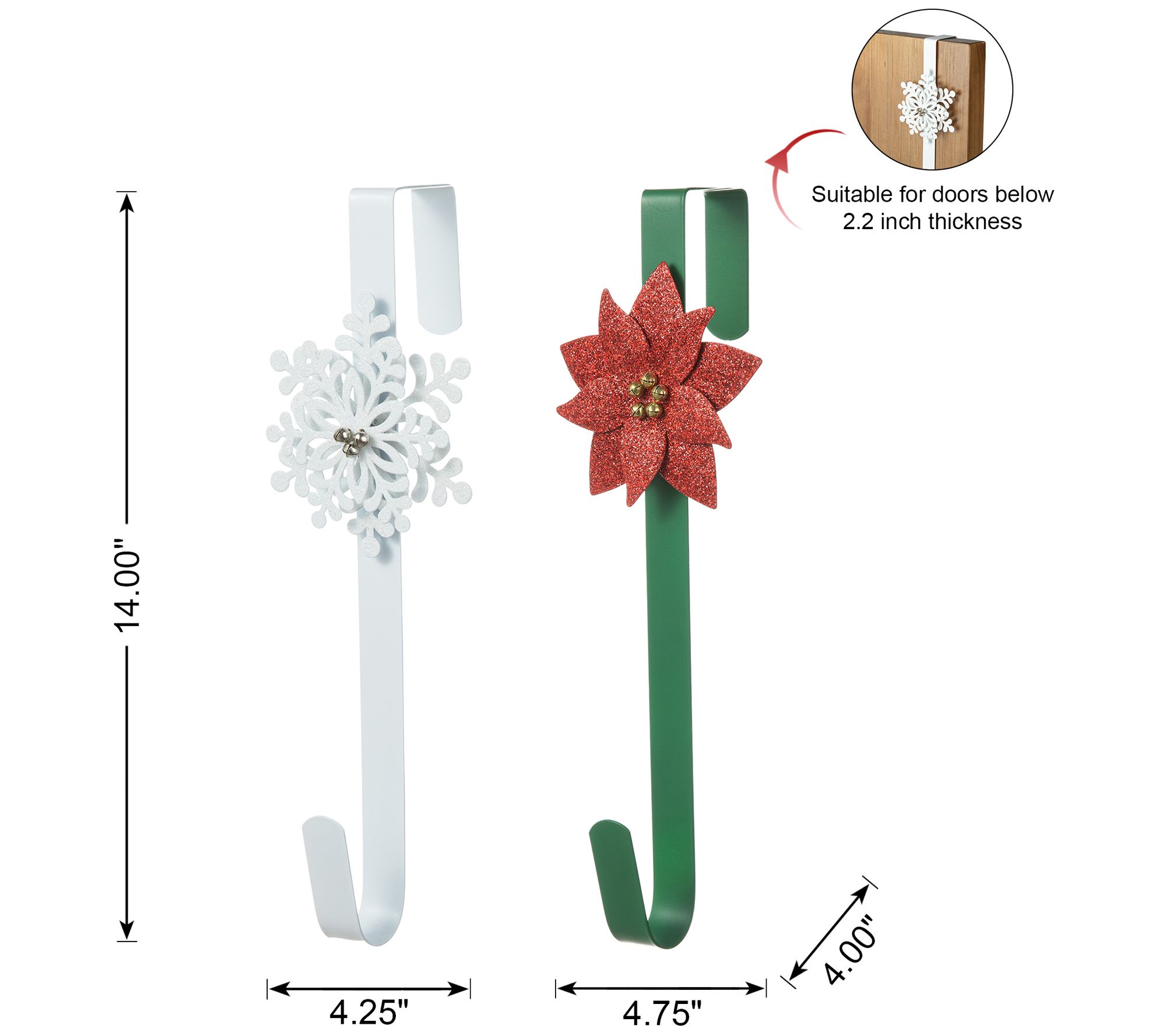 Make holiday decorating so much easier with this set ot two wreath hangers. The delicate snowflake and poinsettia designs bring festive elegance to any interior or exterior door, creating a captivating display perfect for celebrating special occasions. From Glitzhome.