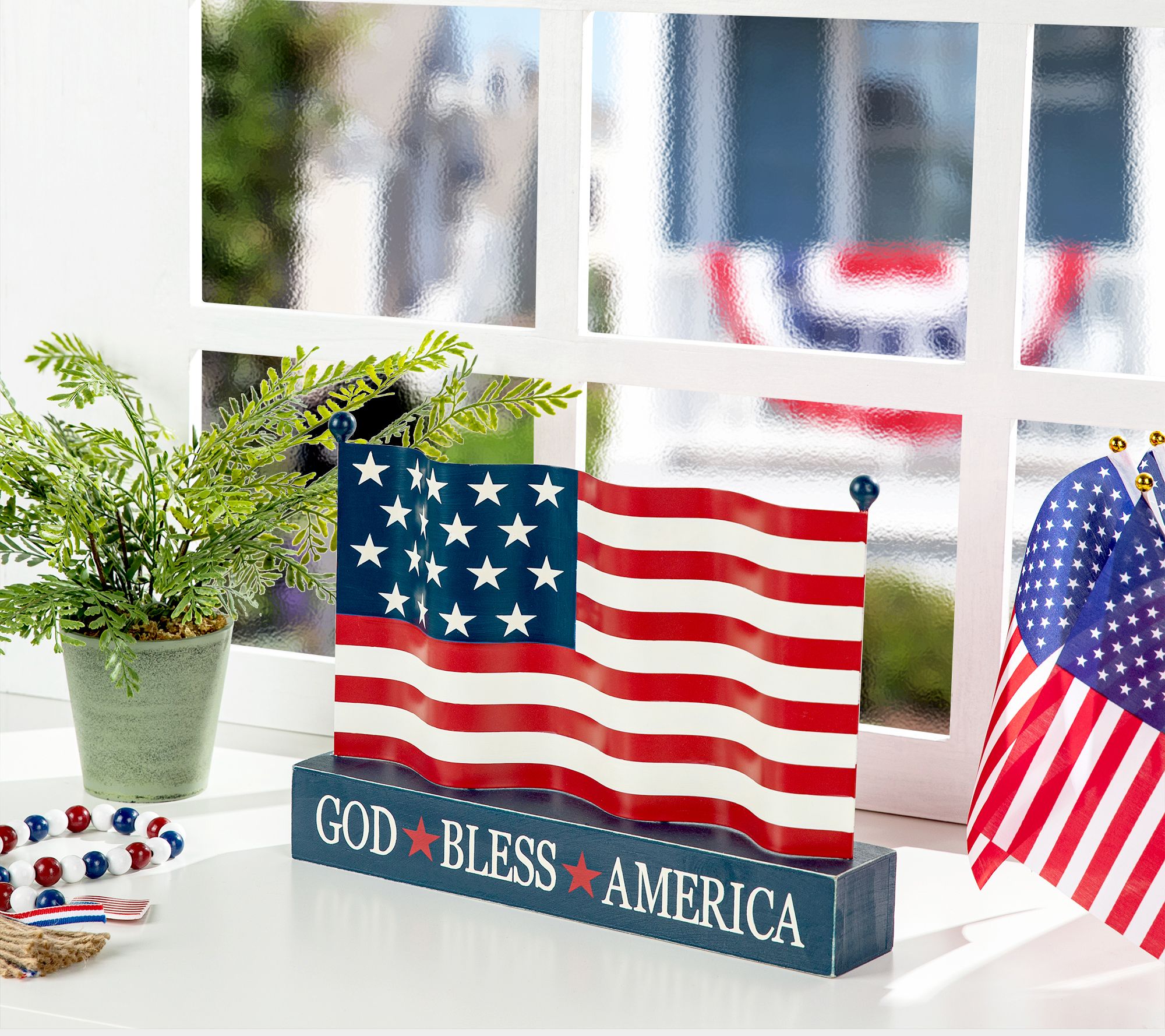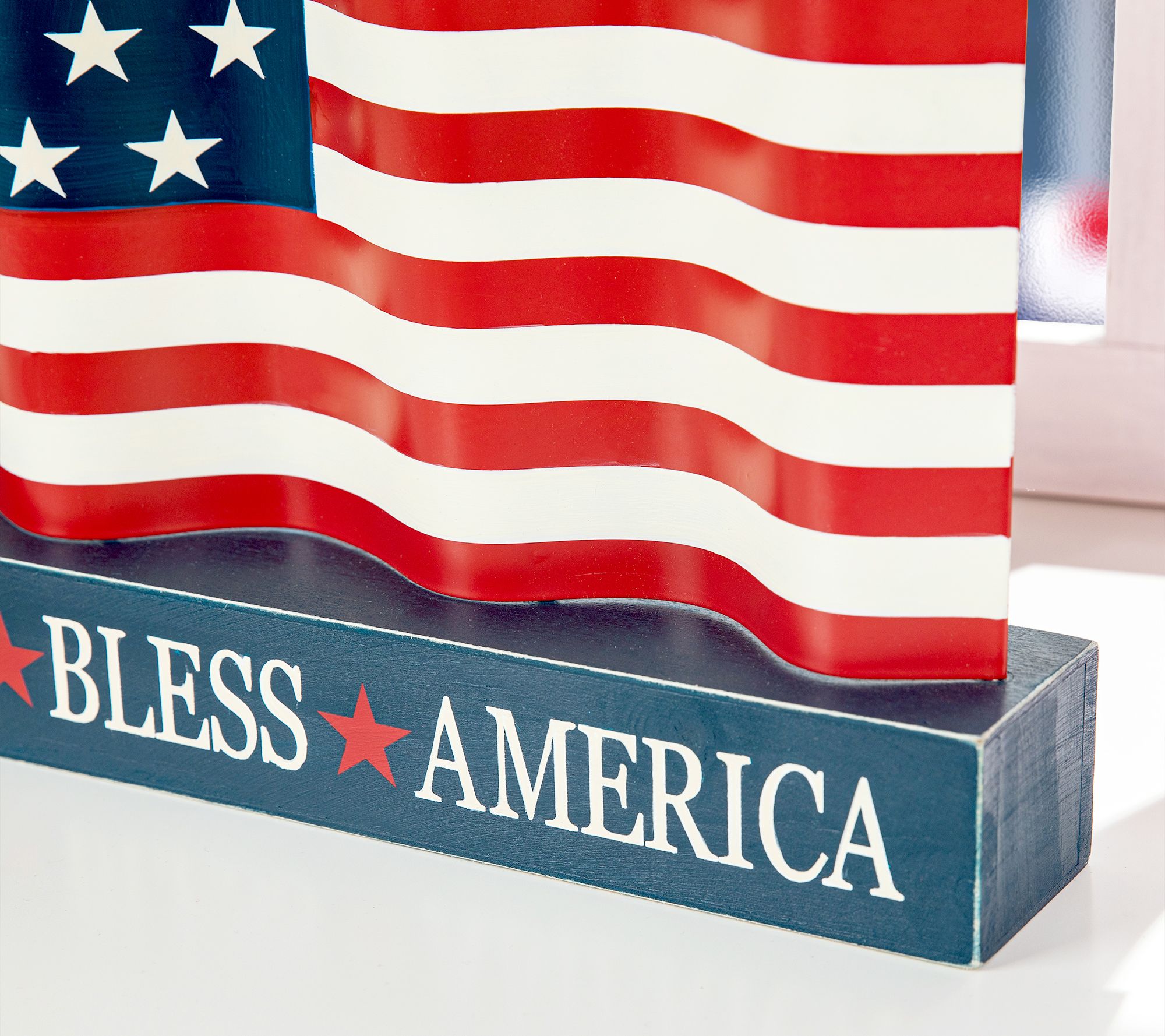 Glitzhome GOD BLESS AMERICA Patriotic flag Wooden Table Decor