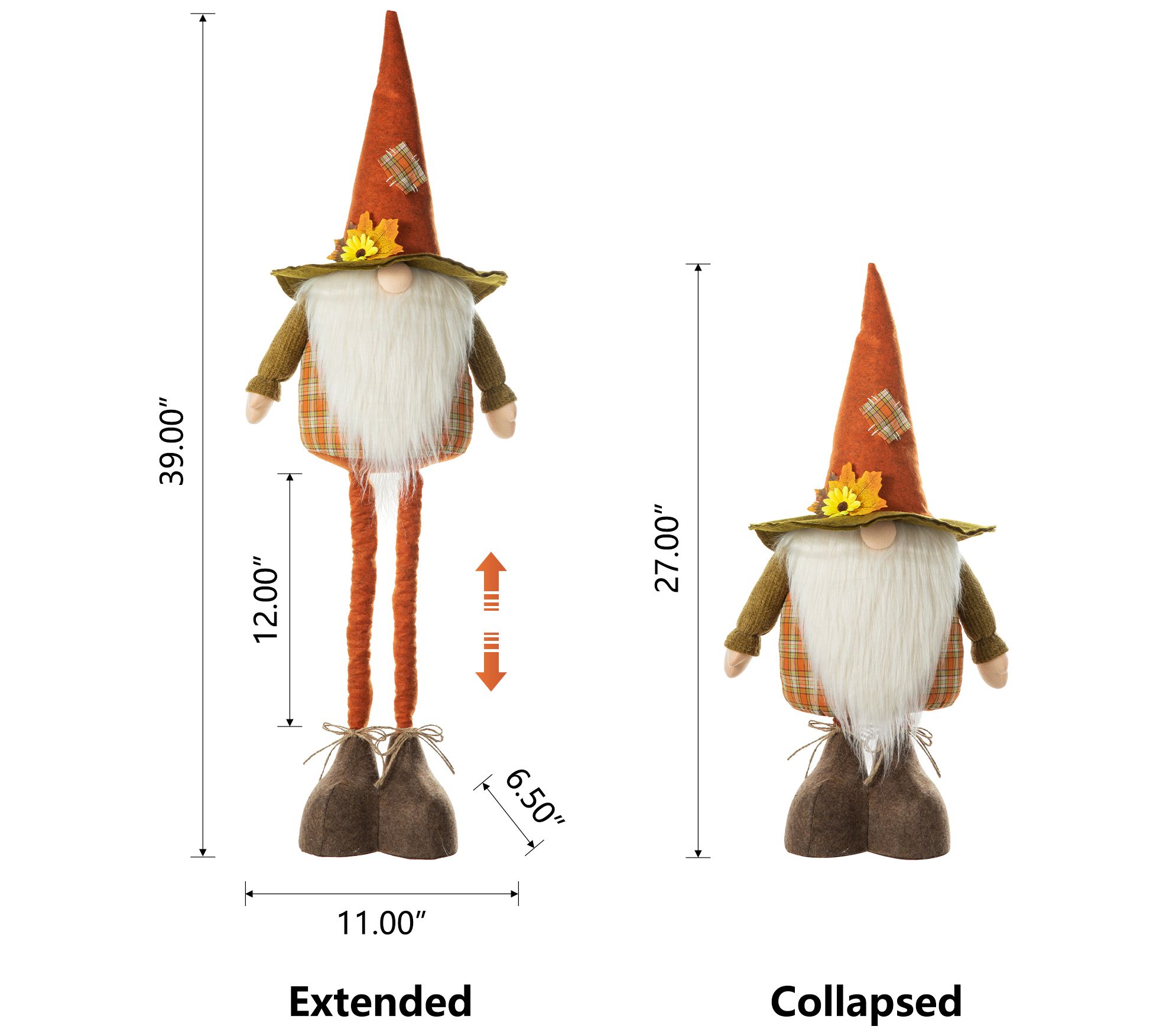 Glitzhome Gusto The Telescoping Fabric Fall Autumn Gnome