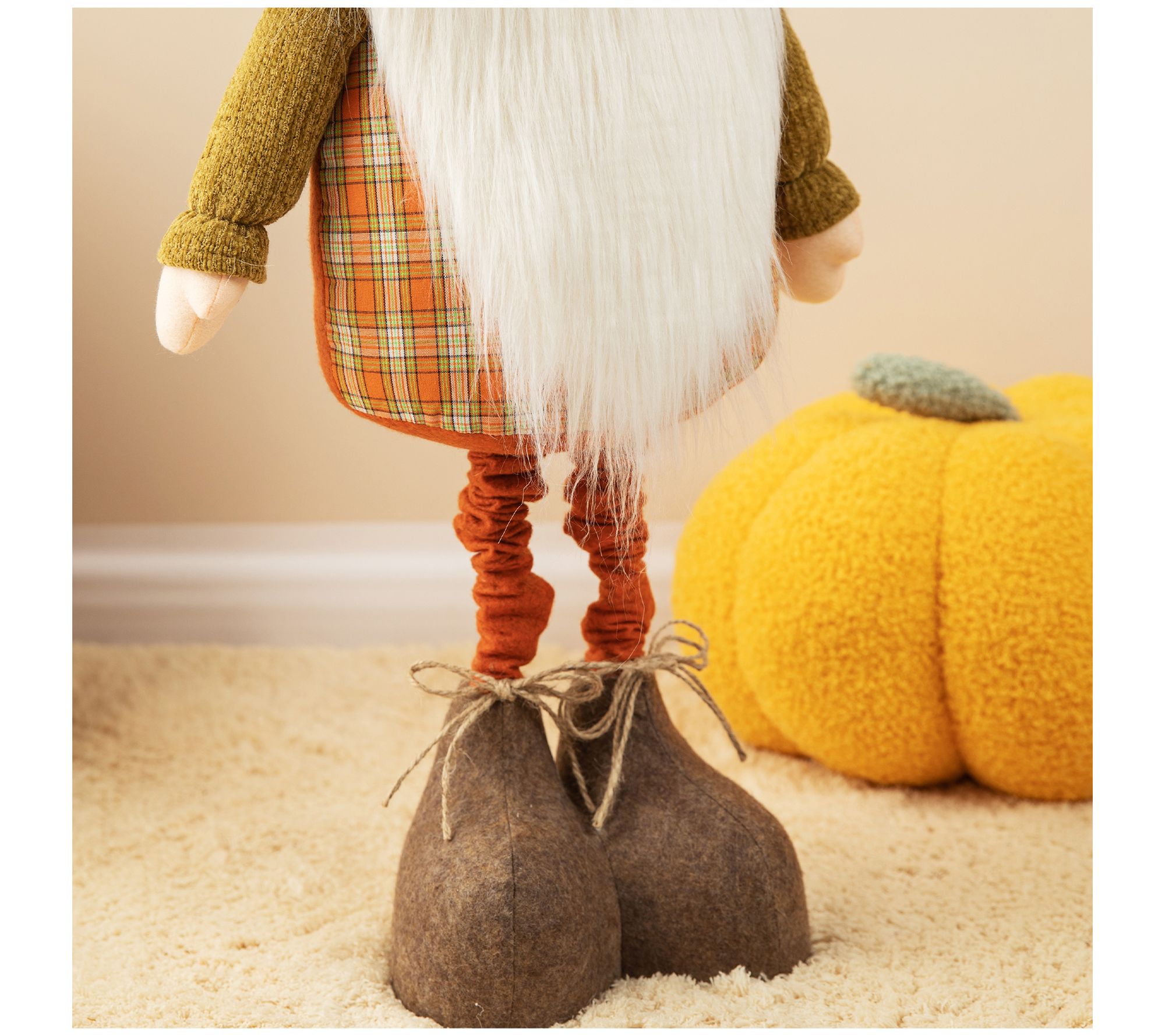 With telescoping legs, you decide if Gusto the gnome is having a short or tall autumn day. He can stand on a table or floor to help you ring in the autumn season. Plus, his soft fabric body, long white beard, and cute nose make him an unforgettable charmer. From Glitzhome.