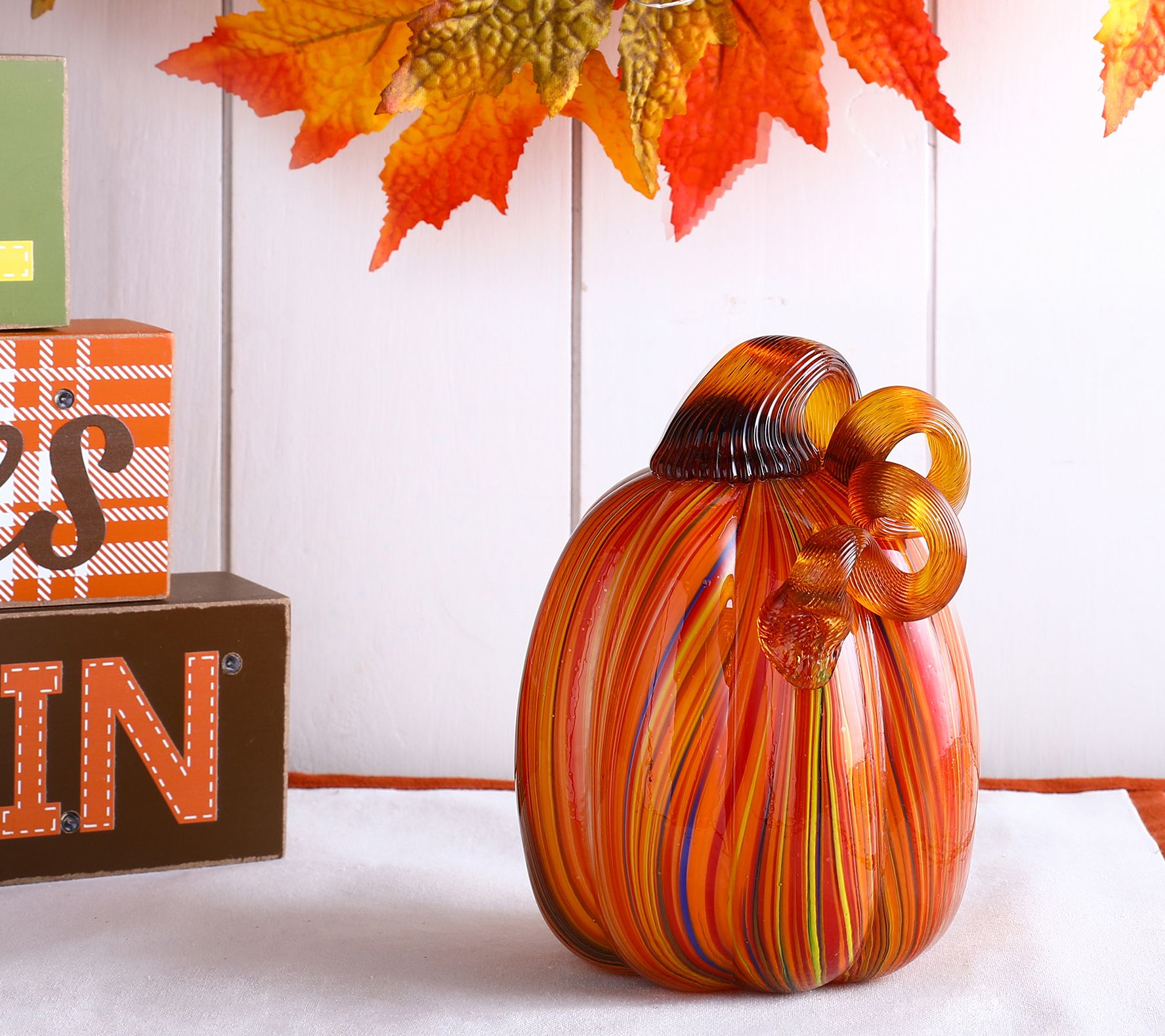 Featuring a swirl of harvest colors, this glass Halloween pumpkin instantly adds a touch of elegance to your fall-inspired decor. From Glitzhome.