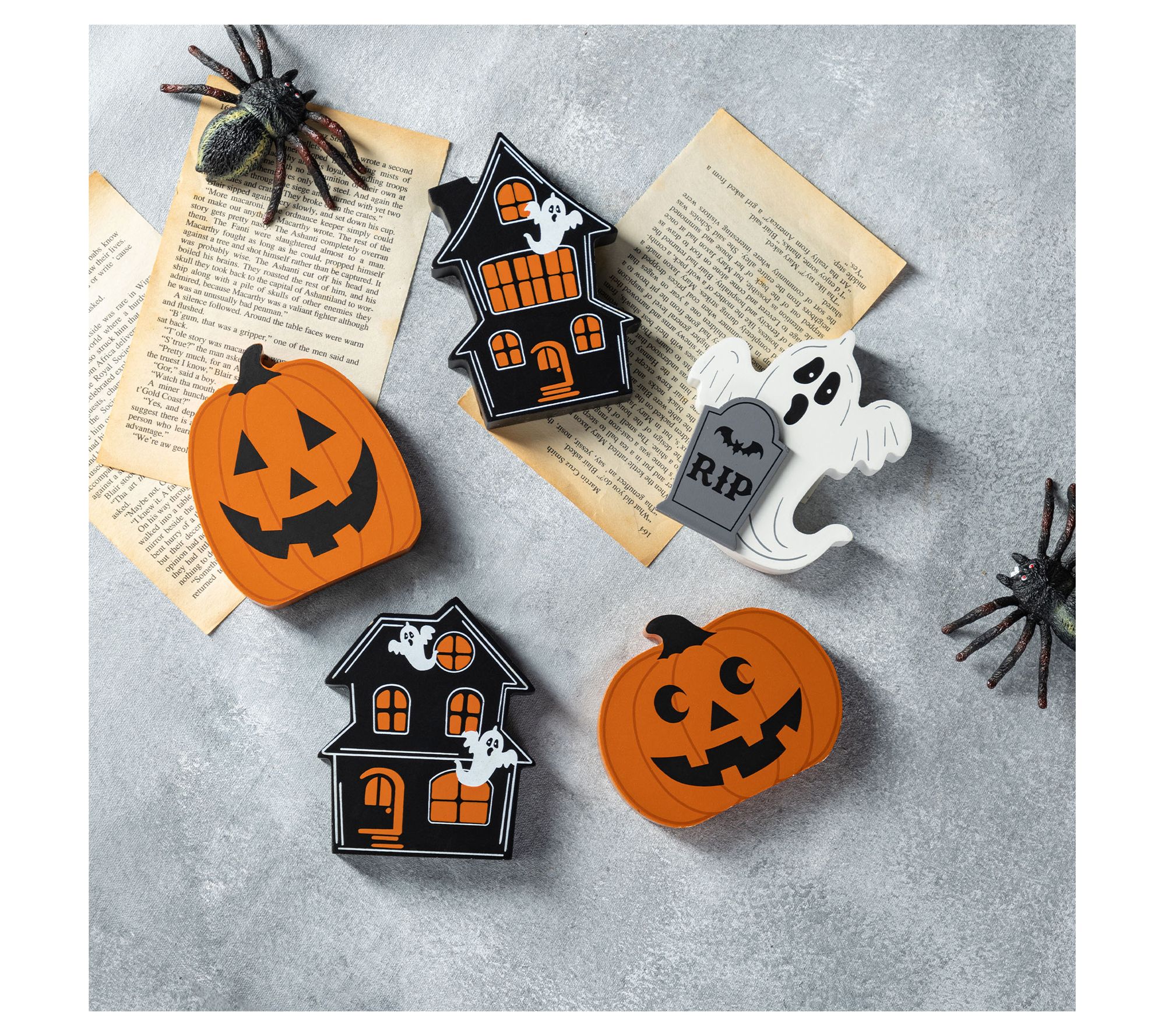 Dressing up your space for Halloween becomes effortless with this festive collection of table blocks. Whether displayed together as a playful centerpiece or scattered around shelves and mantels, each piece brings a bit of whimsy and color to your seasonal decor. Ghosts, jack o'lanterns, and haunted houses make every corner feel ready for seasonal celebrations. From Glitzhome.
