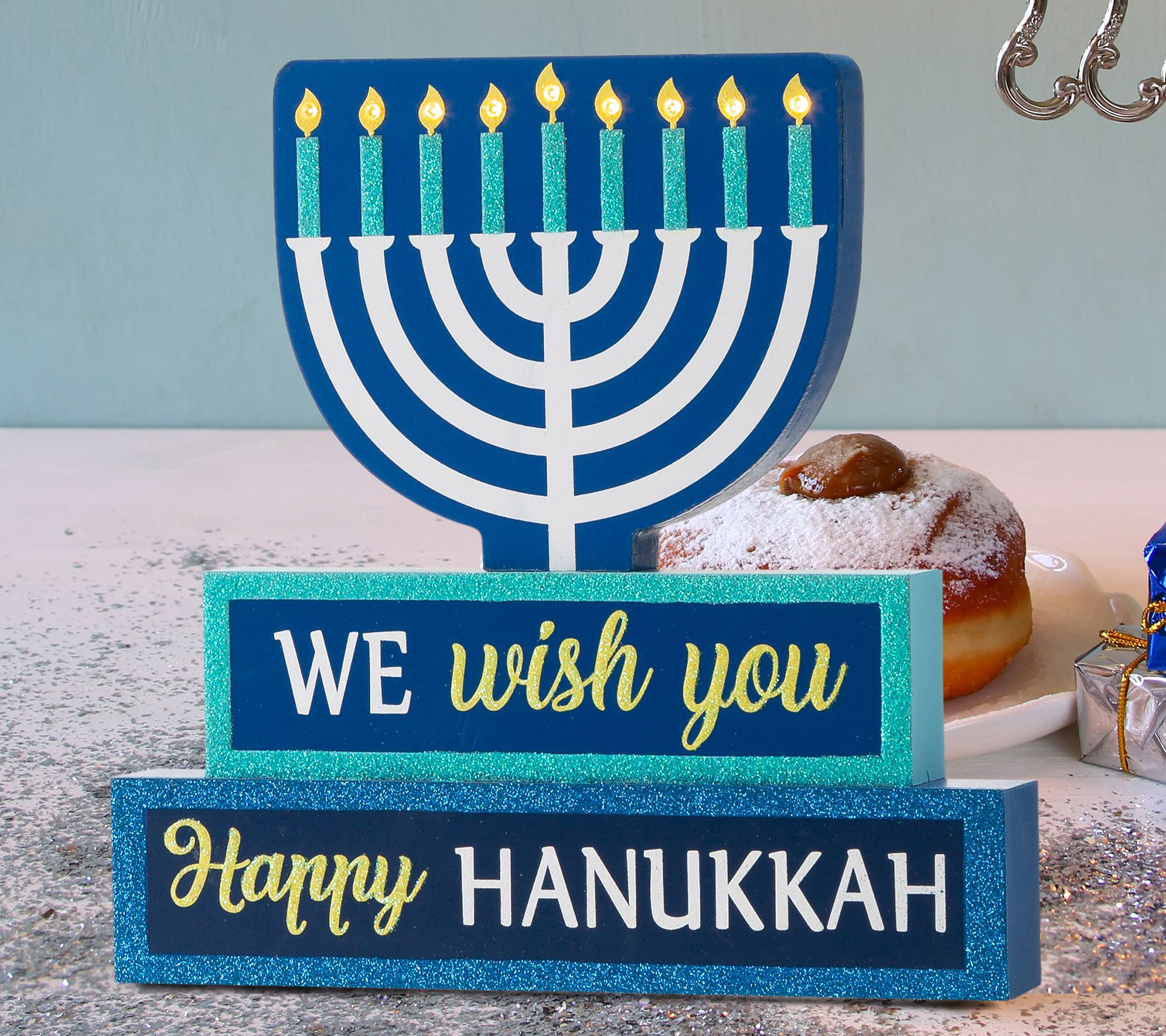 Celebrate the season of wonder with this charming Happy Hanukkah LED block sign. From Glitzhome.