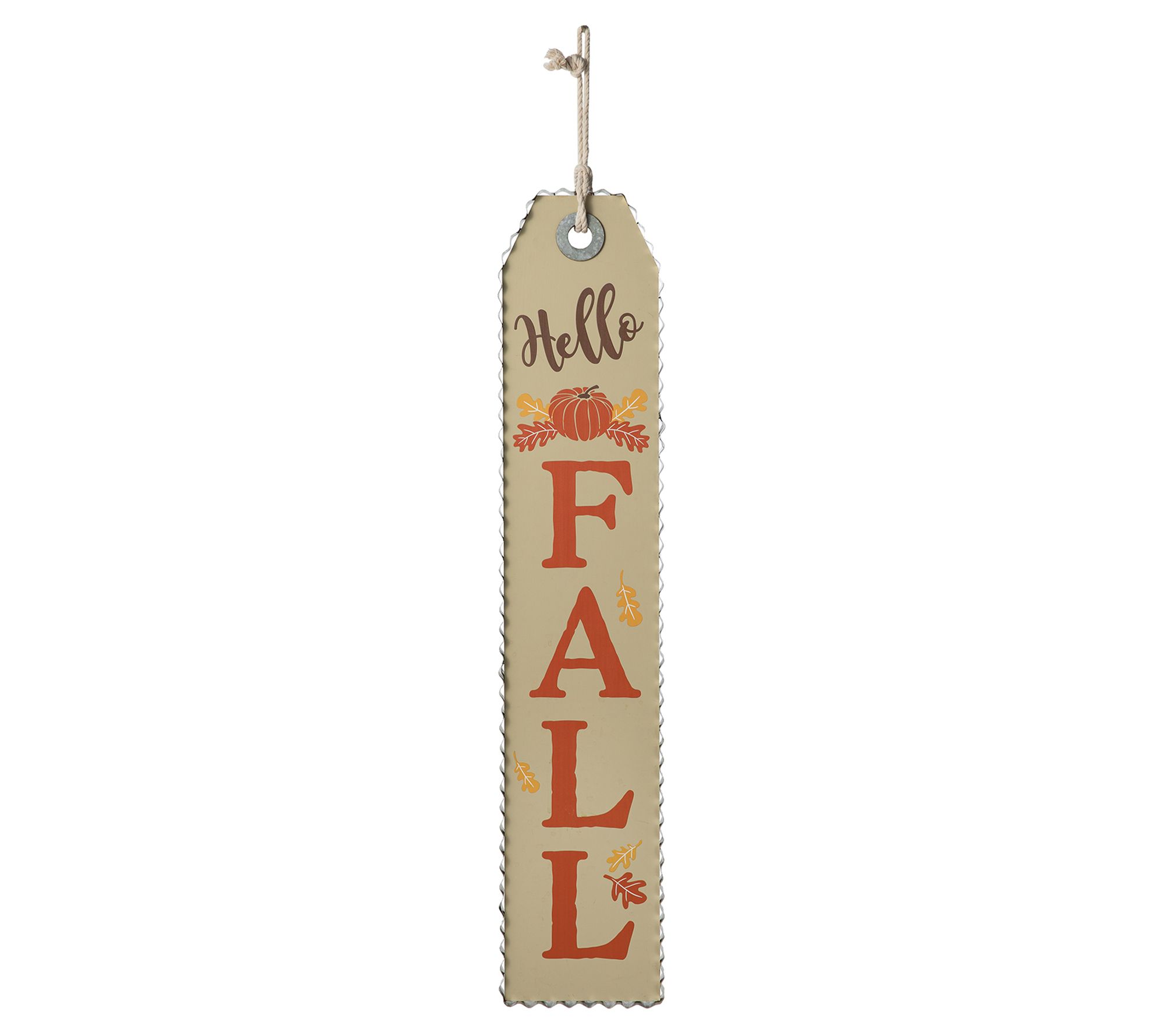 A charming way to greet friends and family, this reversible porch sign features cozy fall colors, autumn images, and fun messages for all who enter. From Glitzhome.