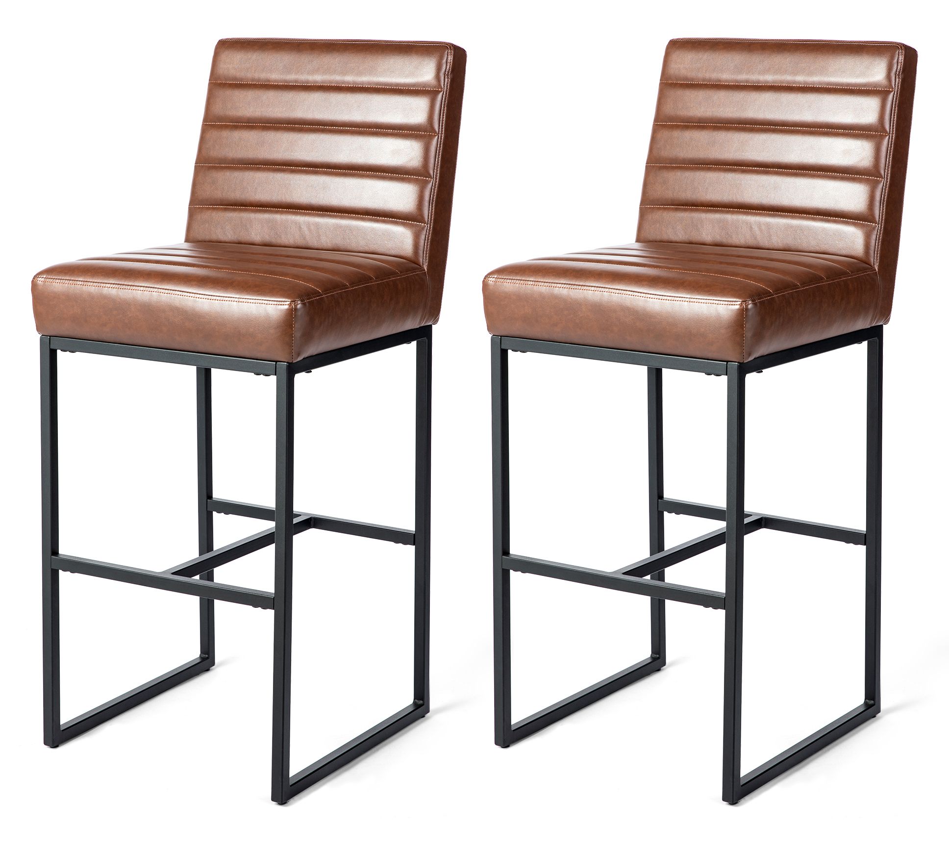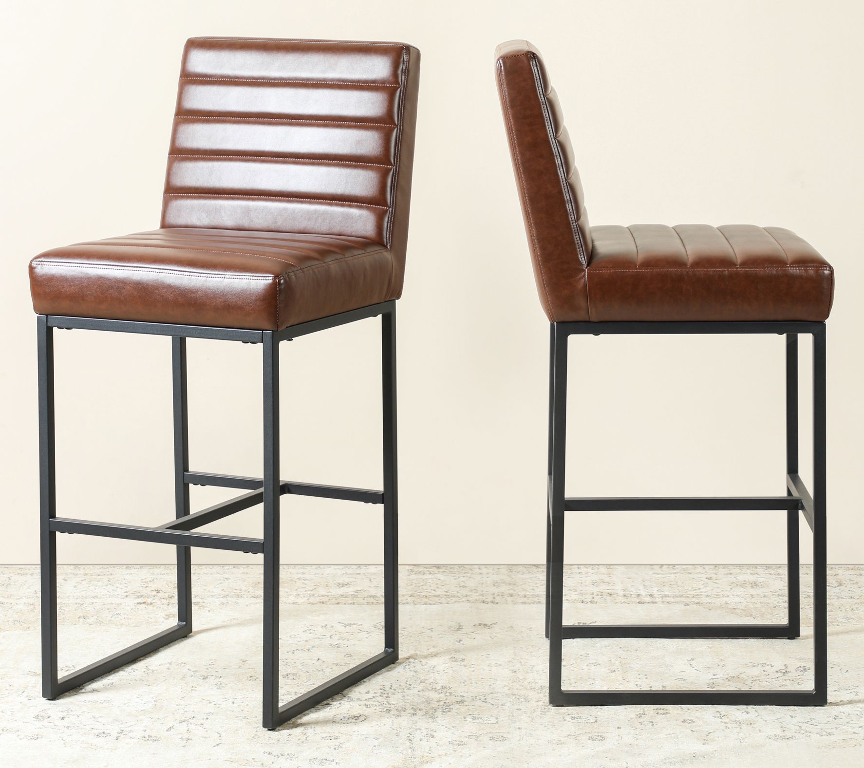 Glitzhome Industrial Modern Quilted LeatheretteBar Stools S/2