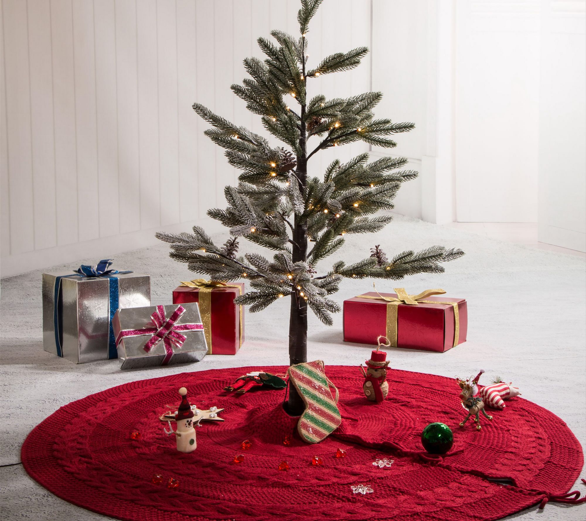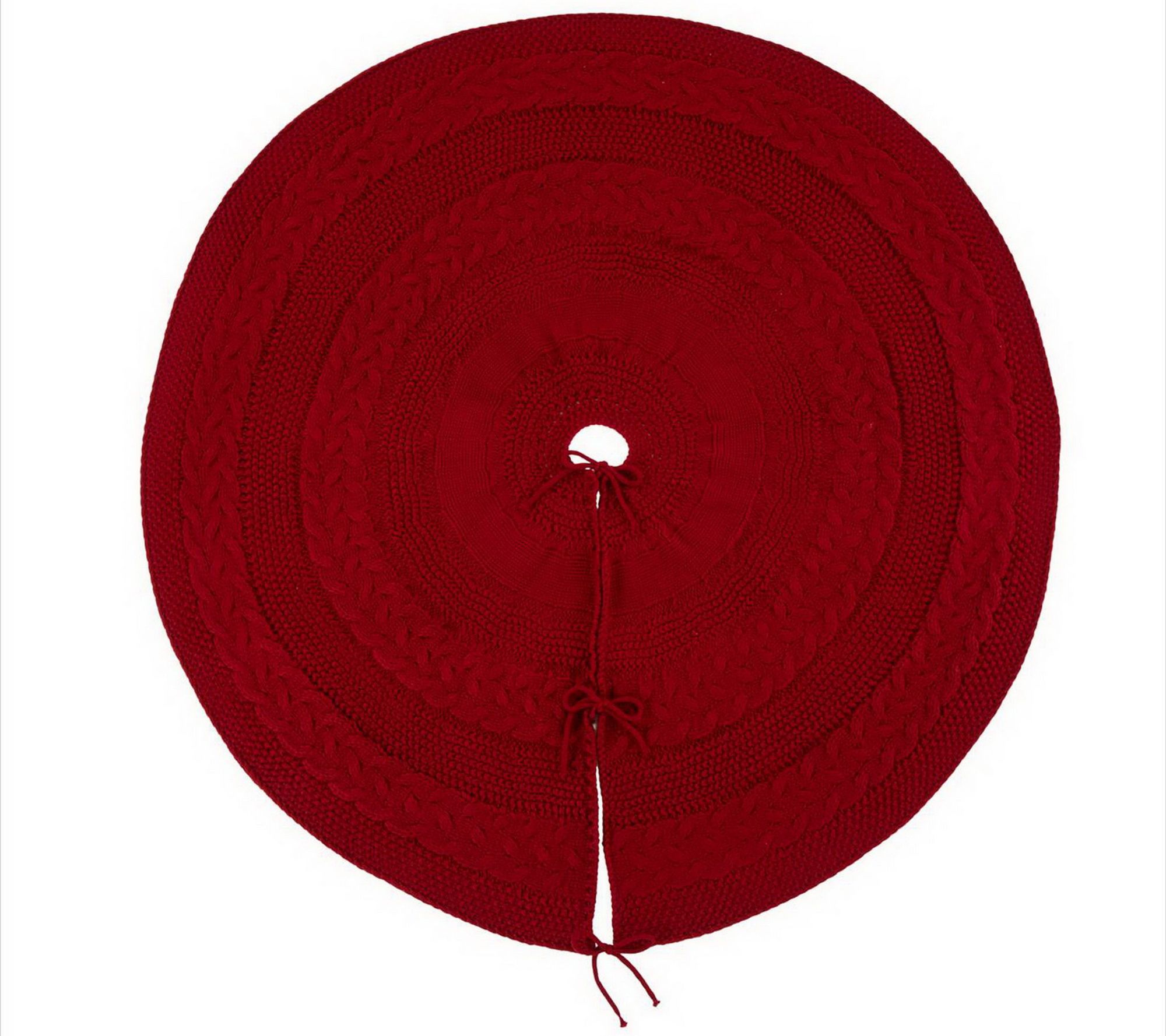 Frame your festive focal point and provide a soft landing for fallen ornaments and tucked-under-the-tree presents with this knit tree skirt. From Glitzhome.