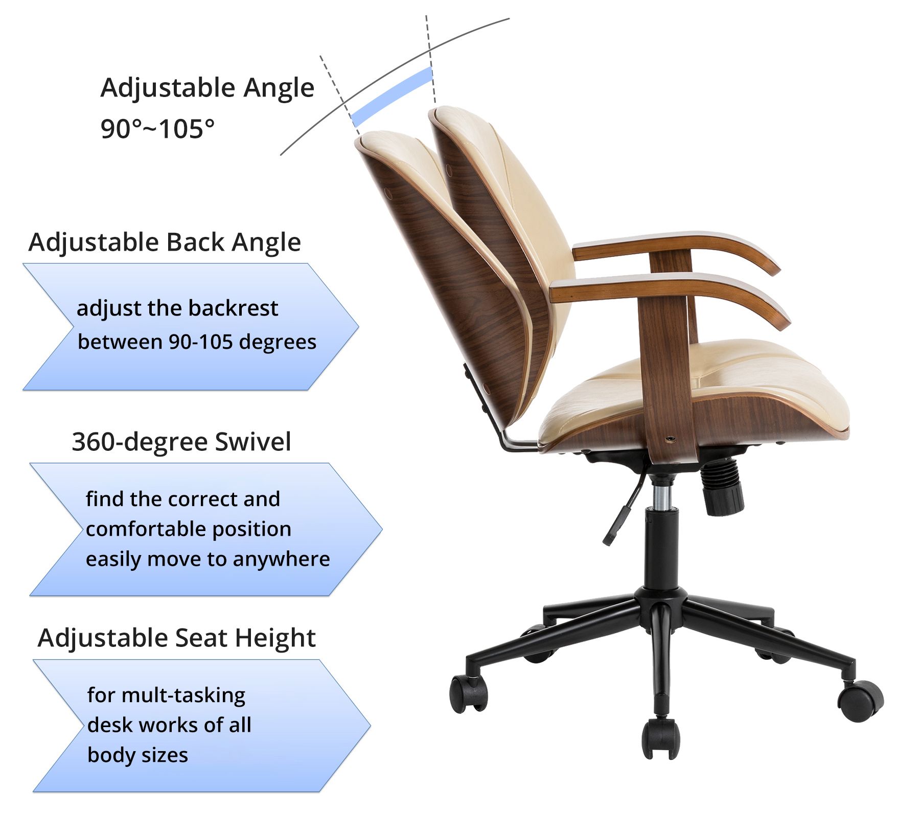 Glitzhome Leatherette Adjustable Height and Swivel Desk Chair
