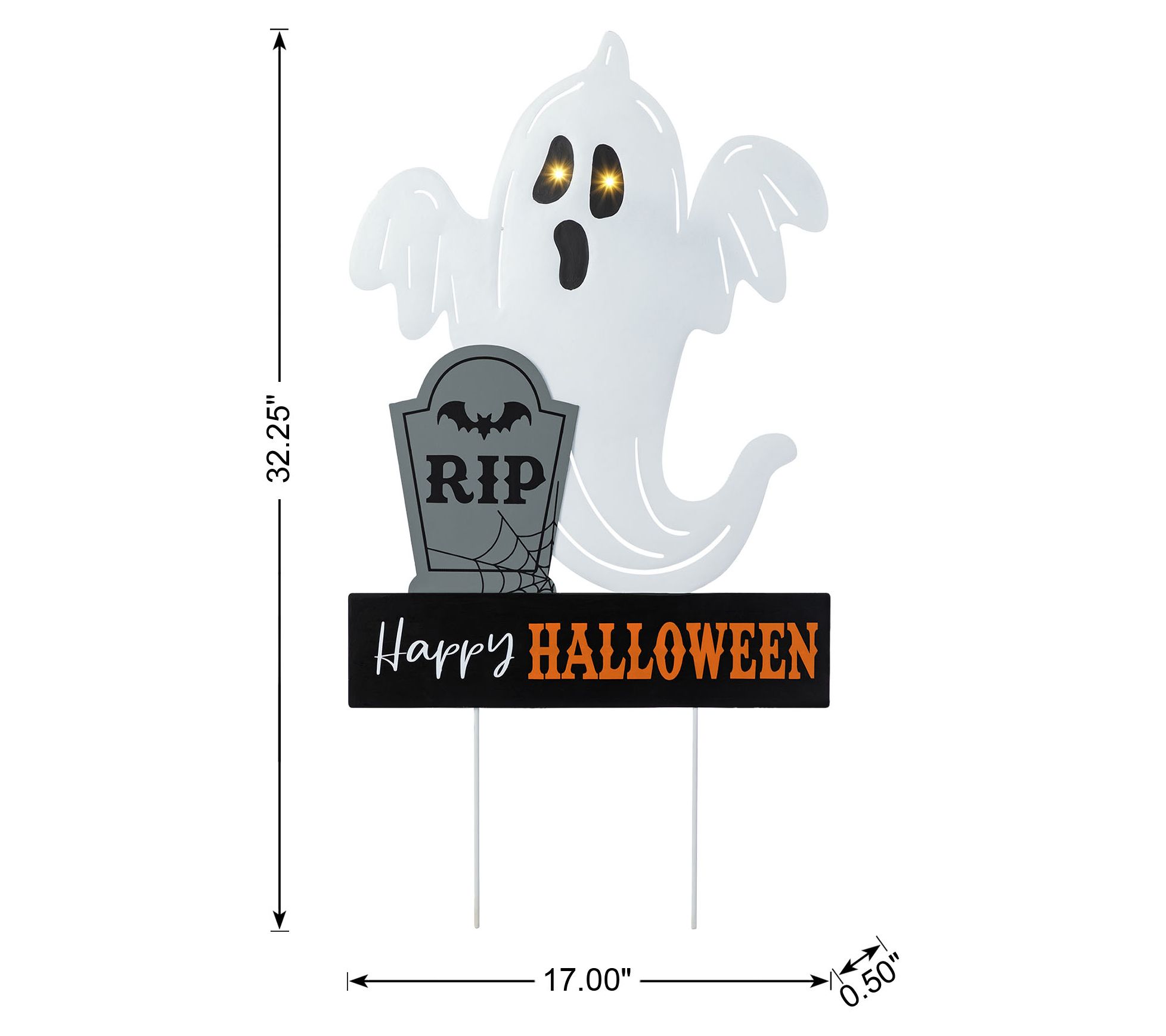 Trick-or-treaters will be drawn in by the friendly grin and glowing eyes of this ghostly garden stake, whether it's greeting guests by your walkway or adding flair to your entryway wall. Warm white lights create a welcoming glow, while the tombstone marked with 'RIP' plays up the festive Halloween spirit. Easy assembly means you'll have your haunted scene ready in no time. From Glitzhome.