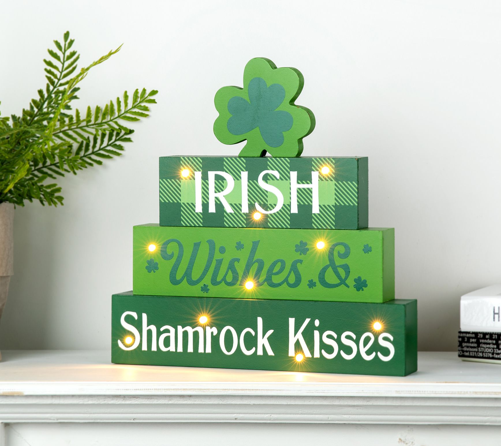 Invite the luck of the Irish into your home with this adorable St. Patrick's Day Stack o'Blocks table decor. From Glitzhome.