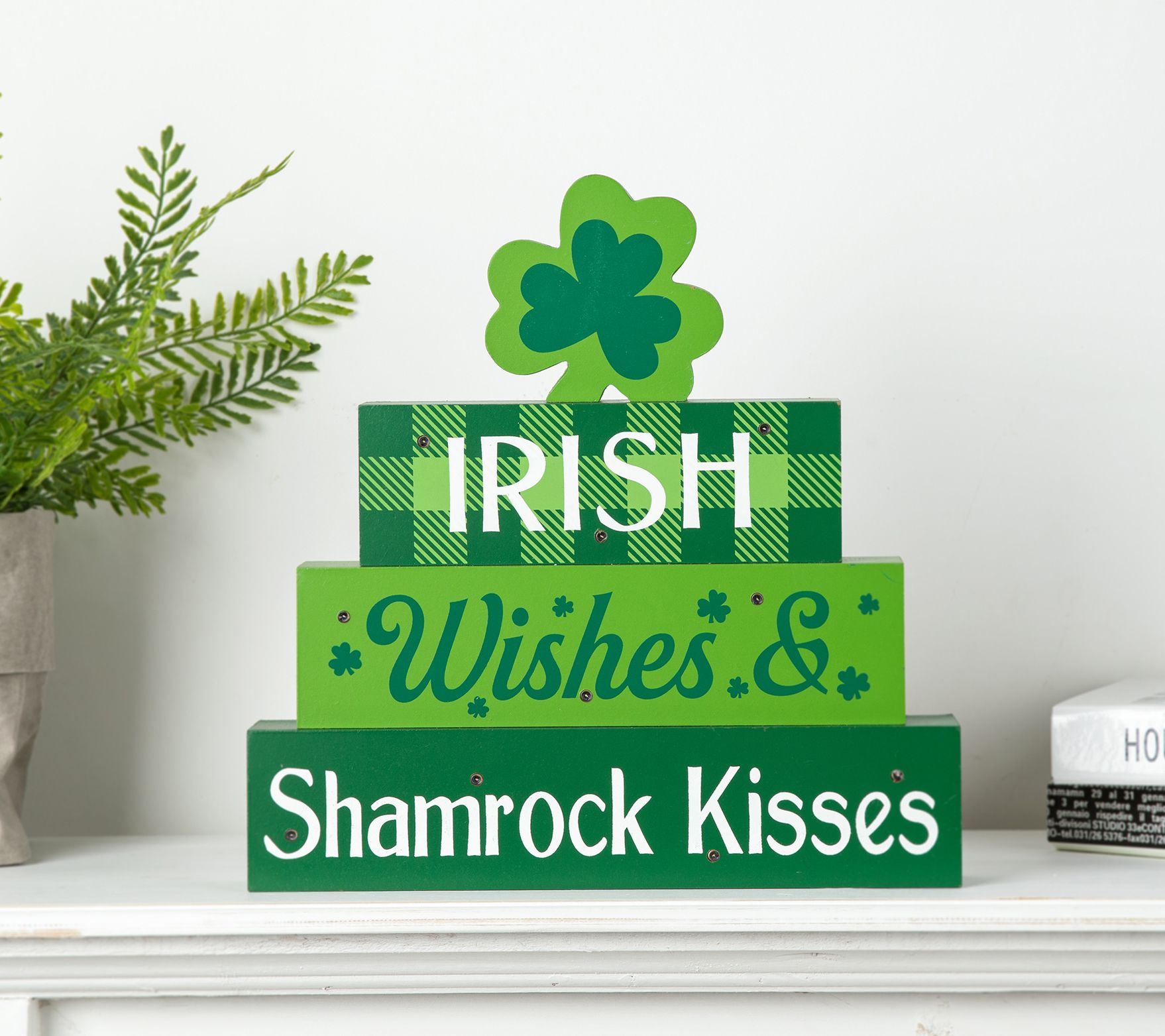 Glitzhome LED Lighted St. Patricks Stack o' Bloks Table Decor