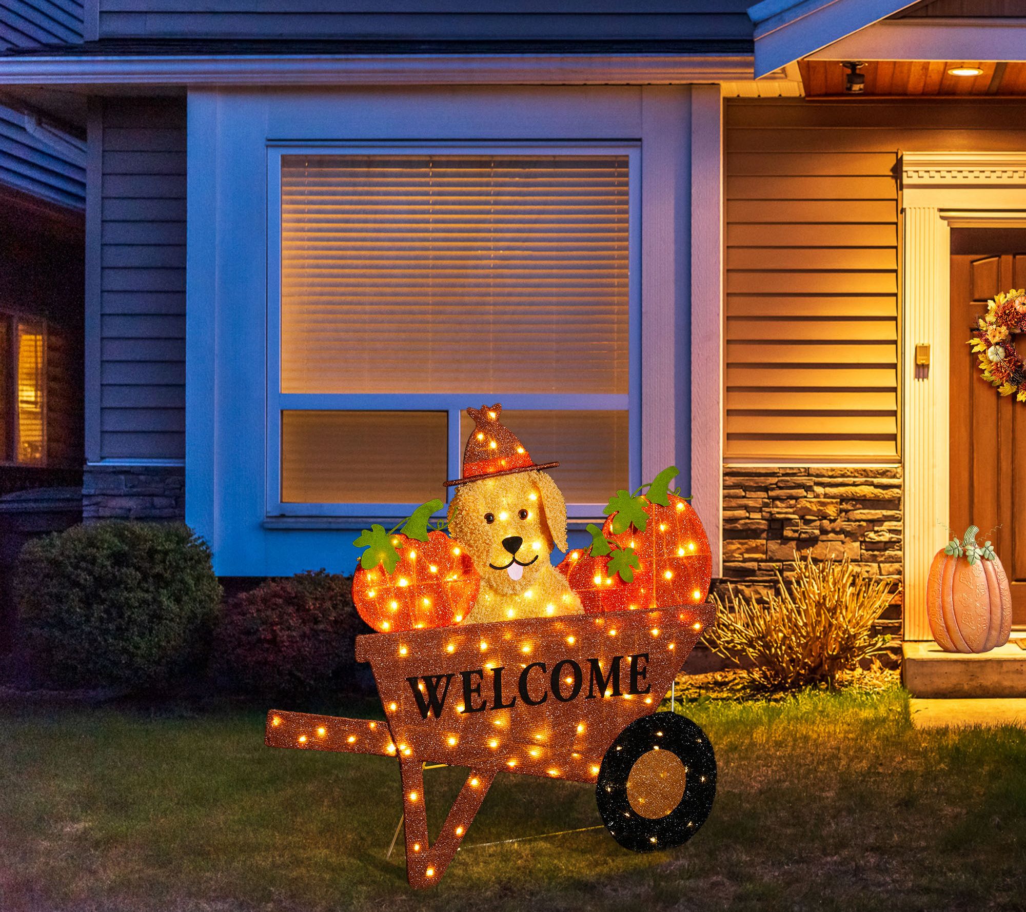 Glitzhome Lighted Fall Pumpkin Barrow LabradorOutdoor Decor