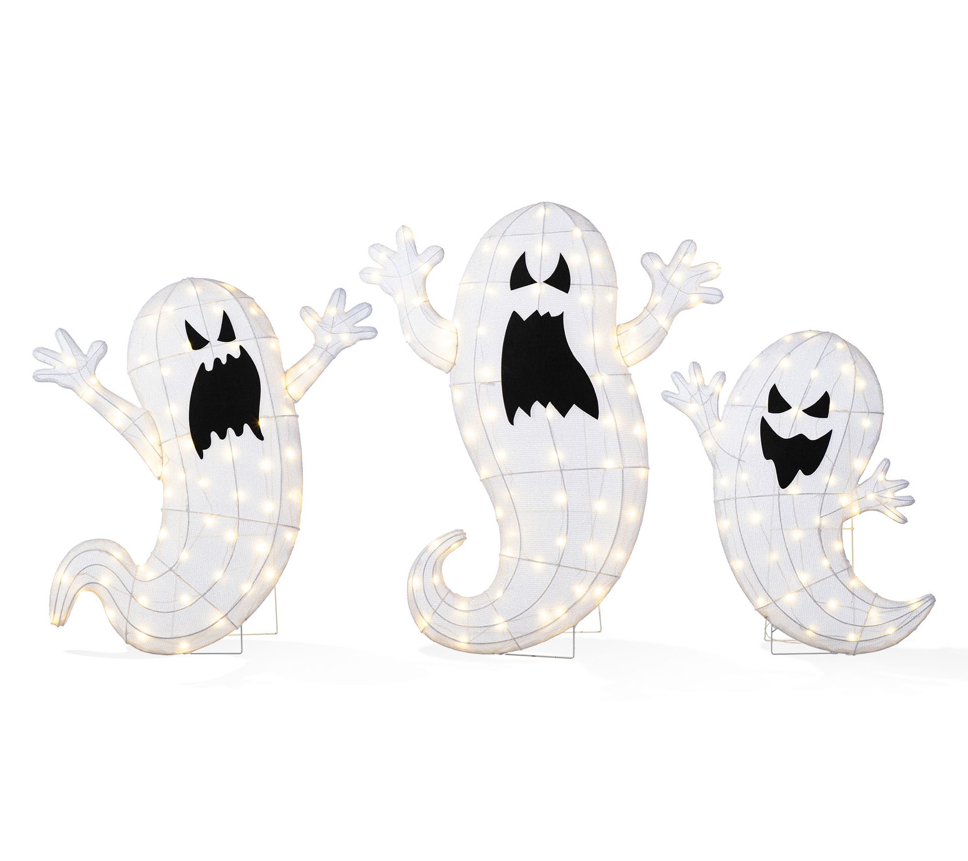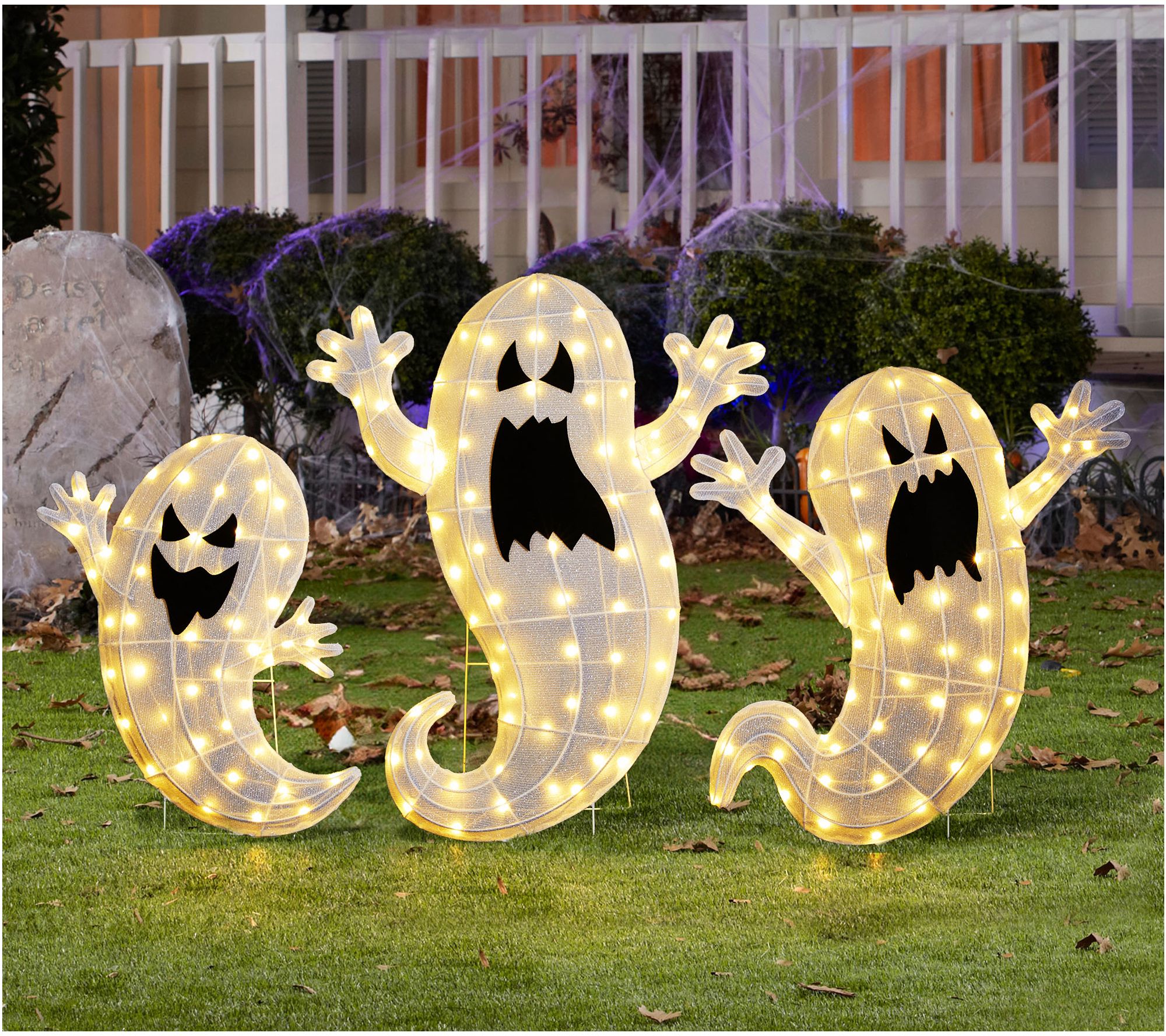 Glitzhome Lighted Halloween Ghosts Family Outdoor Decor S/3