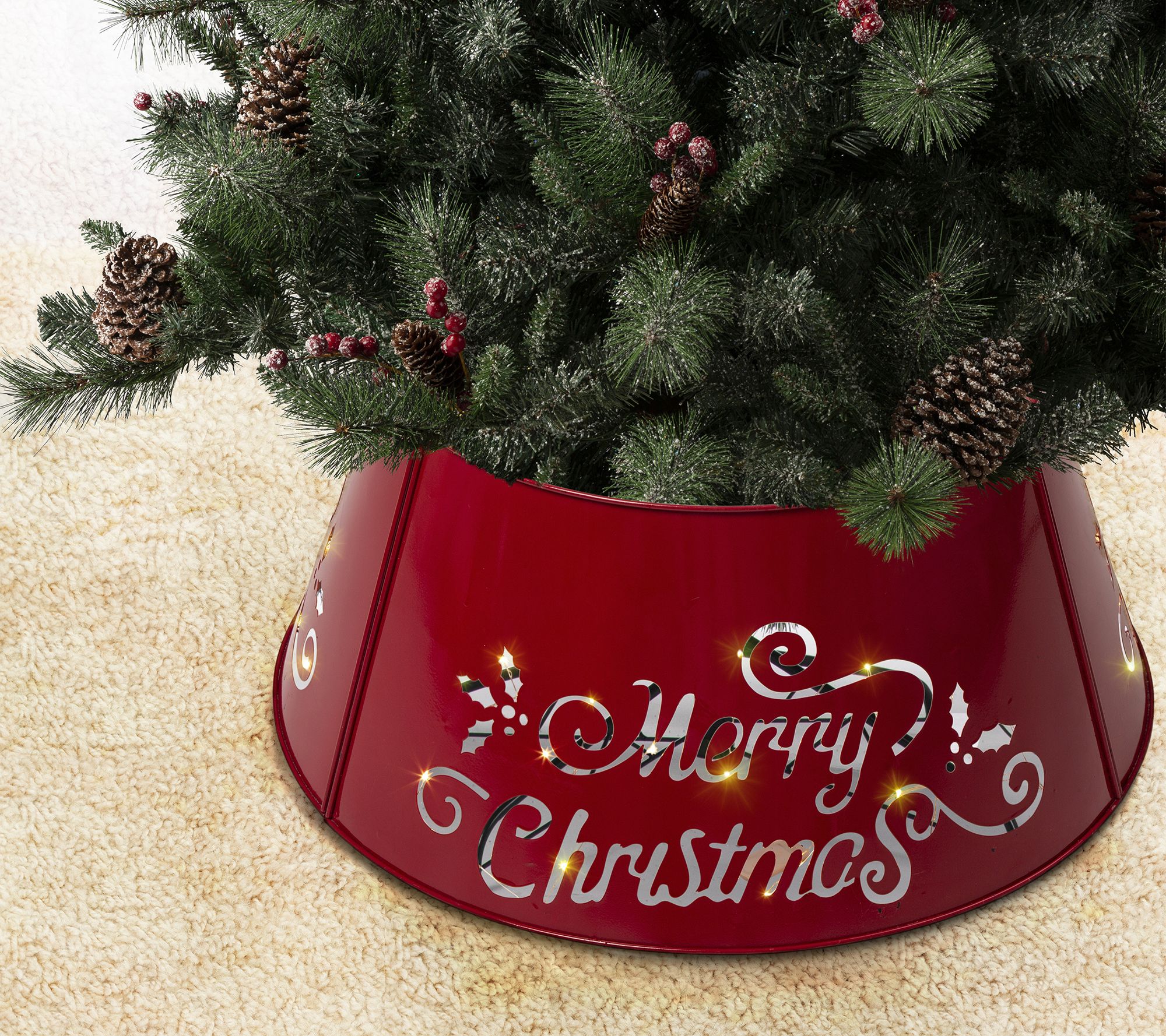 Glitzhome Merry Christmas Diecut Metal Tree Collar W/ Lights
